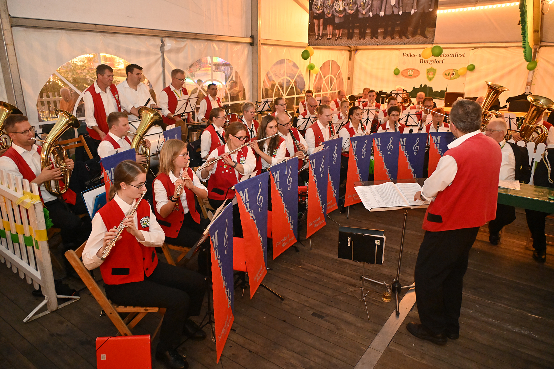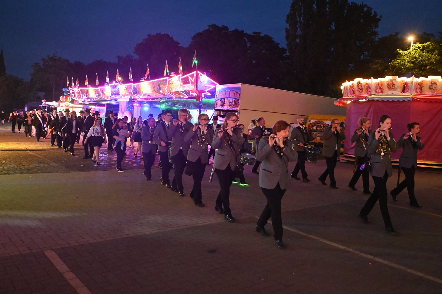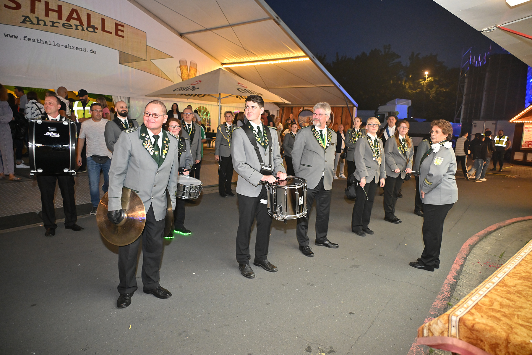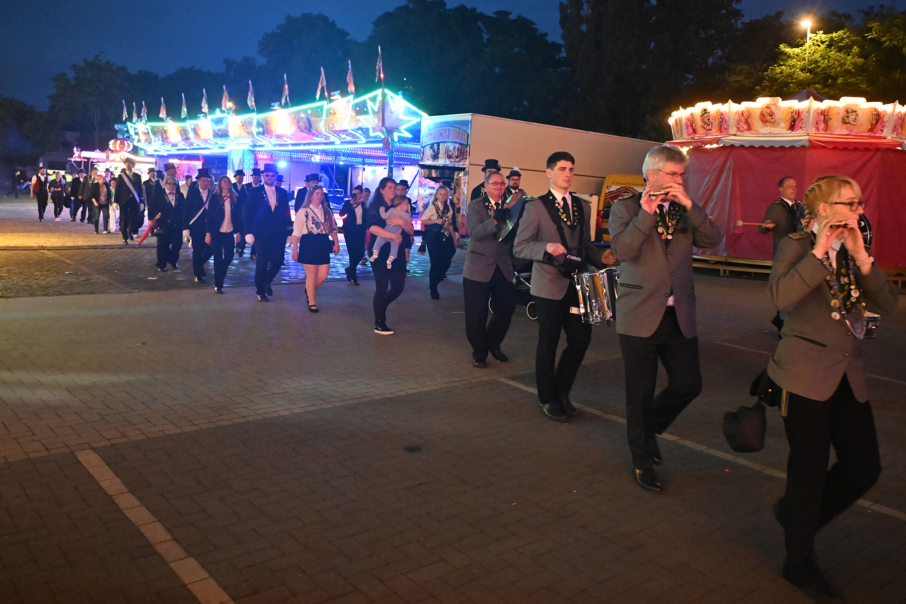 Sohn Eric fand sichtbares Gefallen an der Aktion, bei der es zunächst unter der Begleitung des Spielmannszugs der Burgdorfer Schützengesellschaft einmal über den Festplatz ging, ehe die Übergabe stattfand. Mit großen Augen betrachtete er den Teddy, und auch die Musik des Spielmannszugs schien ihm angetan zu haben. Der acht Monate alte Junge verfolgte mit Gelassenheit den Trubel um sich herum.
