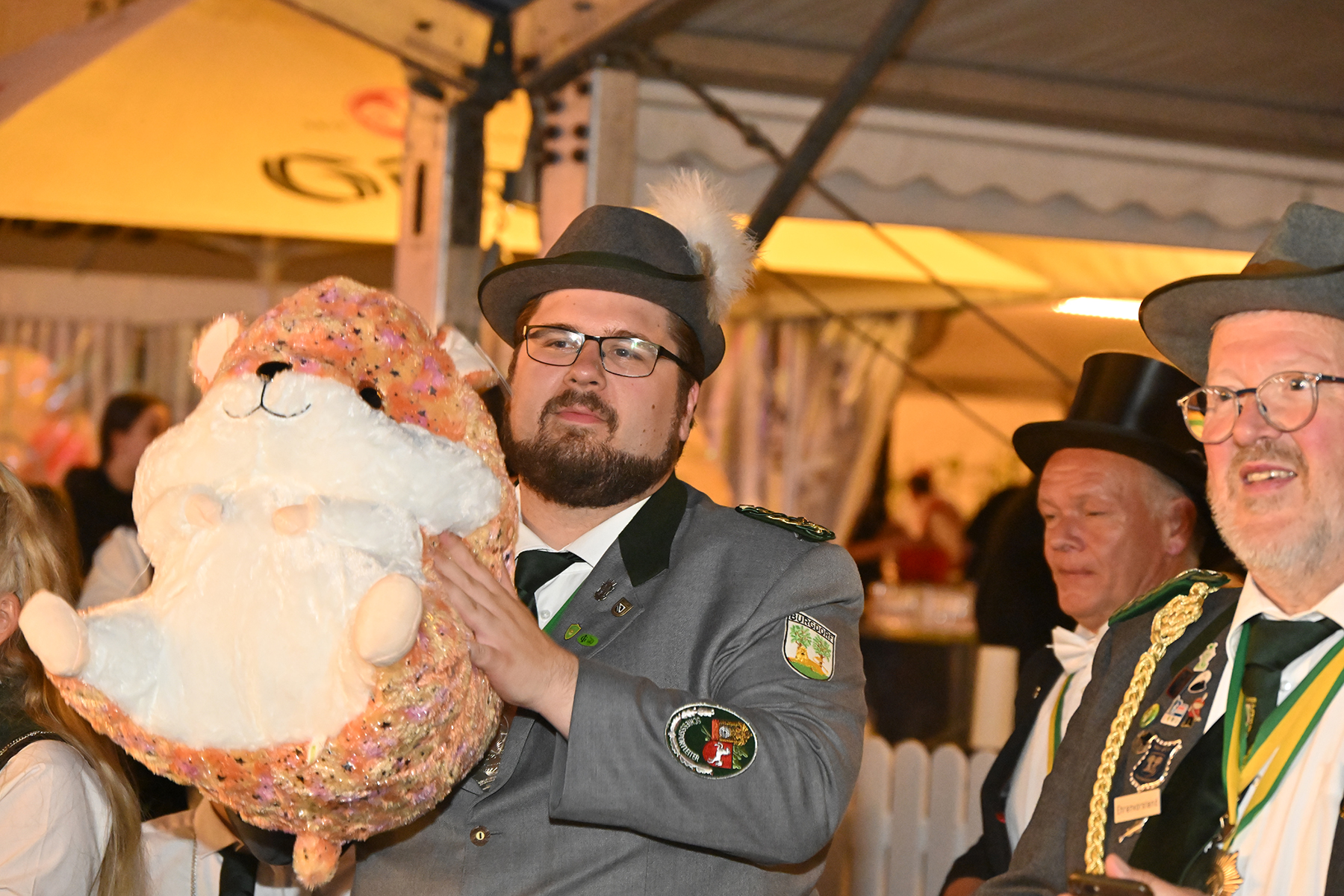 Wie in jedem Jahr hat die Schaustellerfamilie Bötticher auch zum diesjährigen Volks- und Schützenfest in Burgdorf einen Teddy an den neuesten Vater der Junggesellen gespendet.