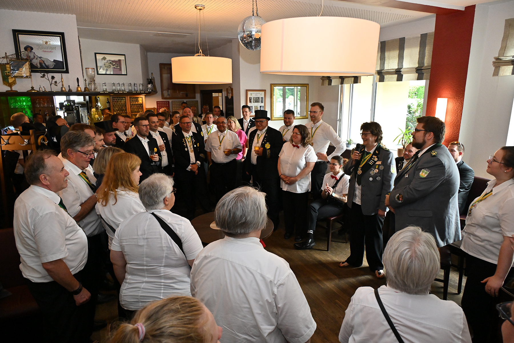"Soviel sei schon einmal gesagt, es sind zwei Schwarze’", leitete Anja Piel die Bekanntgabe der diesjährigen Schützenkönige ein. Somit war klar: In diesem Jahr stellt die Schießsport-Sportabteilung keinen König, sondern das Rennen wurde unter den Germanen und den Junggesellen entschieden. Es sei ein spannender Wettkampf gewesen, so die Schießsportleiterin. "Erst passierte gar nichts, dann sehr viel", blickte sie zurück.