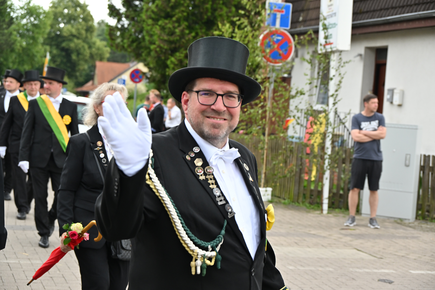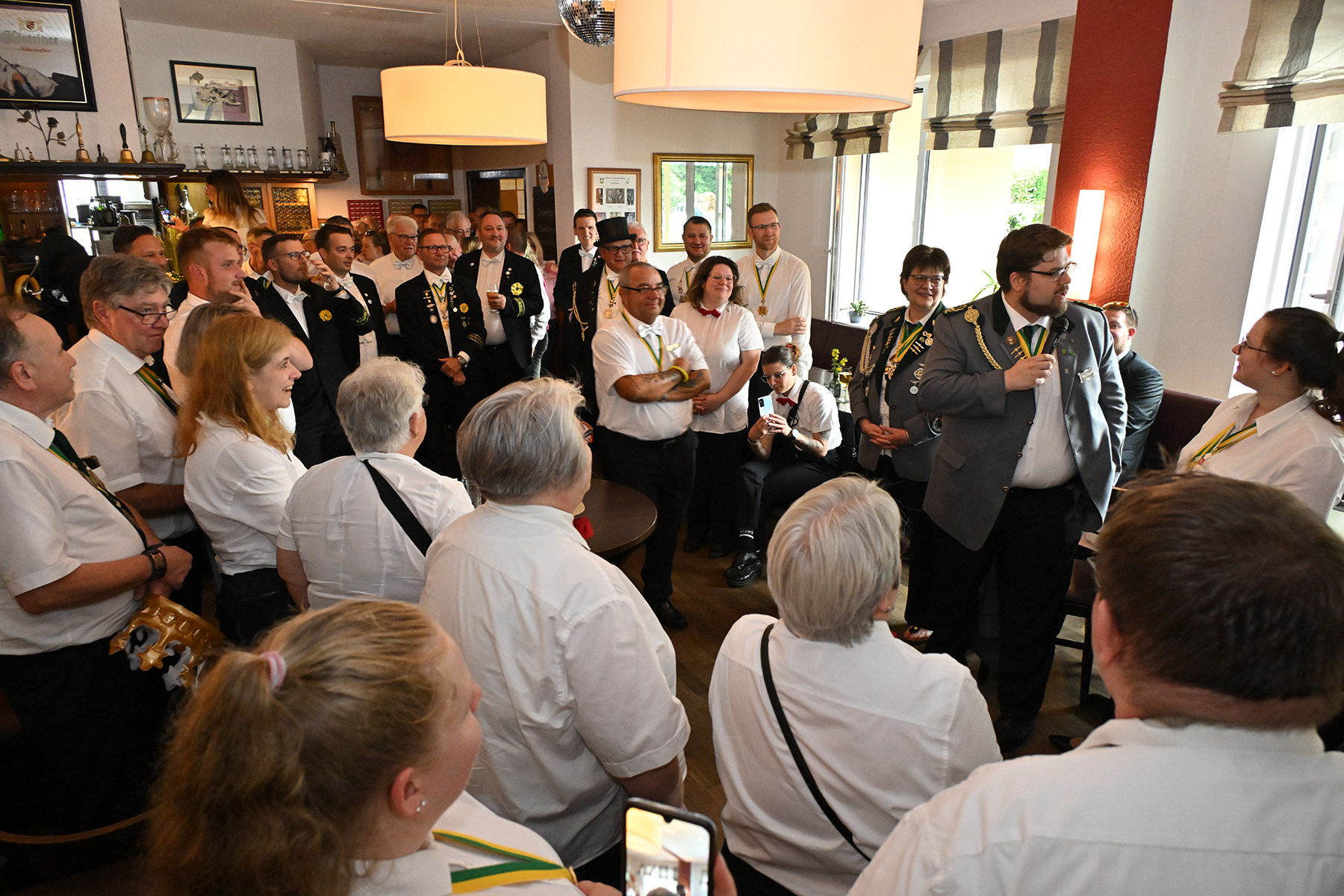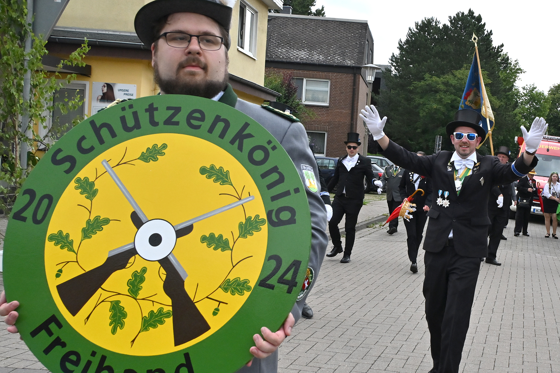 Als König Freihand, der sogenannte König 1. Tag, wurde dann Sascha Biewer ausgerufen. Es ist sein dritter Königstitel nach 2012 und 2022. Zudem hatte er im vergangenen Jahr die im zehnjährigen Rhythmus vergebene Würde des Königs der Könige errungen. Somit haben in diesem Jahr die Junggesellen wieder einen Titel errungen, nachdem diese im vergangenen Jahr leer ausgegangen waren. Nur knapp geschlagen geben musste sich auf dem zweiten Platz Matthias Mollenhauer vor André Schulze-Frieling.