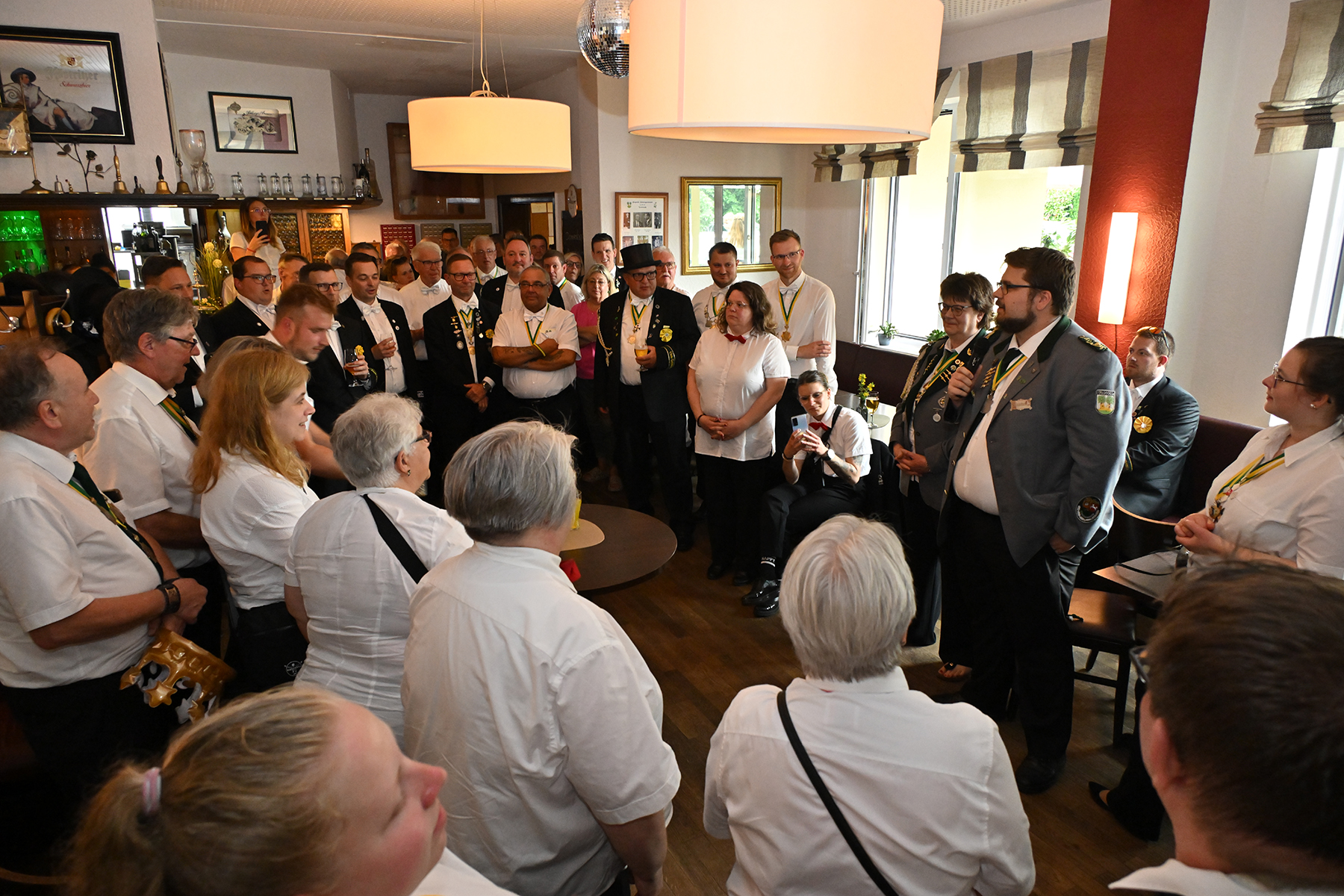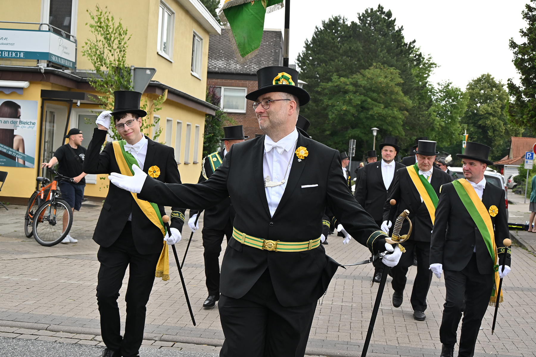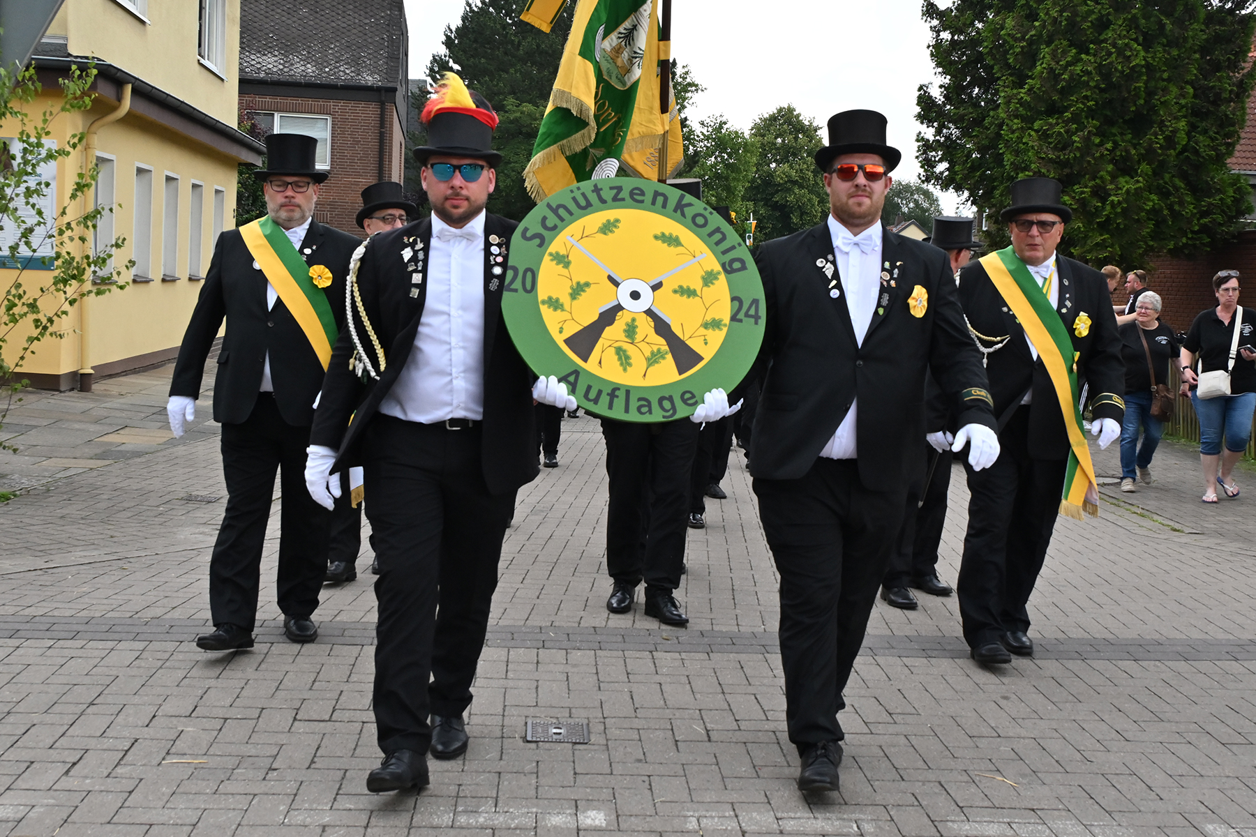 Als König Freihand, der sogenannte König 1. Tag, wurde dann Sascha Biewer ausgerufen. Es ist sein dritter Königstitel nach 2012 und 2022. Zudem hatte er im vergangenen Jahr die im zehnjährigen Rhythmus vergebene Würde des Königs der Könige errungen. Somit haben in diesem Jahr die Junggesellen wieder einen Titel errungen, nachdem diese im vergangenen Jahr leer ausgegangen waren. Nur knapp geschlagen geben musste sich auf dem zweiten Platz Matthias Mollenhauer vor André Schulze-Frieling.