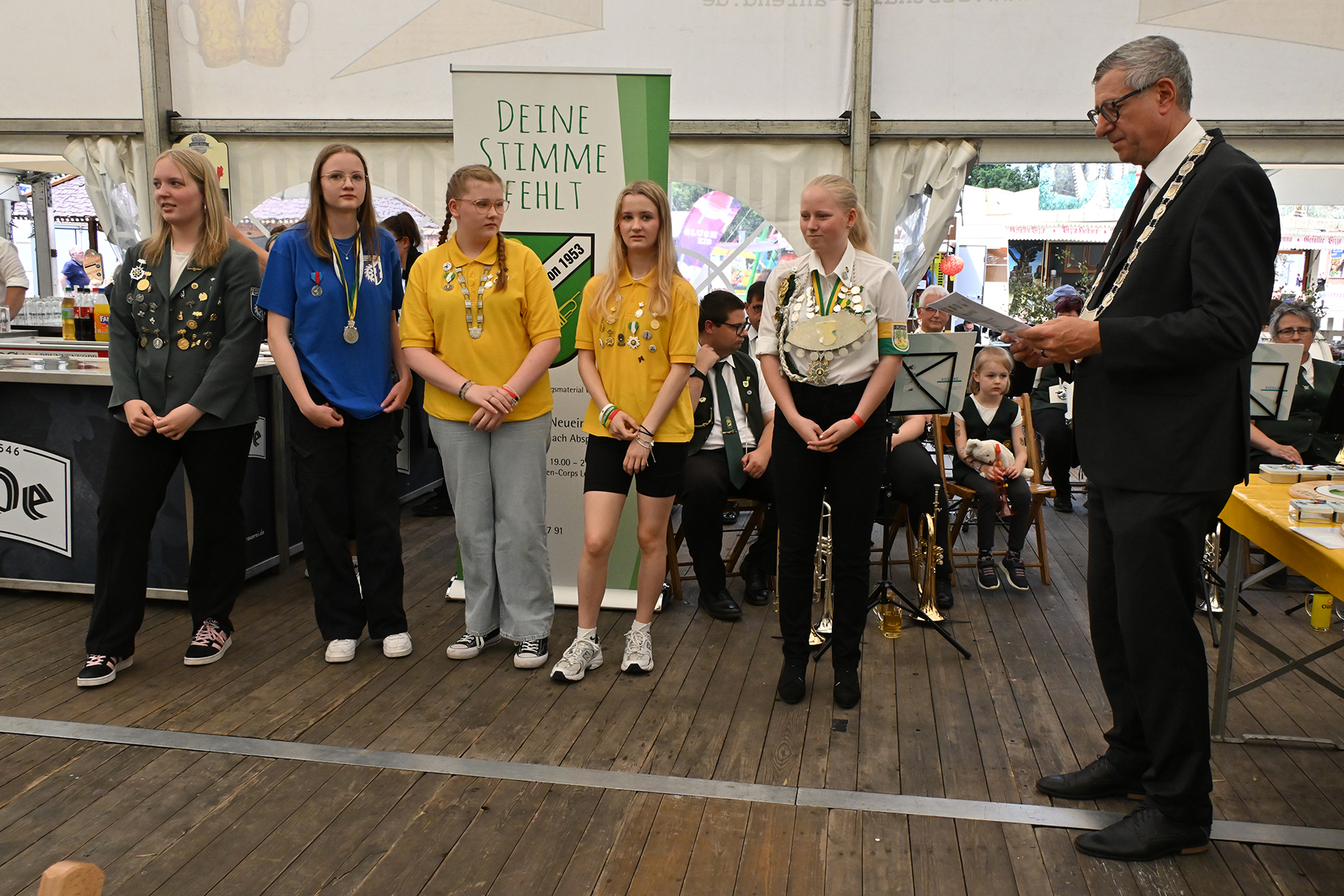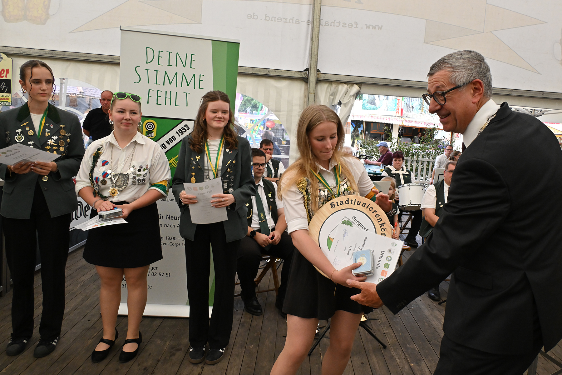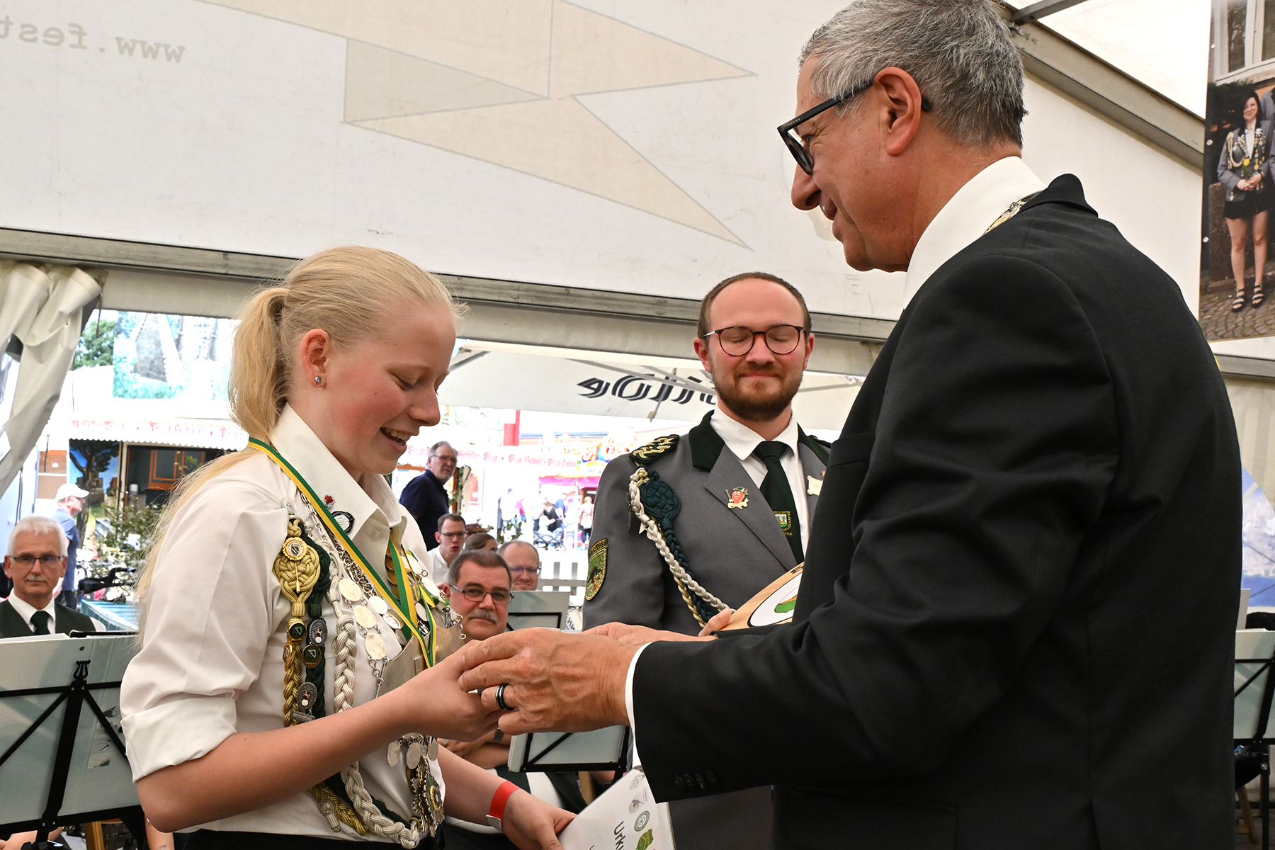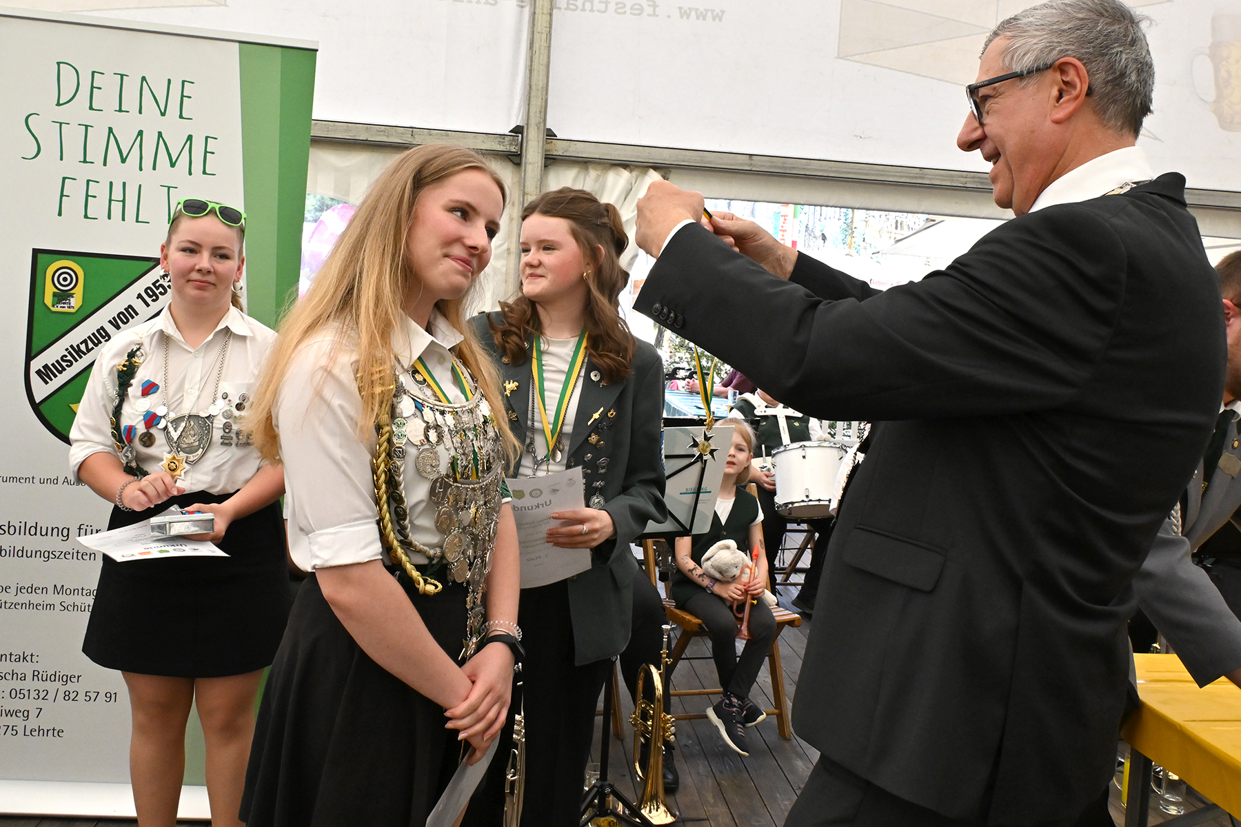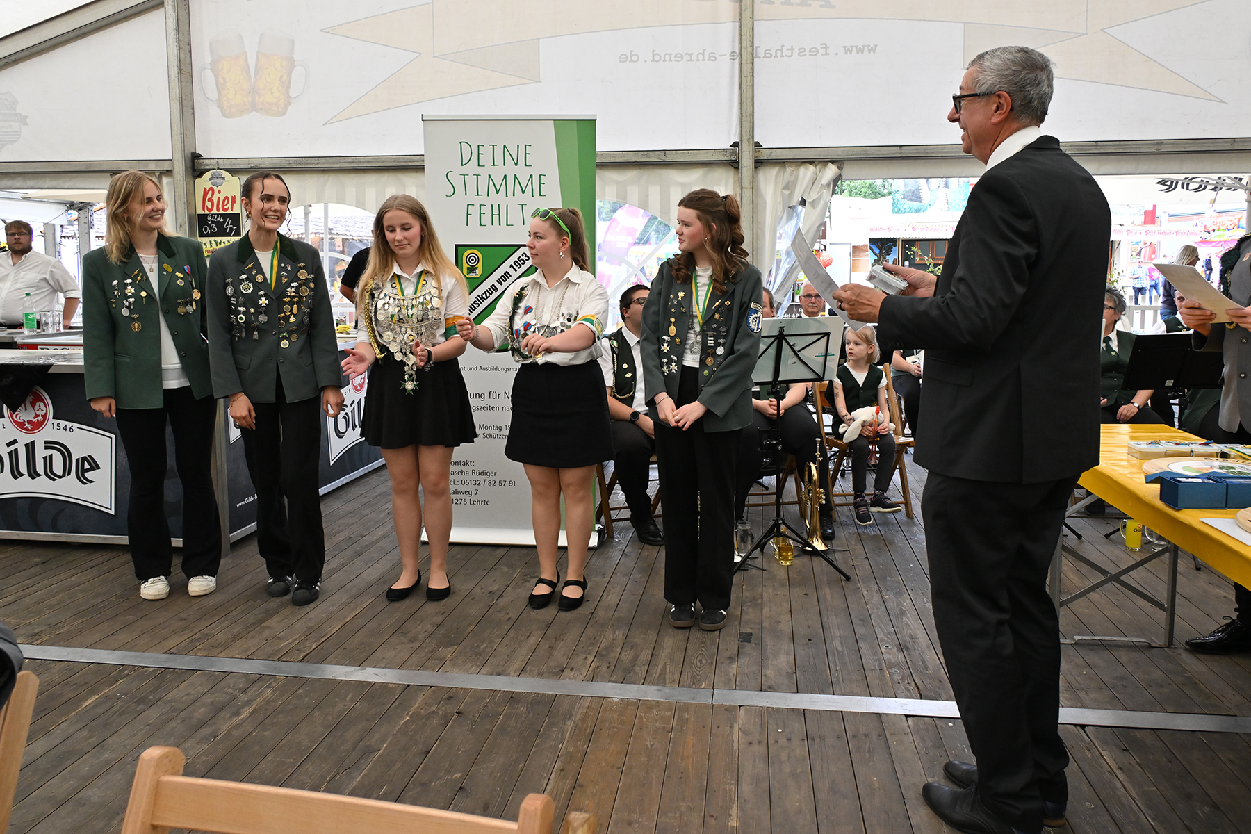 Die Königsriege komplettieren die Stadtjuniorenkönigin Rieke Hansen, die vor ihrer Schwester Ronja Hansen, beide von der Burgdorfer Schützengesellschaft, und Vivien Schwartz vom Schützenverein Hülptingsen gewann, sowie die Stadtjugendkönigin Leah-Sophie Bähre von der Burgdorfer Schützengesellschaft, die Luisa Marie Wessarges und Rica Thiesen, beide vom Schützenverein Hülptingsen, auf die weiteren Plätze verwies.