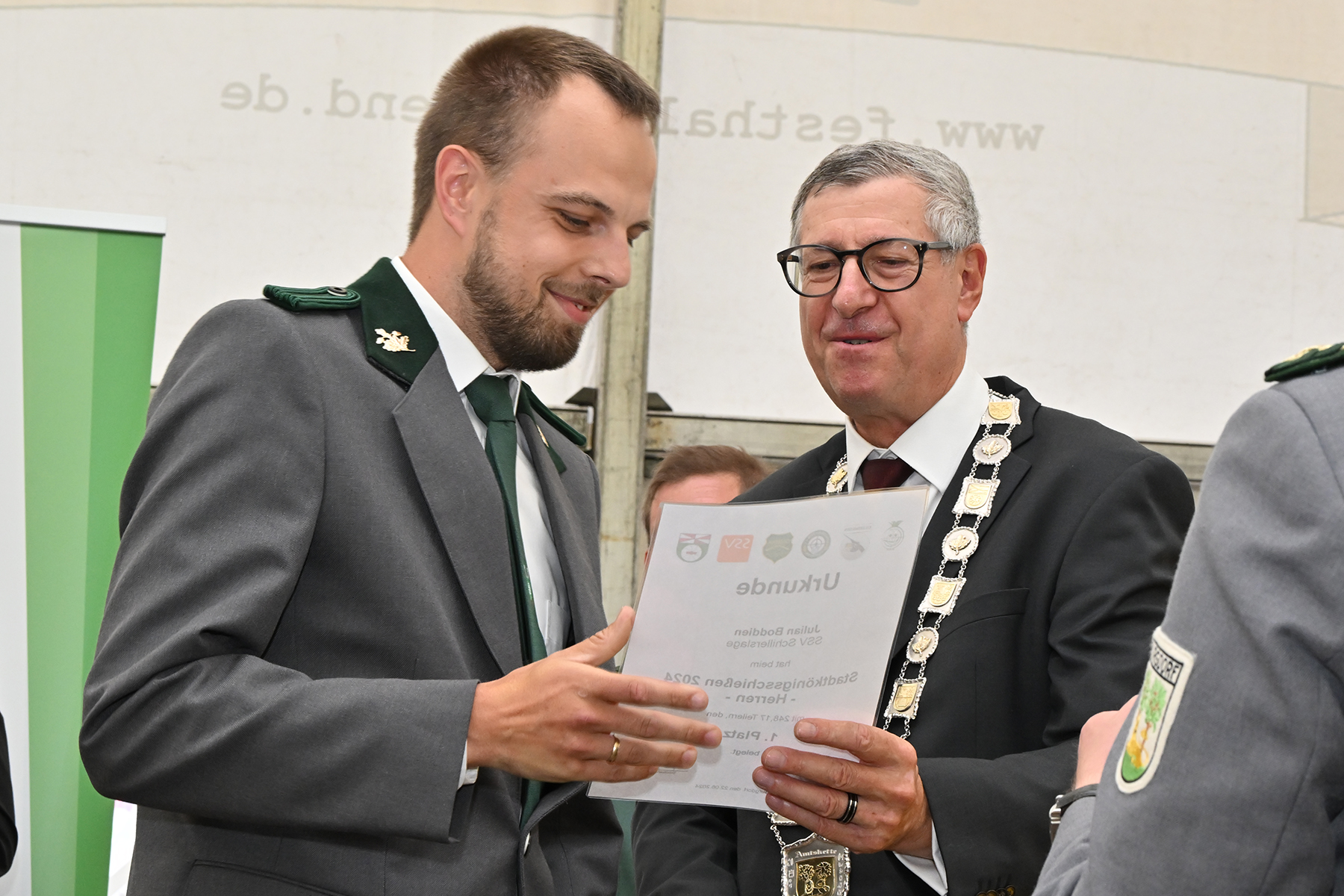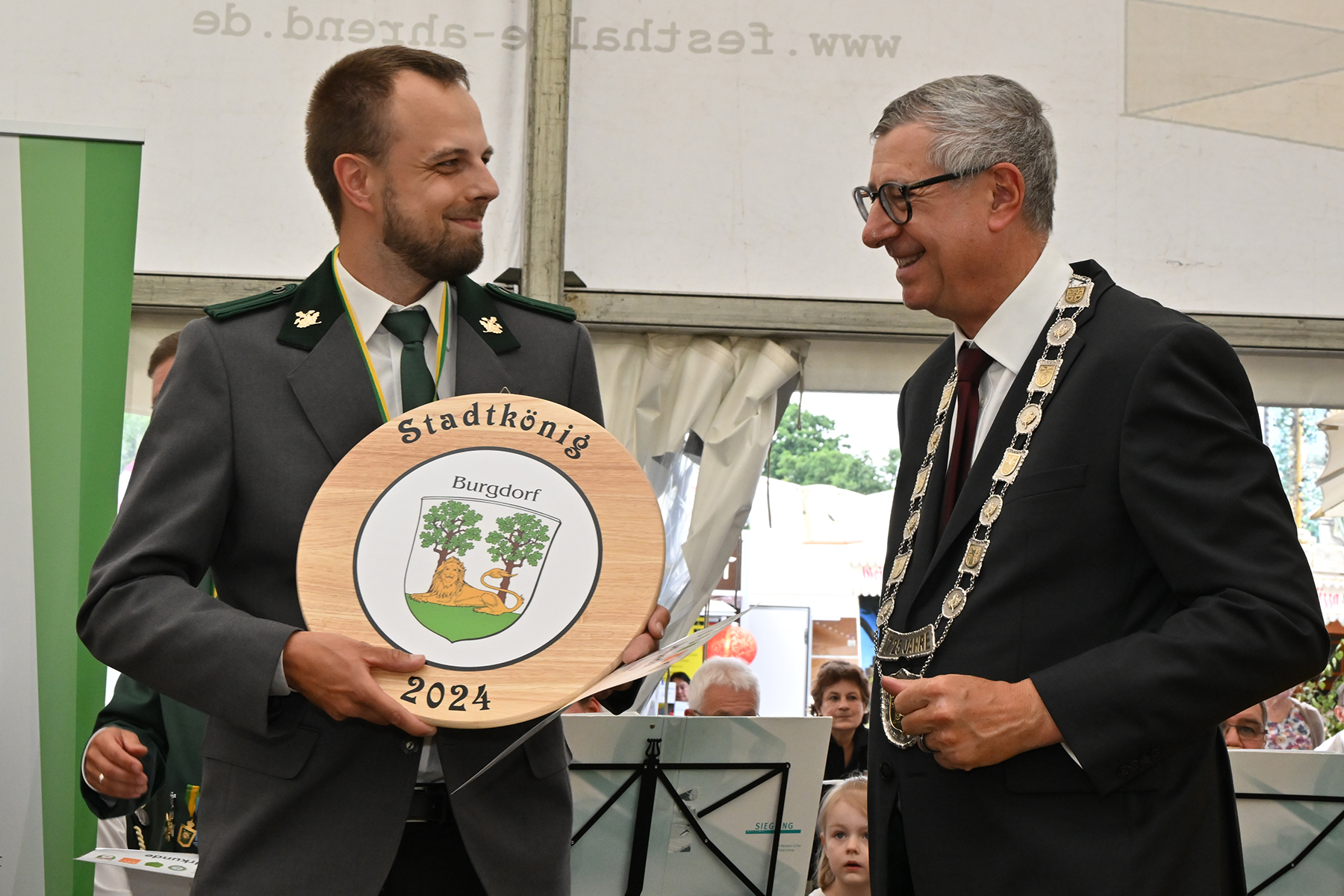 60 Schützen wollten Stadtkönig werden, nur einer konnte am Ende gewinnen. Neuer Stadtkönig 2024 ist Julian Boddien vom SSV Schillerslage. Auf die weiteren Plätze kommen Sven Prieß vom Schützenverein Otze und Ingo Bähre von der Burgdorfer Schützengesellschaft.