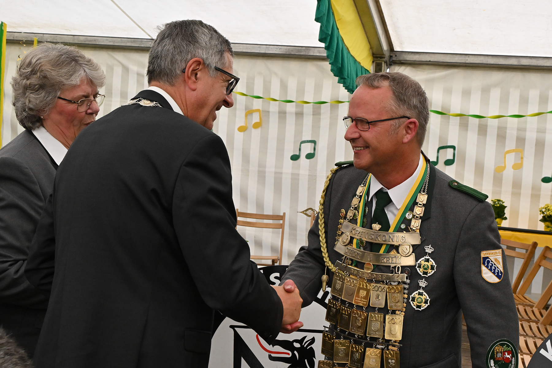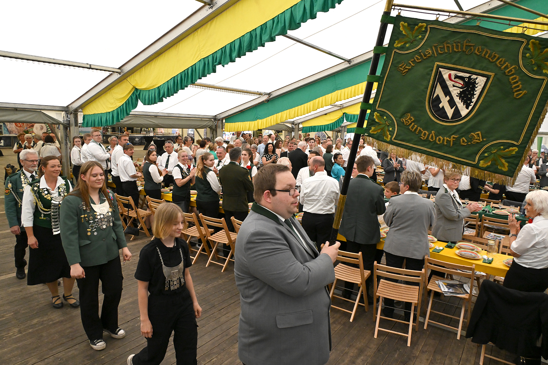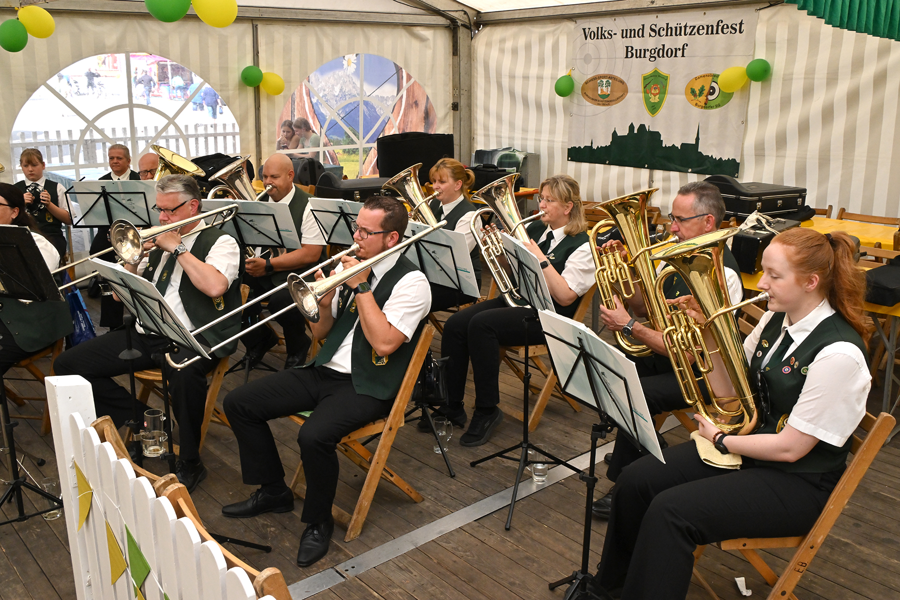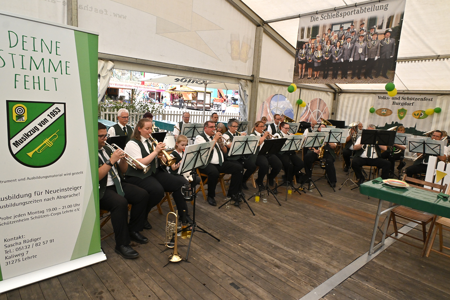 Nach dem Schießen kamen die Teilnehmer im Festzelt auf dem Schützenplatz zur Proklamation zusammen. Für die musikalische Umrahmung sorgte der Musikzug des Schützen-Corps Lehrte.