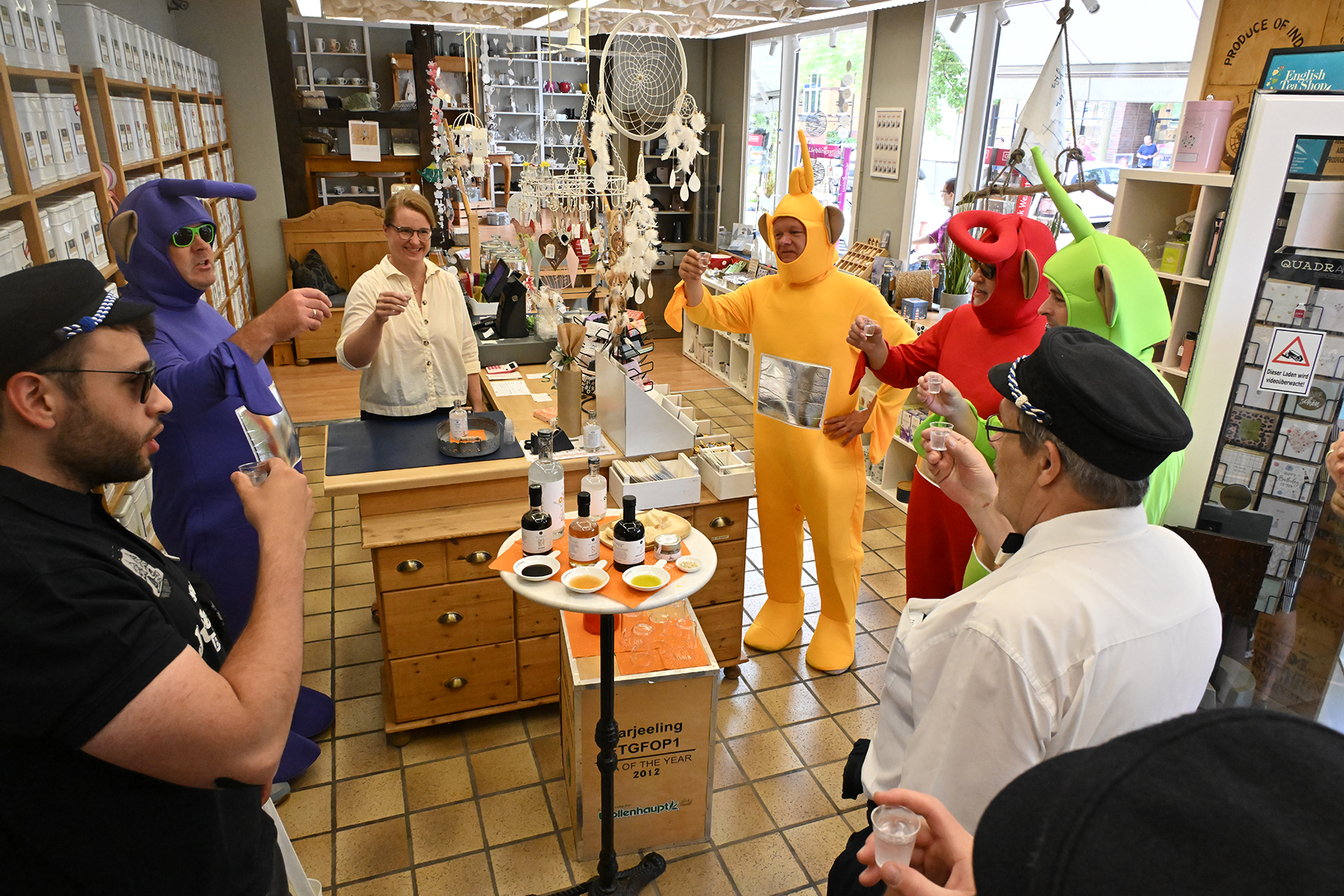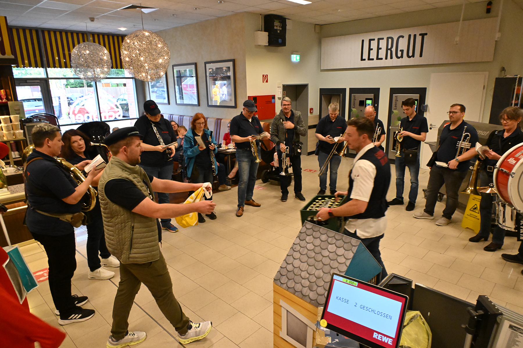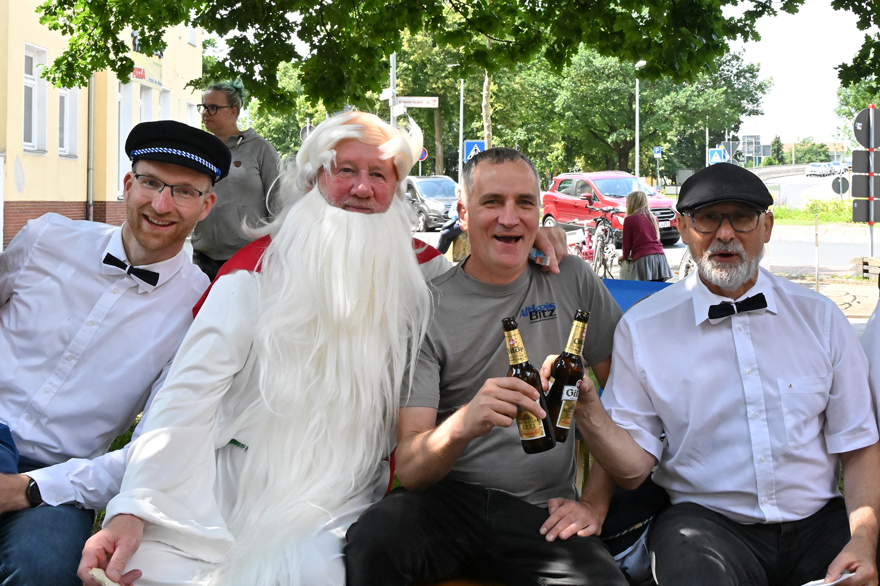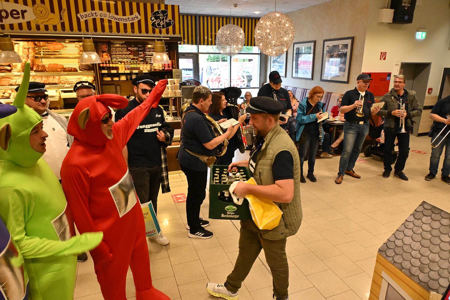 Sie sammelten reichlich hopfenhaltige Getränke, aber auch hochprozentigen Alkohol ein. So gab es beispielsweise bei der Apotheke Schnaith in der Marktstraße eine Flasche "Burgdorfer Rosskur". Bei TEEzeit wurden sie auf einen Schluck Ouzo eingeladen. Aber auch die Supermärkte wurden nicht ausgelassen, sodass es auch ein kleines Ständchen im REWE-Markt oder vor dem NP-Markt in der Innenstadt gab.