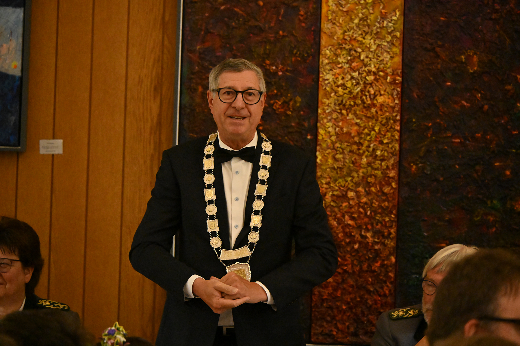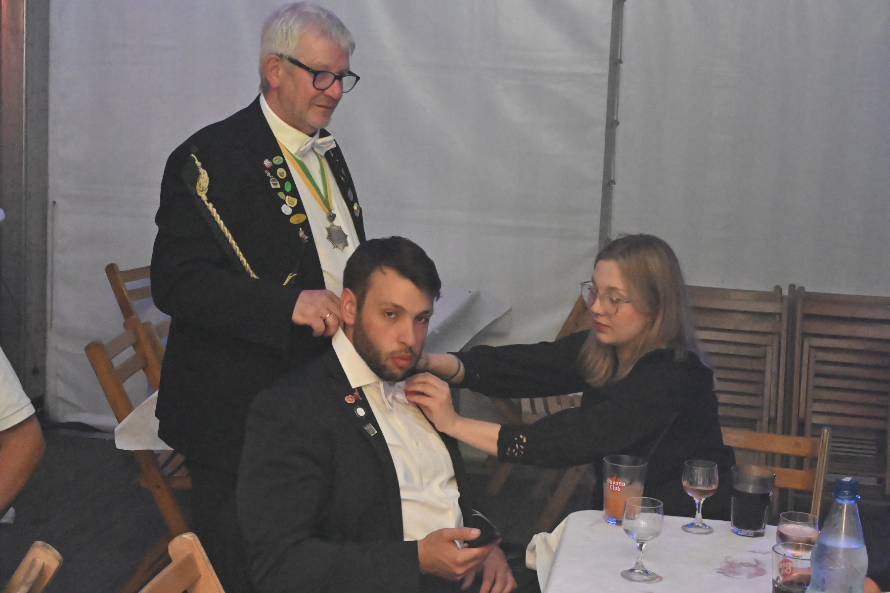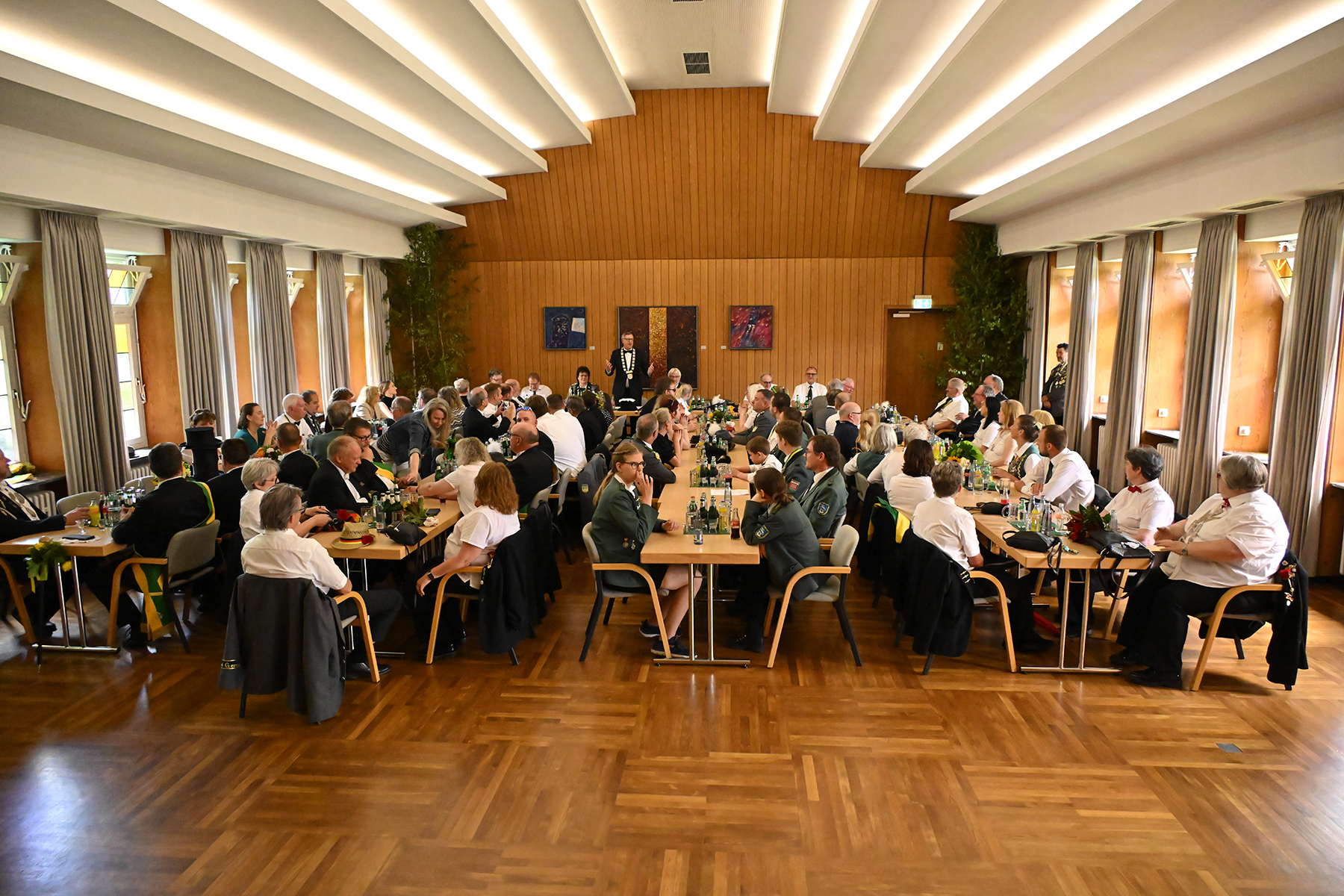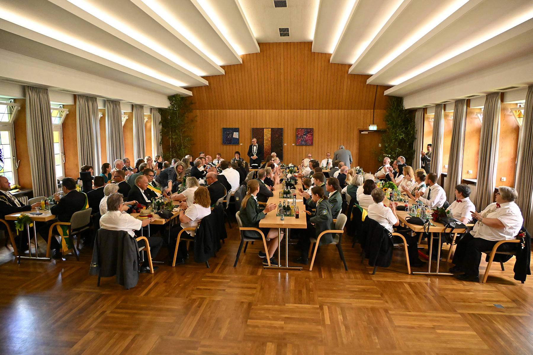 Zuvor hatte Burgdorfs Bürgermeister Armin Pollehn in den Saal des Burgdorfer Schlosses die Schützen und ihre Majestäten eingeladen. Vor rund 90 Gästen begrüßte er nicht nur die Könige und Kreiskönige, sondern auch die Bundestagsabgeordnete Rebecca Schamber und die Landtagsabgeordnete Thordies Hanisch sowie Ratsmitglieder und den Präsidenten des Kreisschützenverbandes, Werner Bösche. Der Bürgermeister freute sich, dass alle Majestäten anwesend sind, und gratulierte ihnen zu ihrer Krönung. "Es ist ein sehr gelungenes Schützenfest", betonte der Bürgermeister. Es sei friedlich abgelaufen und auch habe sich niemand wegen der Lautstärke beschwert. Das Burgdorfer Schützenfest trage positiv zum Image der Stadt bei, betonte er. Er konnte am heutigen Sonntag noch eine Ehrung nachholen. Cord-Heinrich Schweer erhielt heute die Ratskette und auch Juniorenkönigin Rieke Hansen, die am Freitag bei der Proklamation nicht anwesend war, wurde nun ihre Kette überreicht, sodass alle Majestäten vor dem Umzug mit ihren Insignien ausgestattet worden waren.