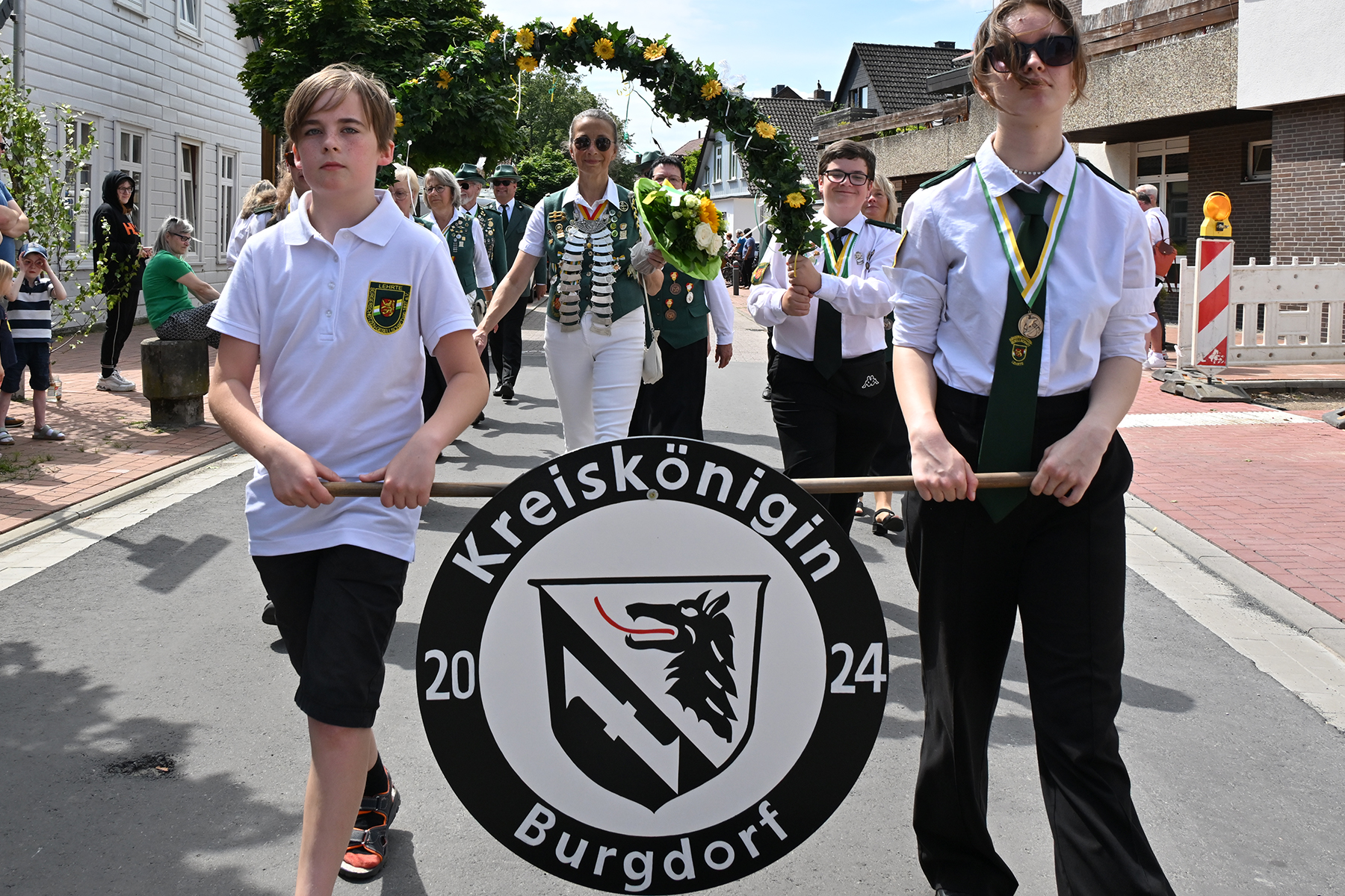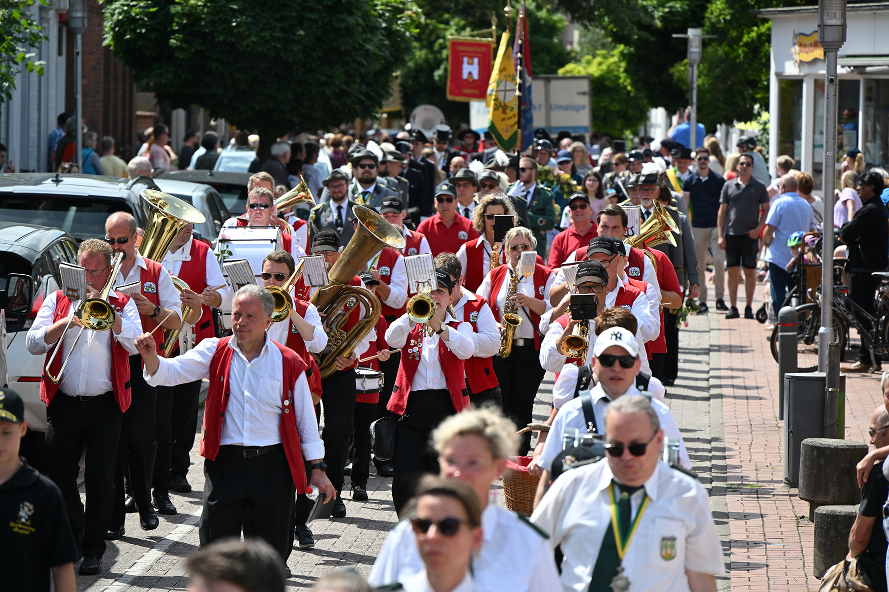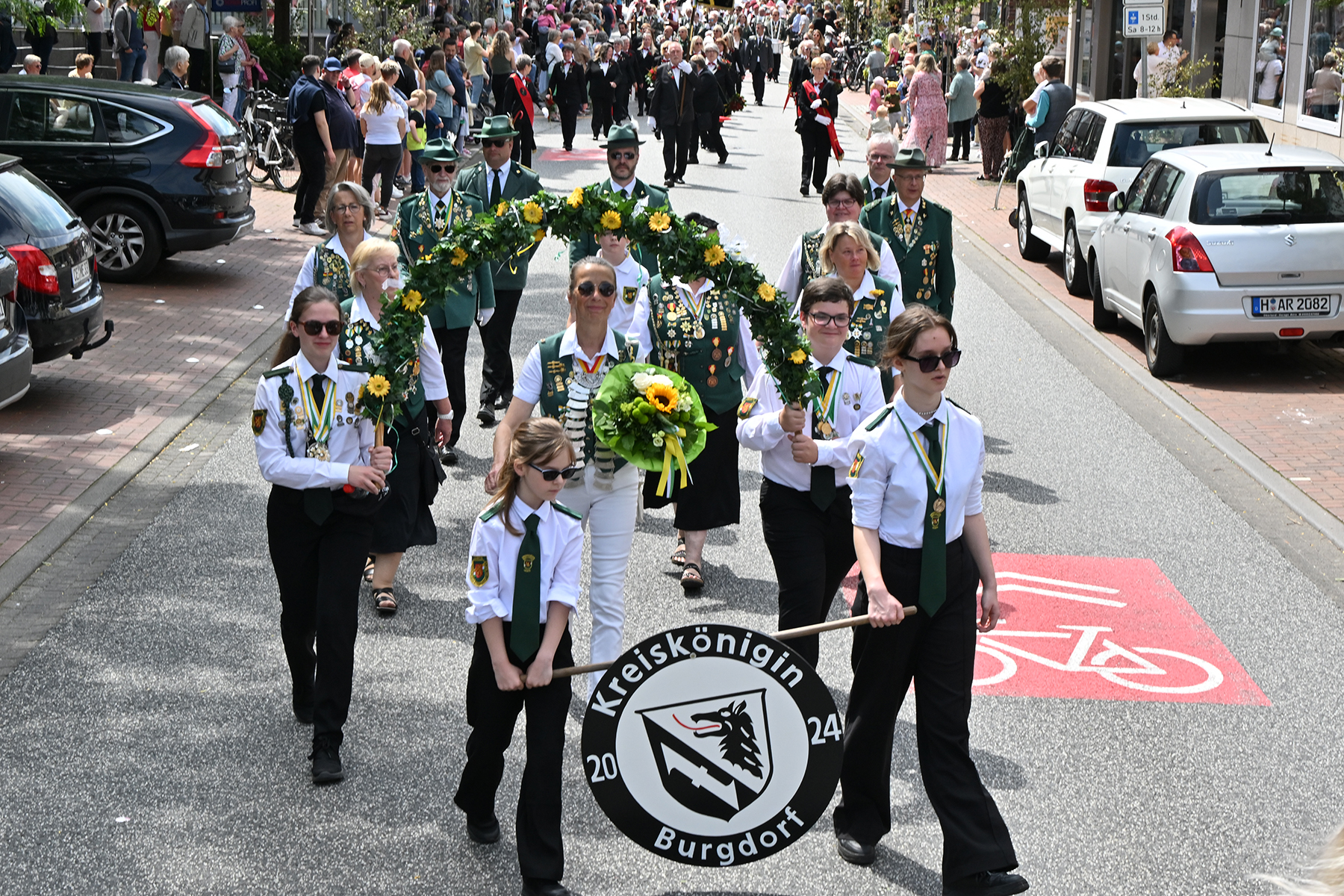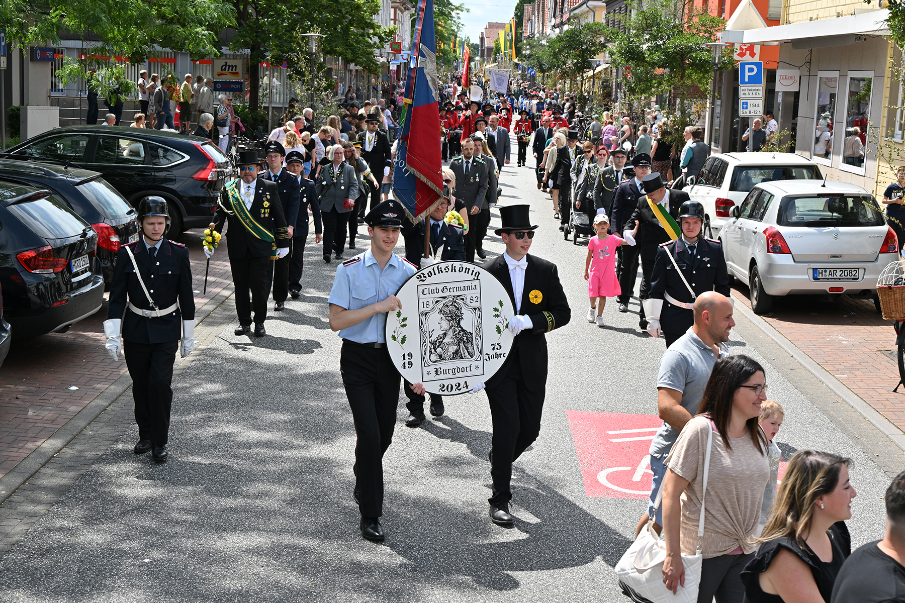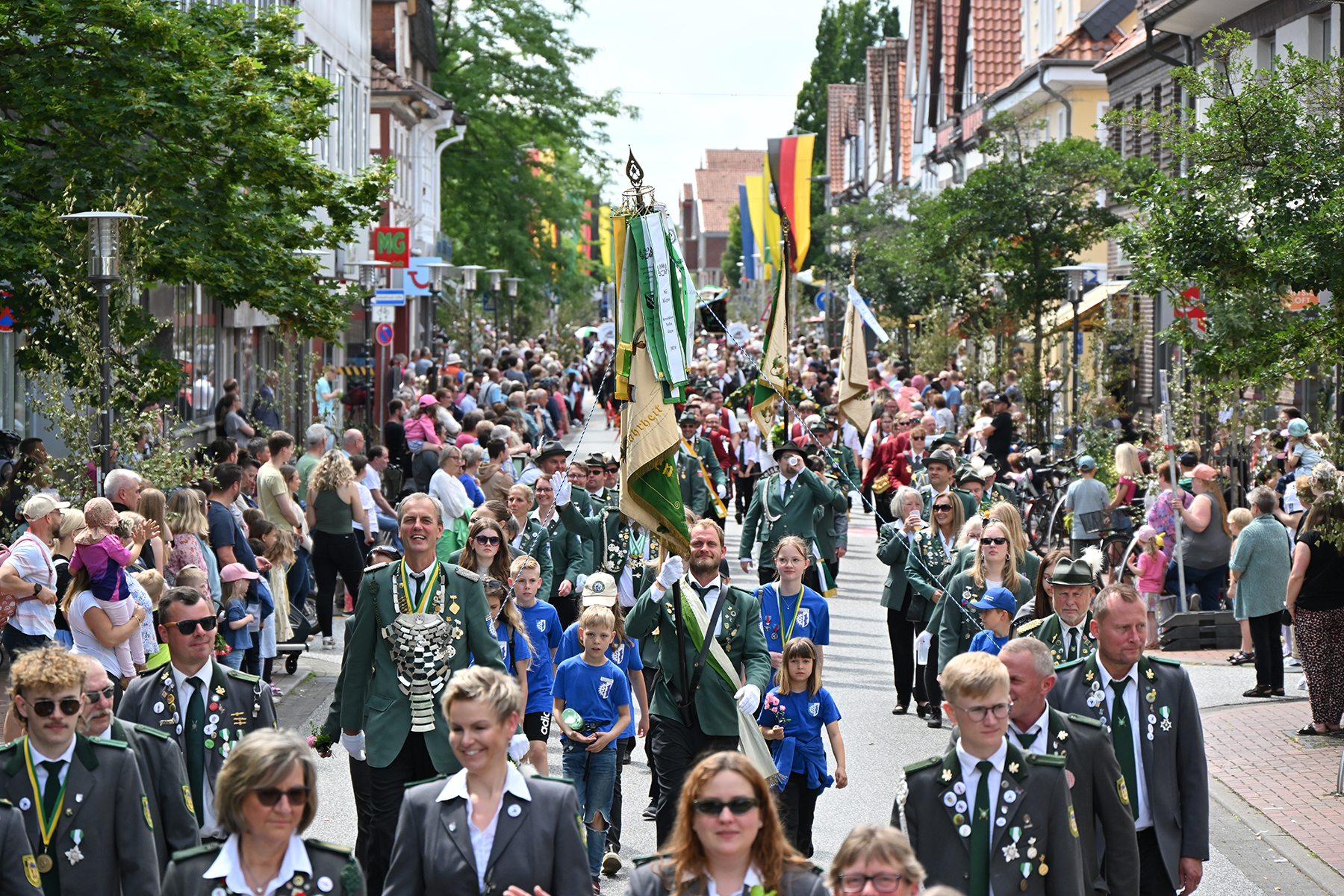 "Das waren vier tolle Tage" fasste es der 1. Vorsitzende der Burgdorfer Schützengesellschaft, Jörg Hoppe, bereits vor dem großen Schützenumzug am heutigen Sonntag, 23. Juni 2024, im Saal des Burgdorfer Schlosses zusammen. Alle hätten "sehr viel Spaß gehabt". Höhepunkt des Volks- und Schützenfestes war wie immer der große Festumzug durch die Straßen der Burgdorfer Innenstadt. Hunderte Zuschauer säumten die Straßen, um den Schützen und ihren befreundeten Vereinen zuzujubeln, insbesondere natürlich den Königen der Burgdorfer Schützengesellschaft wie aber auch den am gestrigen Sonnabend proklamierten Kreiskönigen.