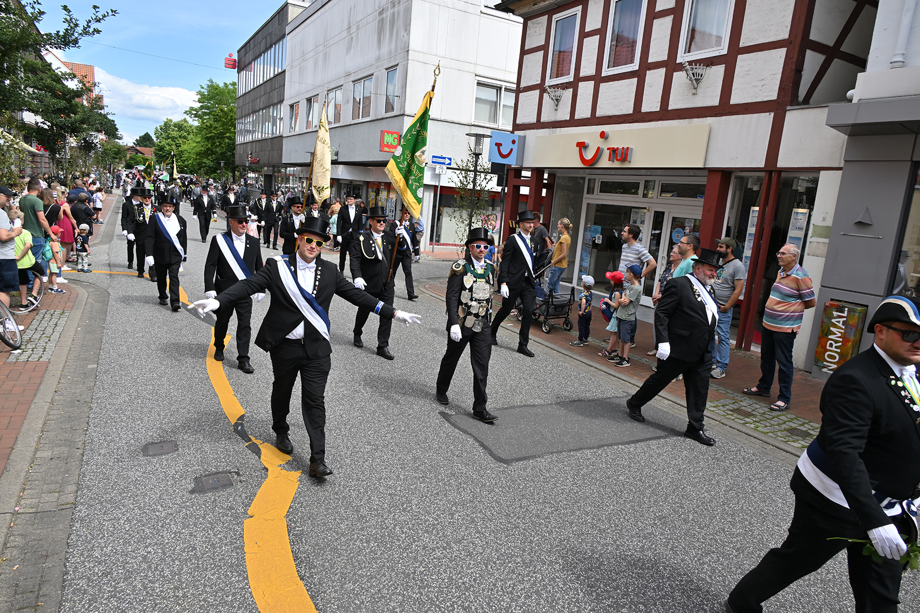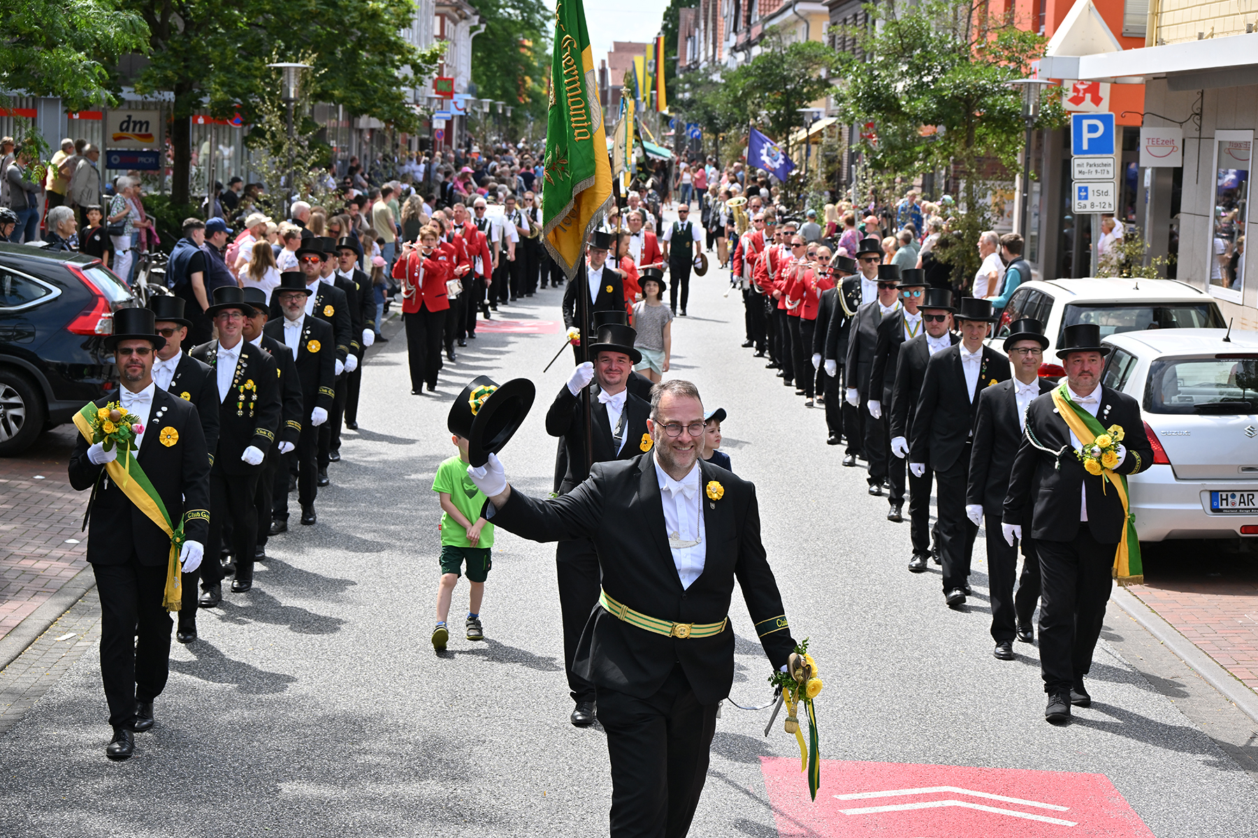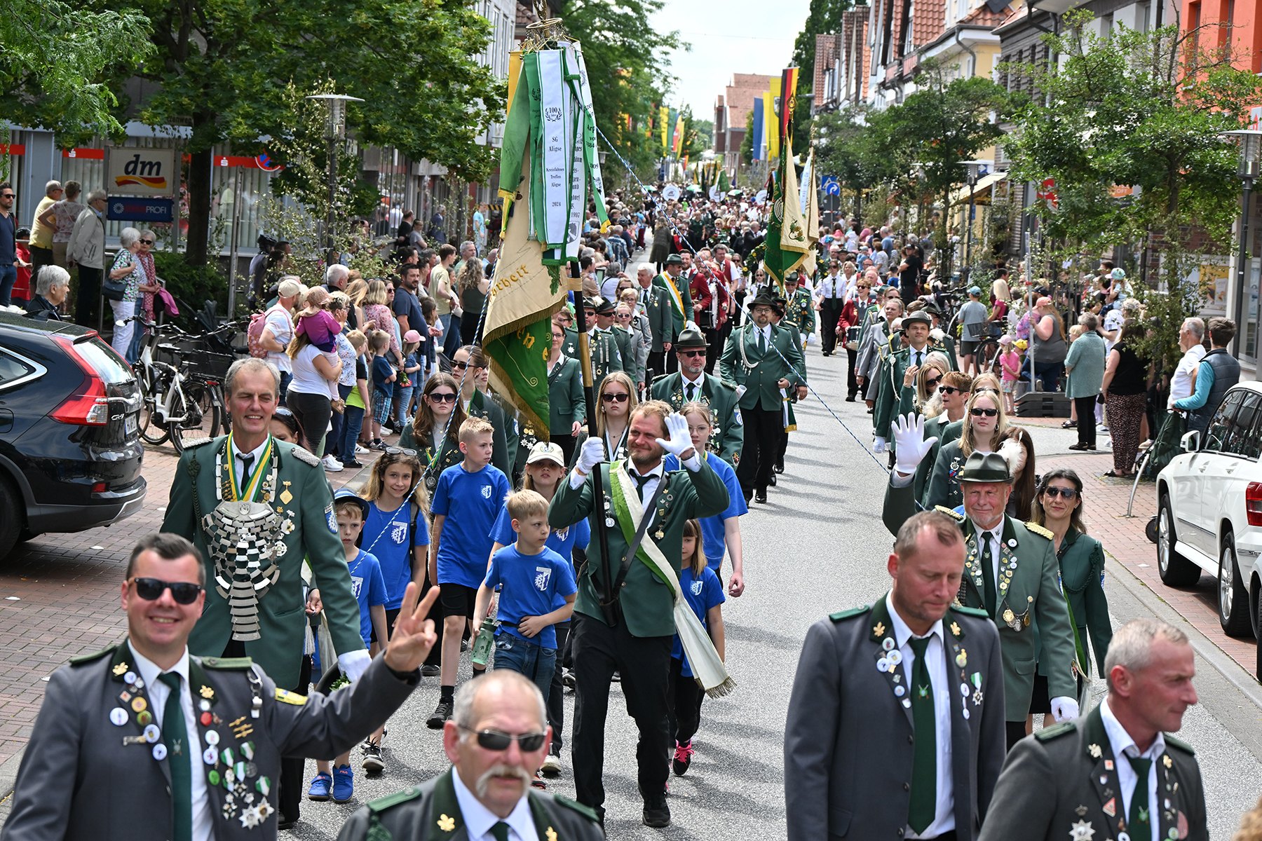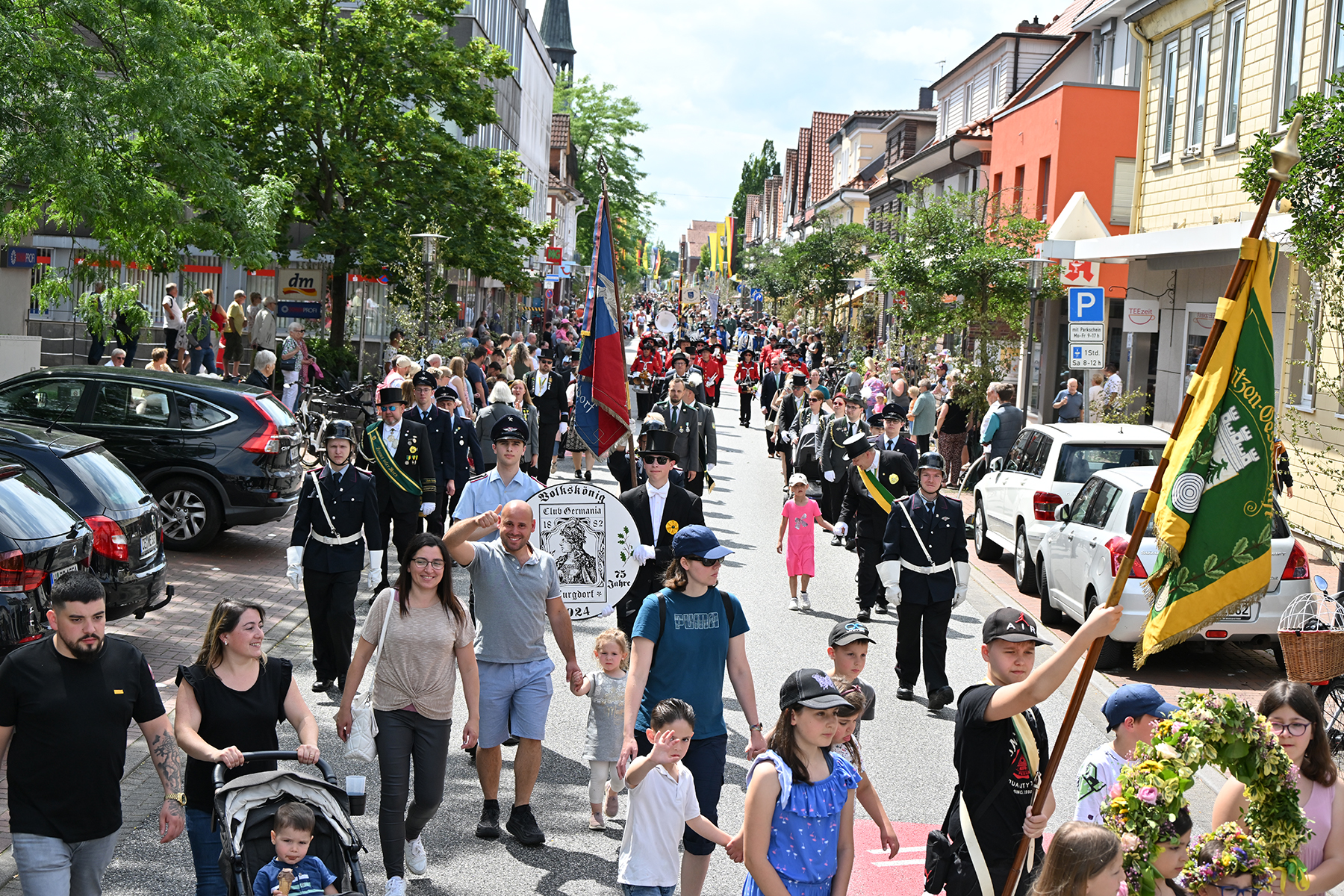 "Das waren vier tolle Tage" fasste es der 1. Vorsitzende der Burgdorfer Schützengesellschaft, Jörg Hoppe, bereits vor dem großen Schützenumzug am heutigen Sonntag, 23. Juni 2024, im Saal des Burgdorfer Schlosses zusammen. Alle hätten "sehr viel Spaß gehabt". Höhepunkt des Volks- und Schützenfestes war wie immer der große Festumzug durch die Straßen der Burgdorfer Innenstadt. Hunderte Zuschauer säumten die Straßen, um den Schützen und ihren befreundeten Vereinen zuzujubeln, insbesondere natürlich den Königen der Burgdorfer Schützengesellschaft wie aber auch den am gestrigen Sonnabend proklamierten Kreiskönigen.