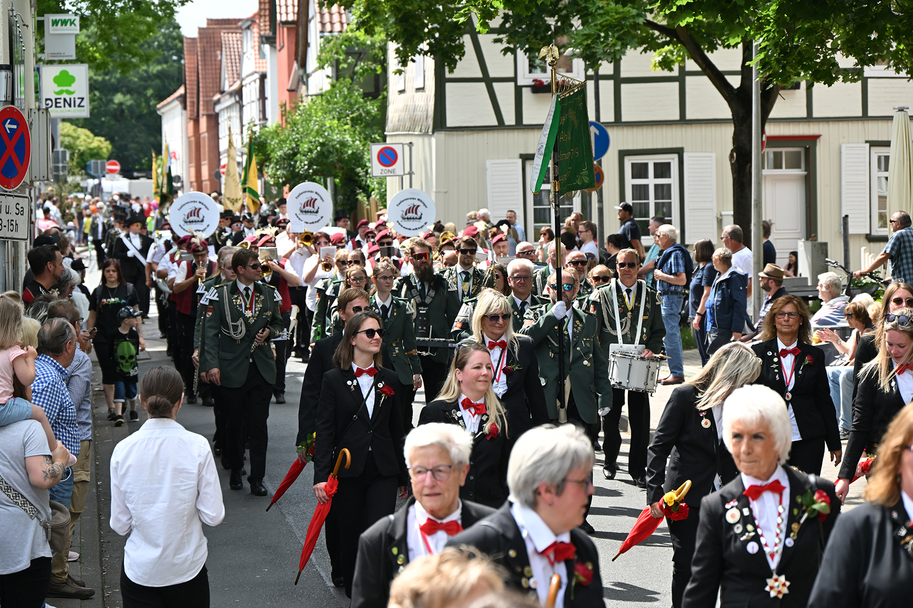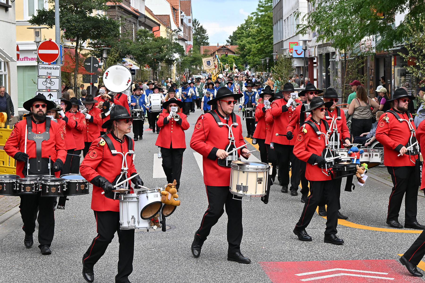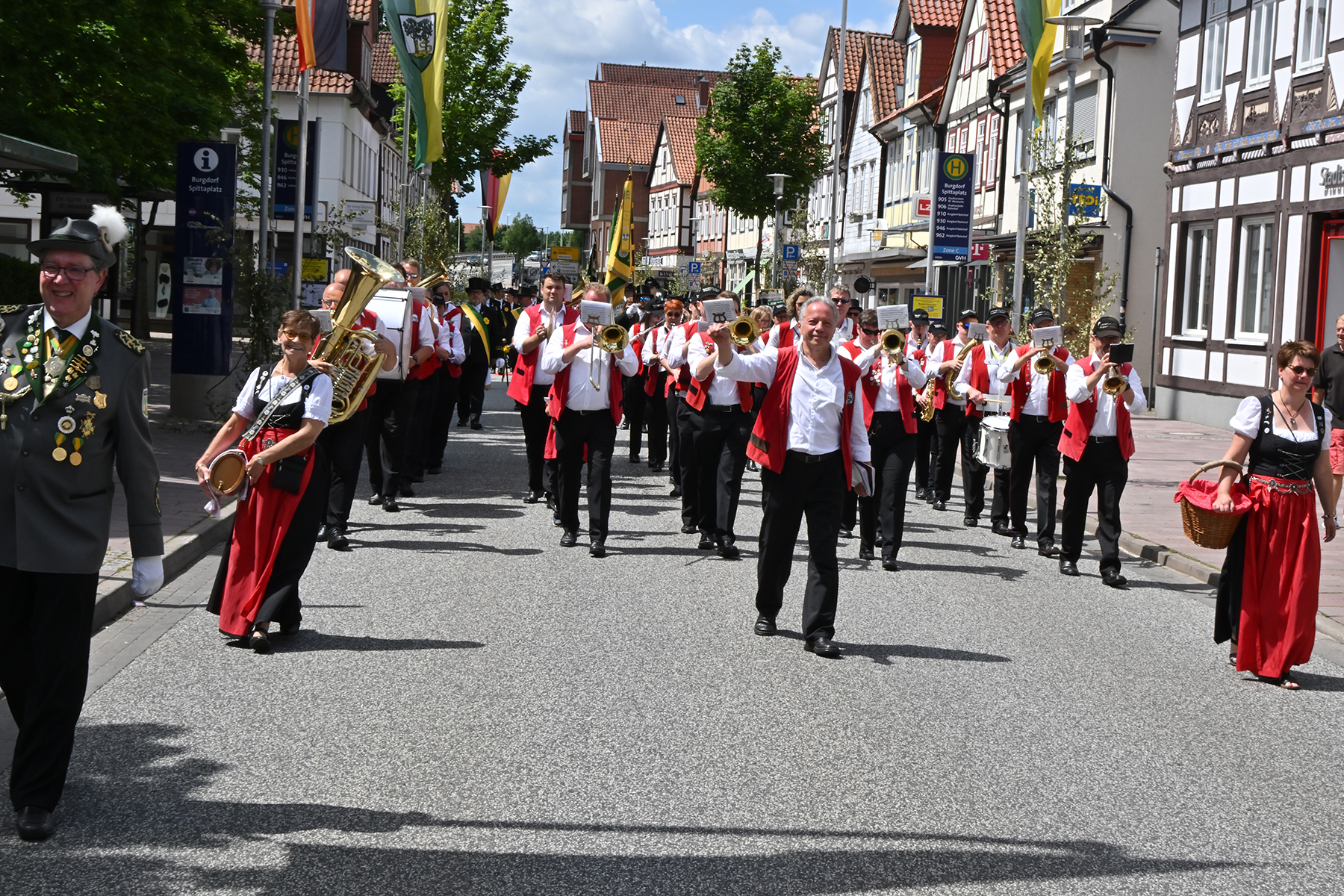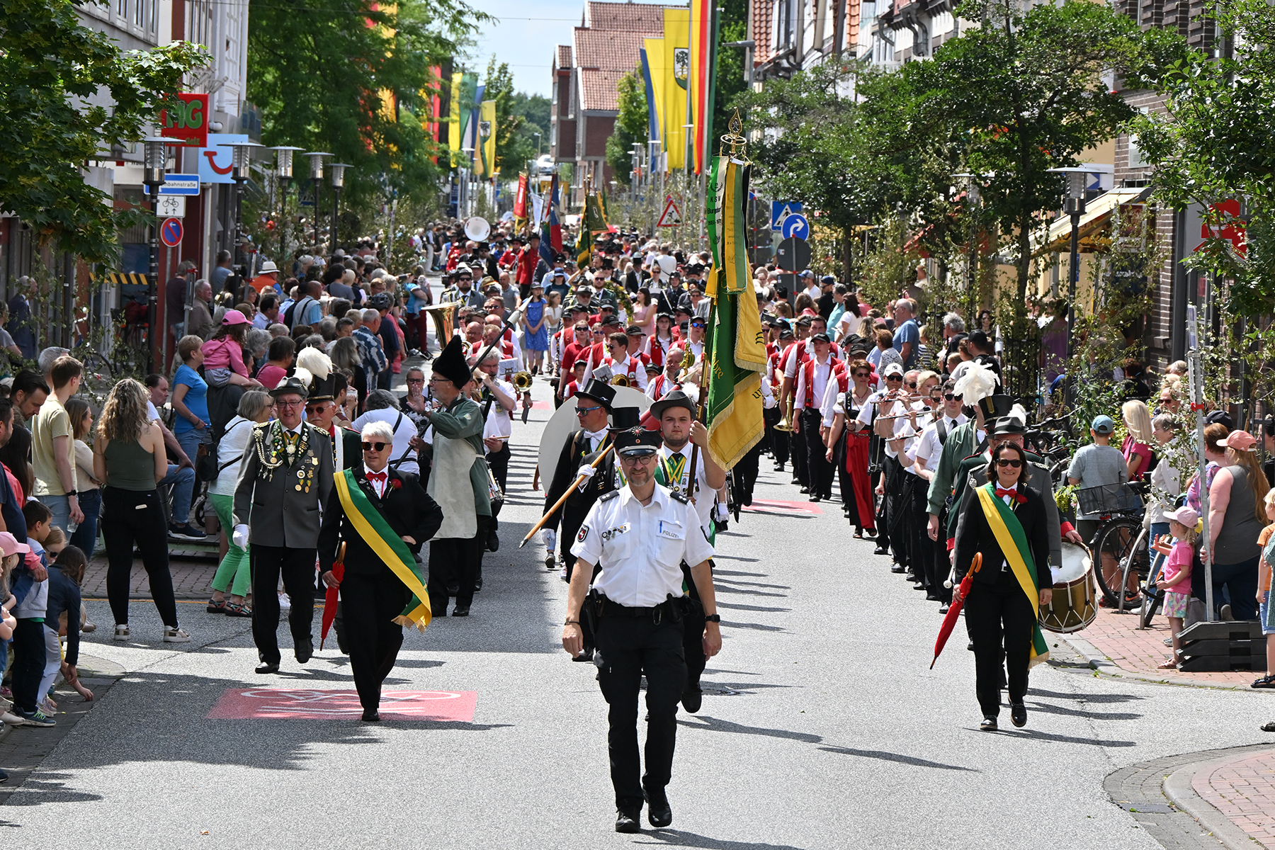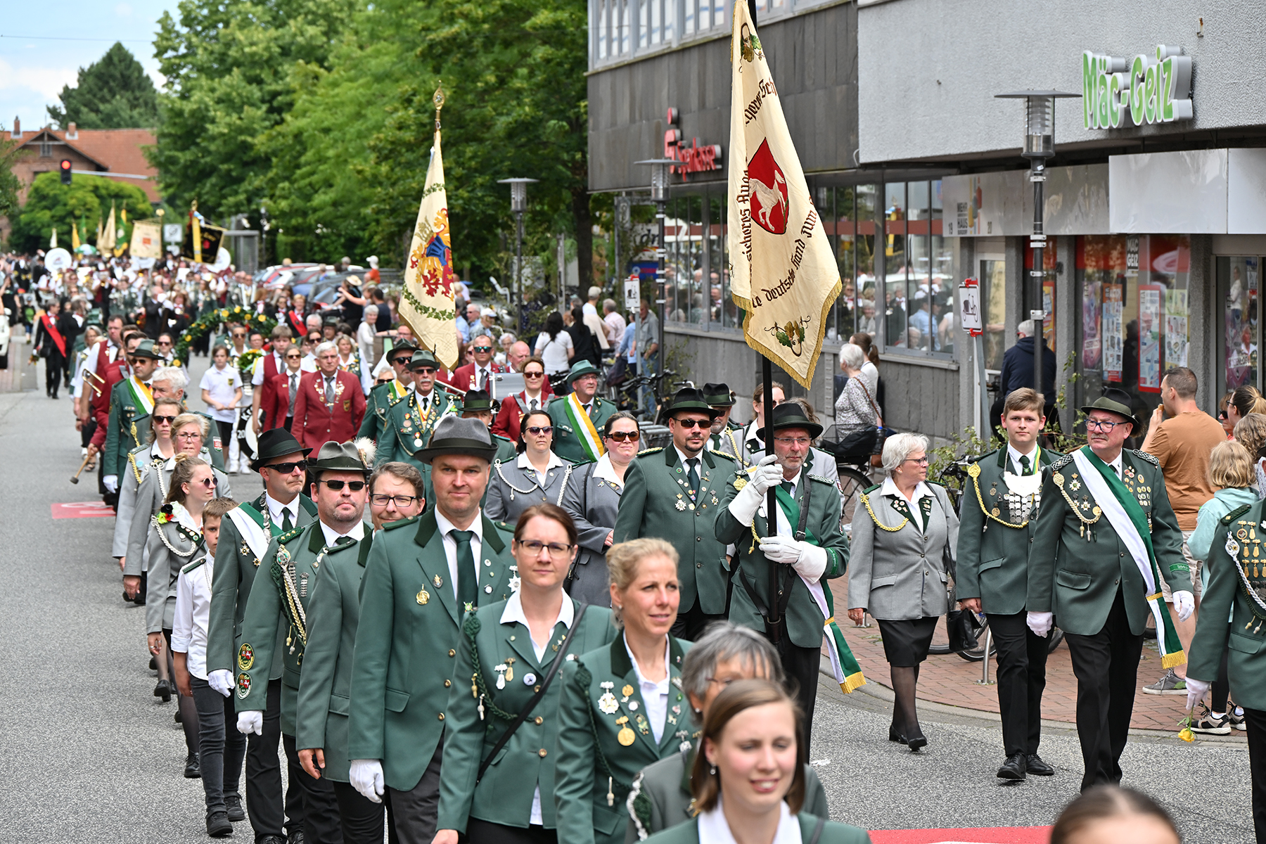 "Das waren vier tolle Tage" fasste es der 1. Vorsitzende der Burgdorfer Schützengesellschaft, Jörg Hoppe, bereits vor dem großen Schützenumzug am heutigen Sonntag, 23. Juni 2024, im Saal des Burgdorfer Schlosses zusammen. Alle hätten "sehr viel Spaß gehabt". Höhepunkt des Volks- und Schützenfestes war wie immer der große Festumzug durch die Straßen der Burgdorfer Innenstadt. Hunderte Zuschauer säumten die Straßen, um den Schützen und ihren befreundeten Vereinen zuzujubeln, insbesondere natürlich den Königen der Burgdorfer Schützengesellschaft wie aber auch den am gestrigen Sonnabend proklamierten Kreiskönigen.