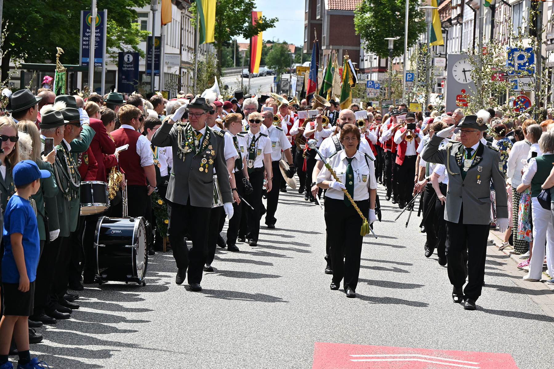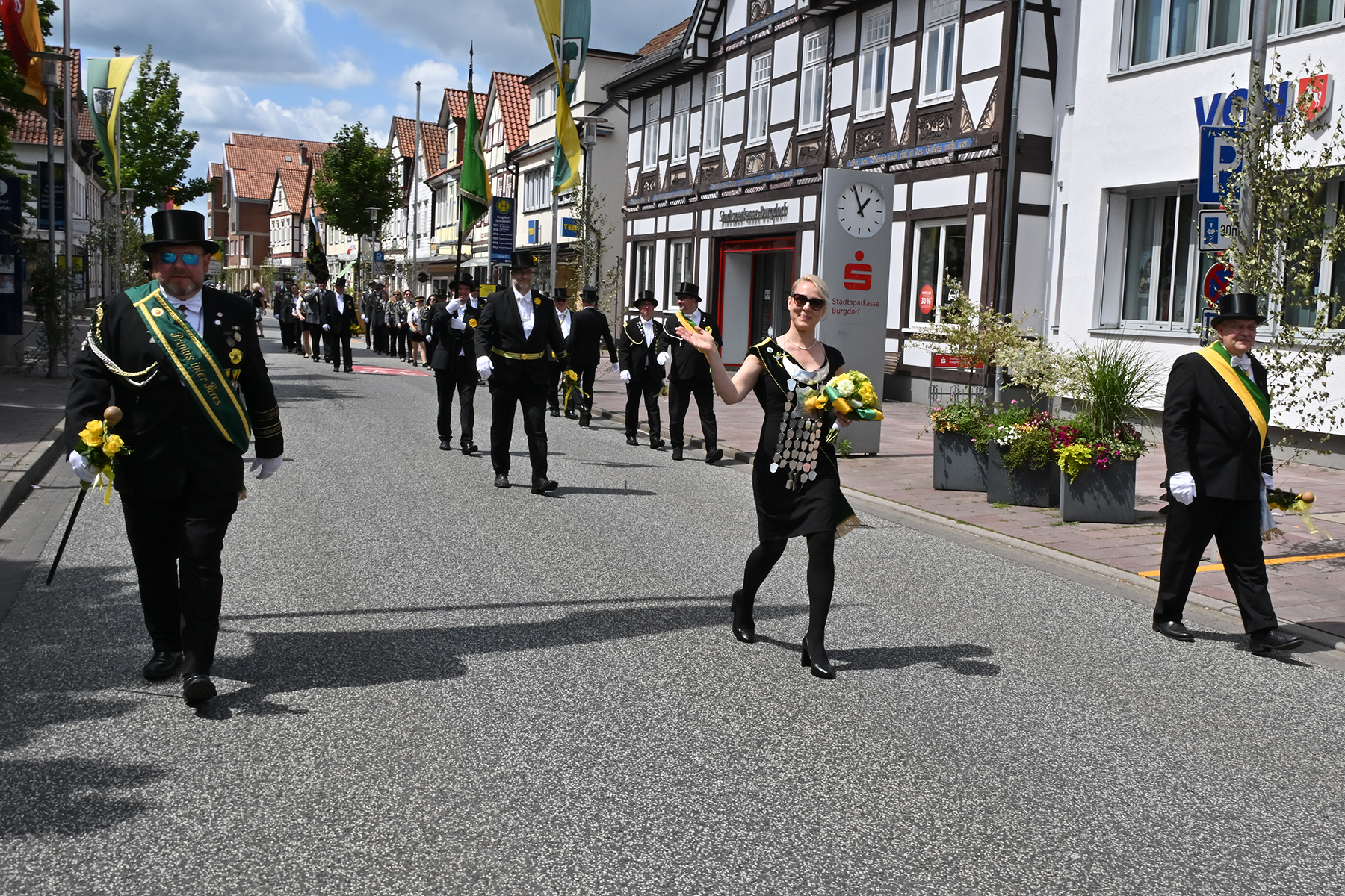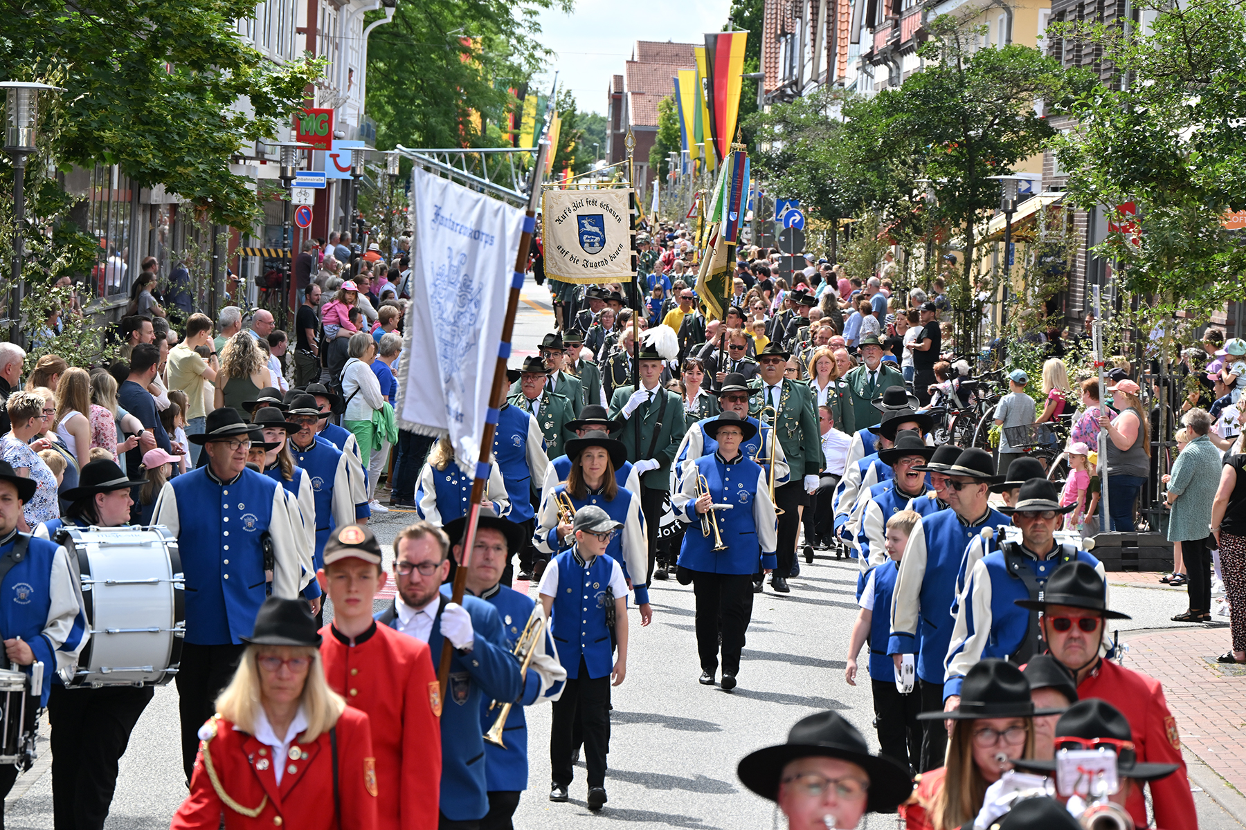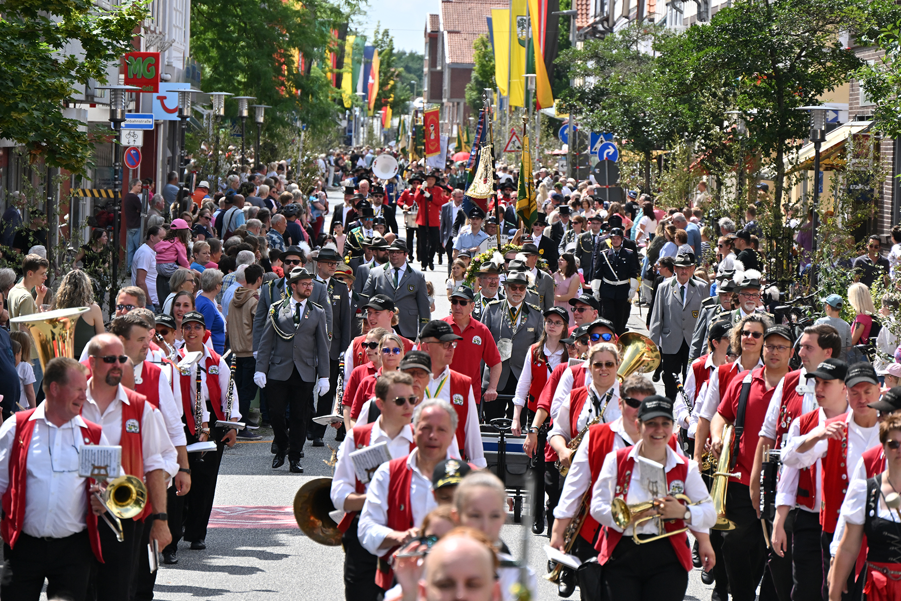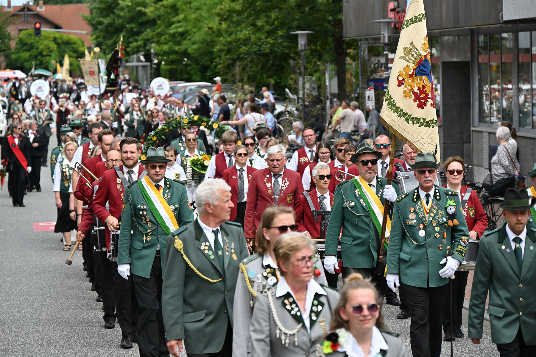 "Das waren vier tolle Tage" fasste es der 1. Vorsitzende der Burgdorfer Schützengesellschaft, Jörg Hoppe, bereits vor dem großen Schützenumzug am heutigen Sonntag, 23. Juni 2024, im Saal des Burgdorfer Schlosses zusammen. Alle hätten "sehr viel Spaß gehabt". Höhepunkt des Volks- und Schützenfestes war wie immer der große Festumzug durch die Straßen der Burgdorfer Innenstadt. Hunderte Zuschauer säumten die Straßen, um den Schützen und ihren befreundeten Vereinen zuzujubeln, insbesondere natürlich den Königen der Burgdorfer Schützengesellschaft wie aber auch den am gestrigen Sonnabend proklamierten Kreiskönigen.