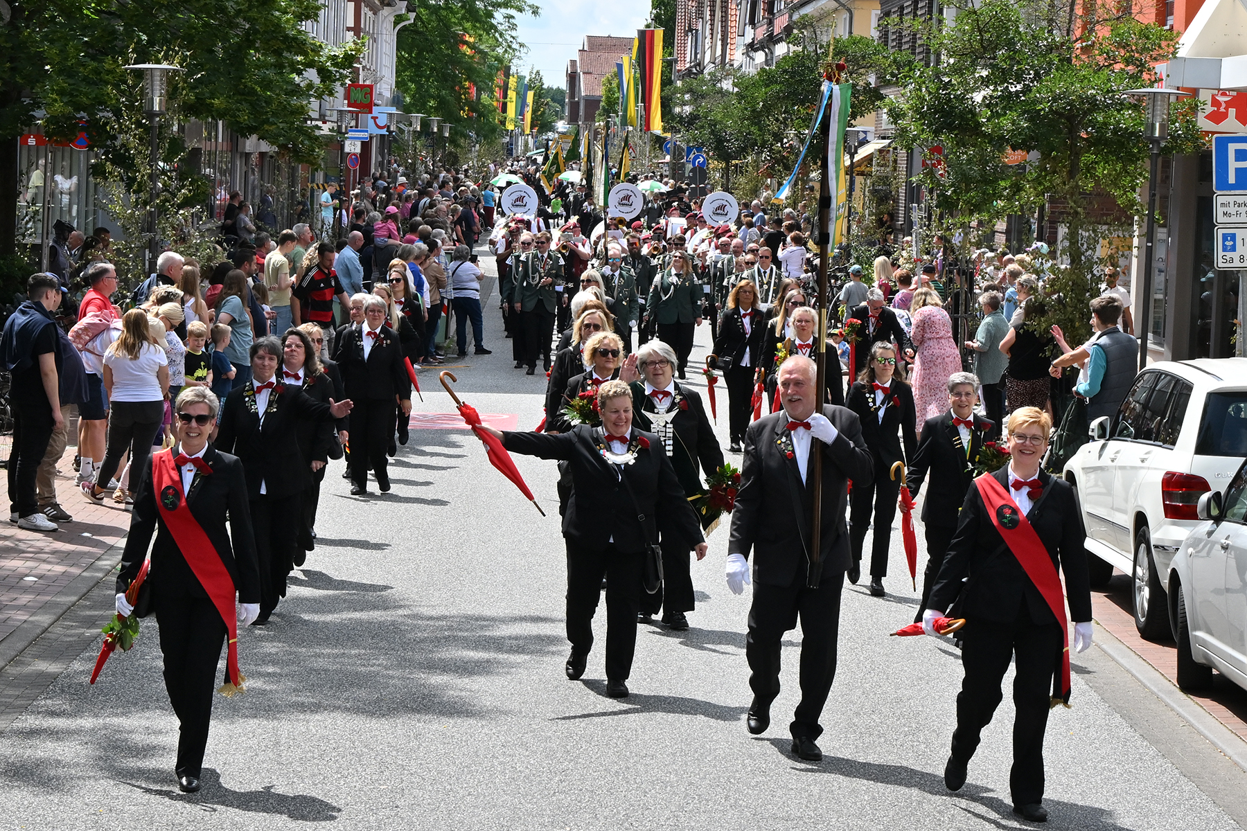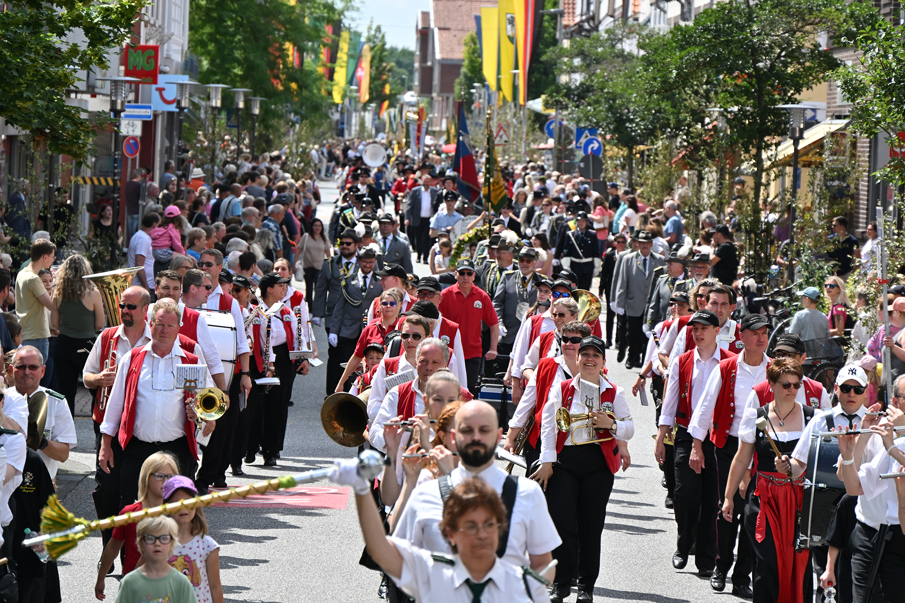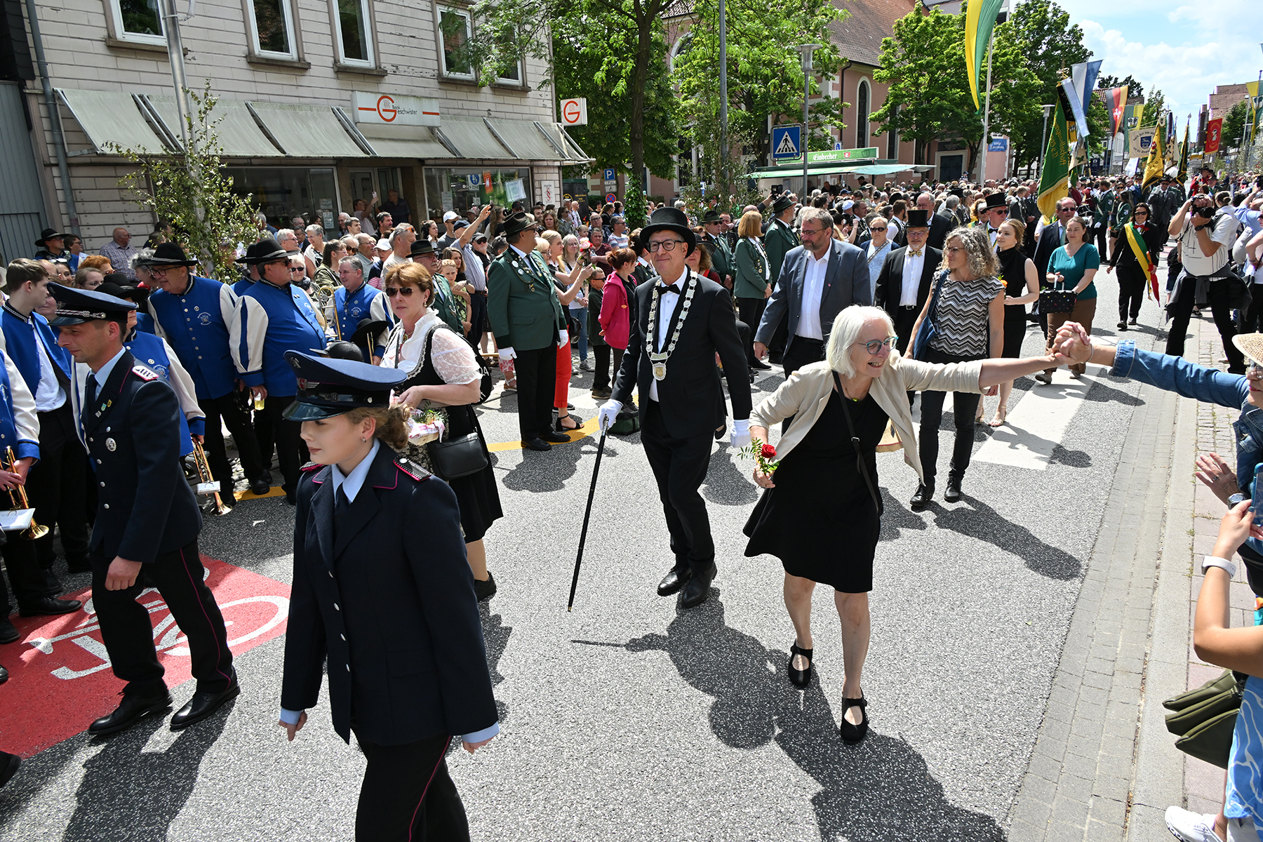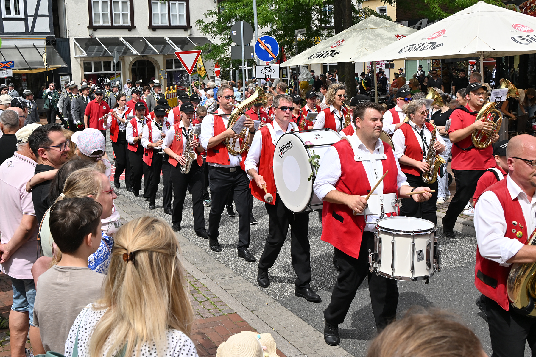 "Das waren vier tolle Tage" fasste es der 1. Vorsitzende der Burgdorfer Schützengesellschaft, Jörg Hoppe, bereits vor dem großen Schützenumzug am heutigen Sonntag, 23. Juni 2024, im Saal des Burgdorfer Schlosses zusammen. Alle hätten "sehr viel Spaß gehabt". Höhepunkt des Volks- und Schützenfestes war wie immer der große Festumzug durch die Straßen der Burgdorfer Innenstadt. Hunderte Zuschauer säumten die Straßen, um den Schützen und ihren befreundeten Vereinen zuzujubeln, insbesondere natürlich den Königen der Burgdorfer Schützengesellschaft wie aber auch den am gestrigen Sonnabend proklamierten Kreiskönigen.