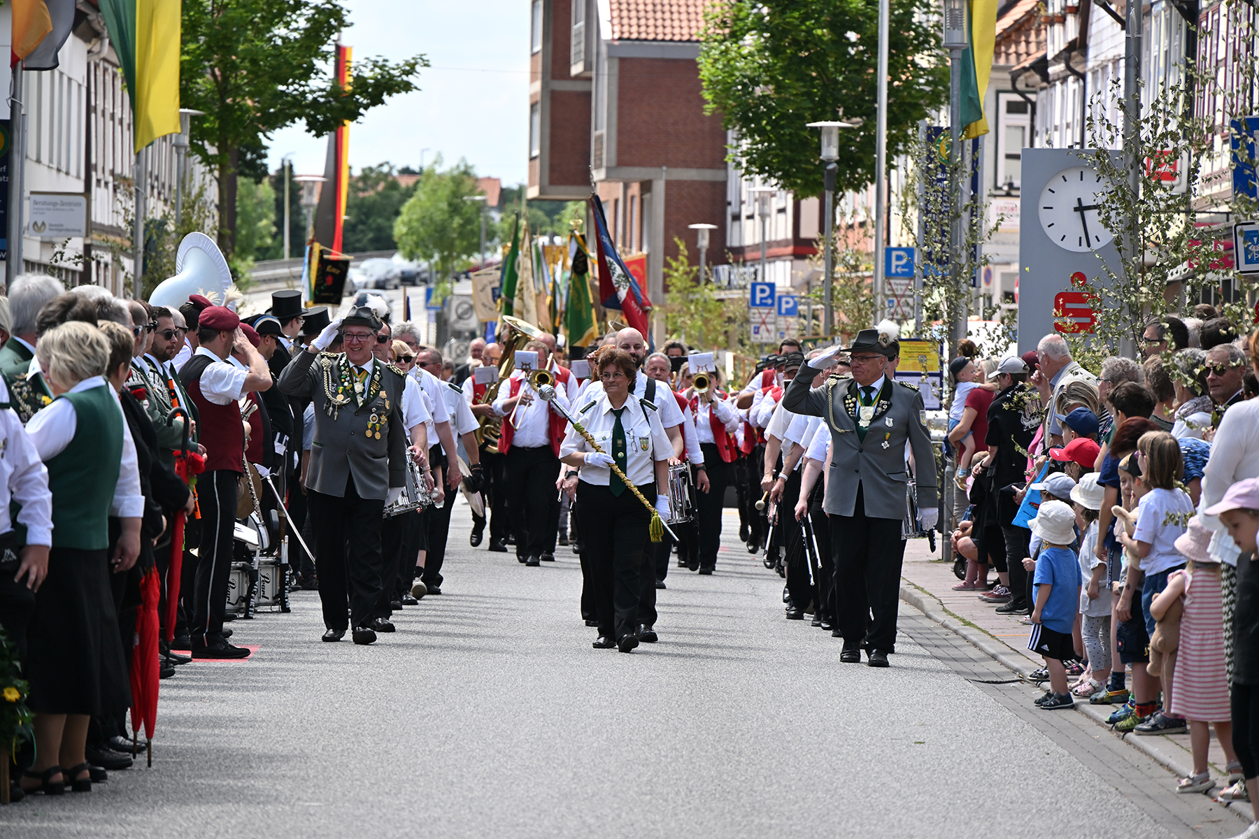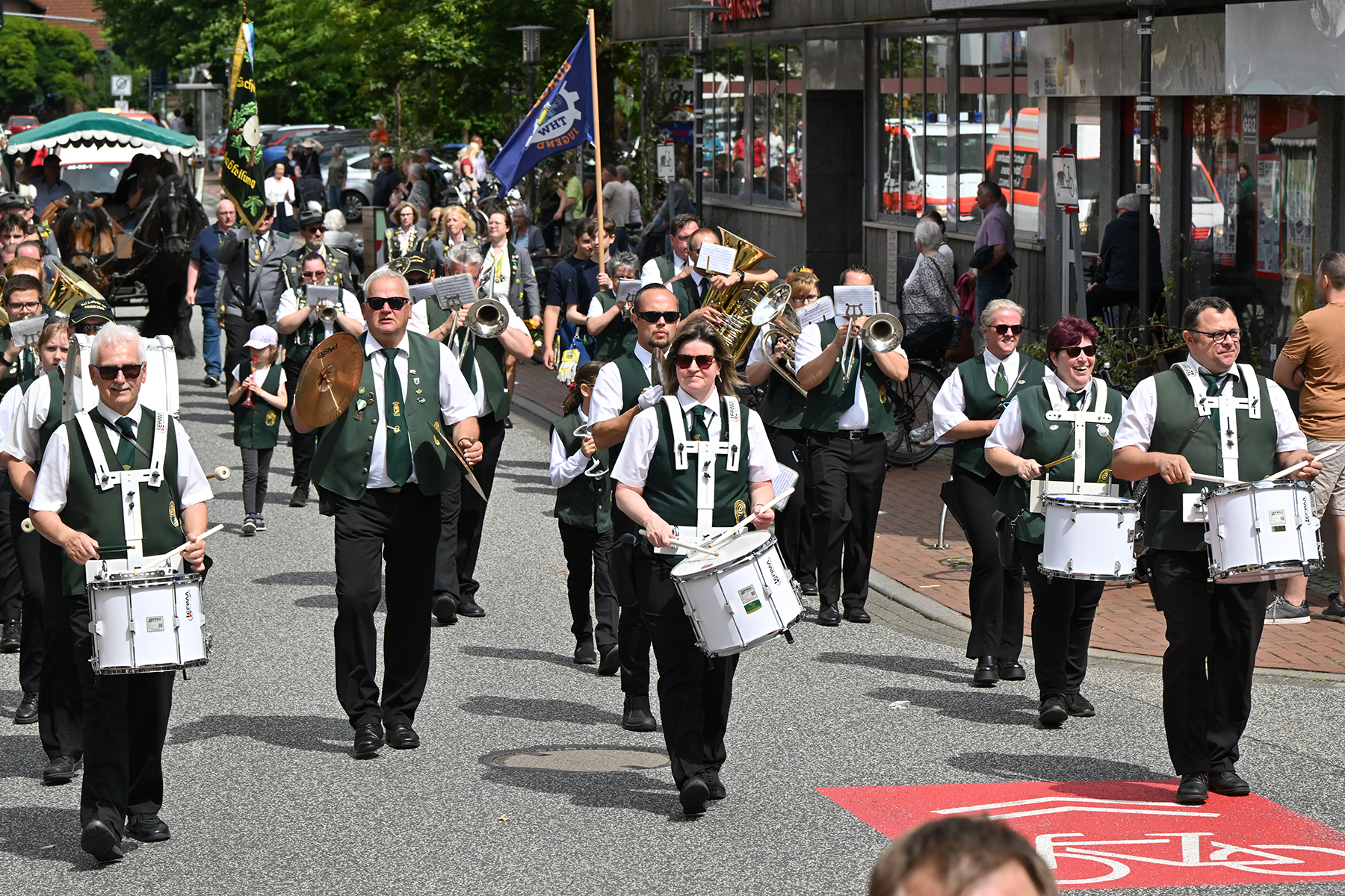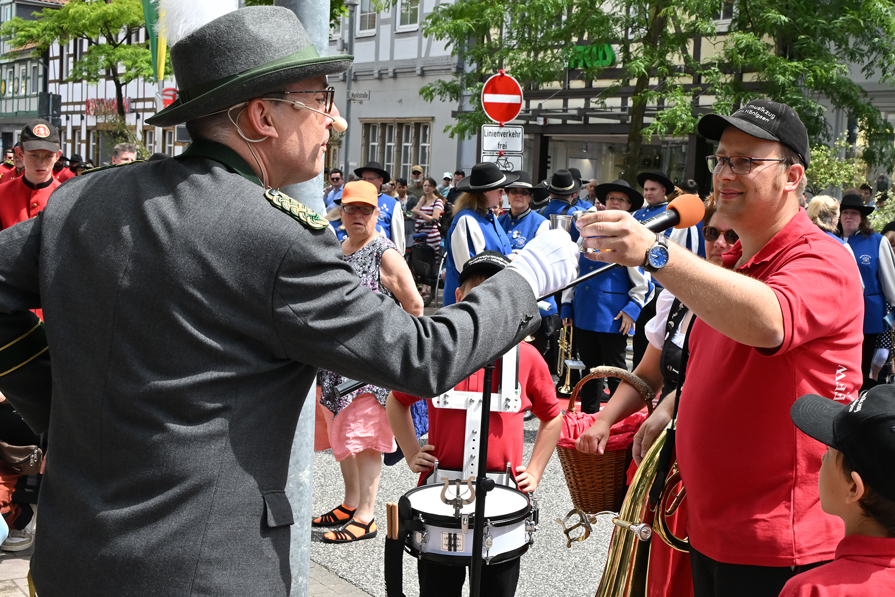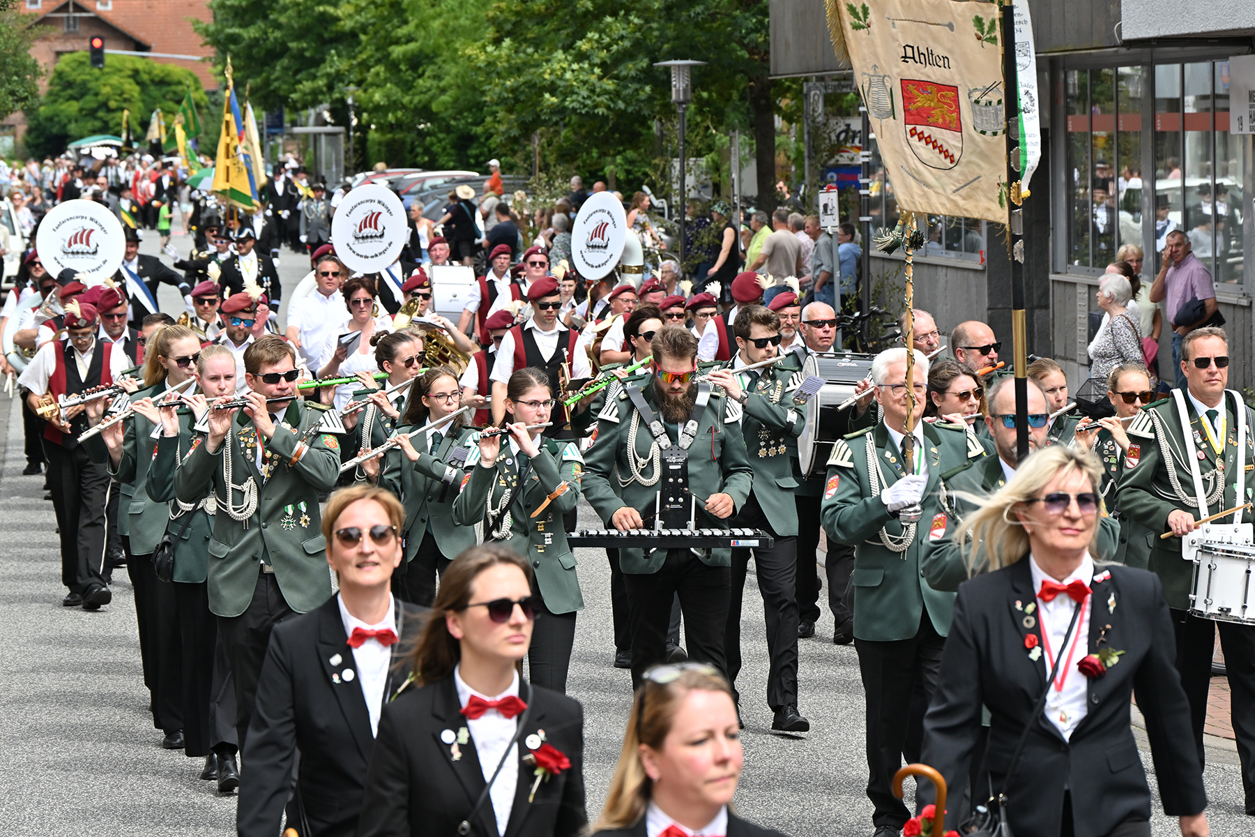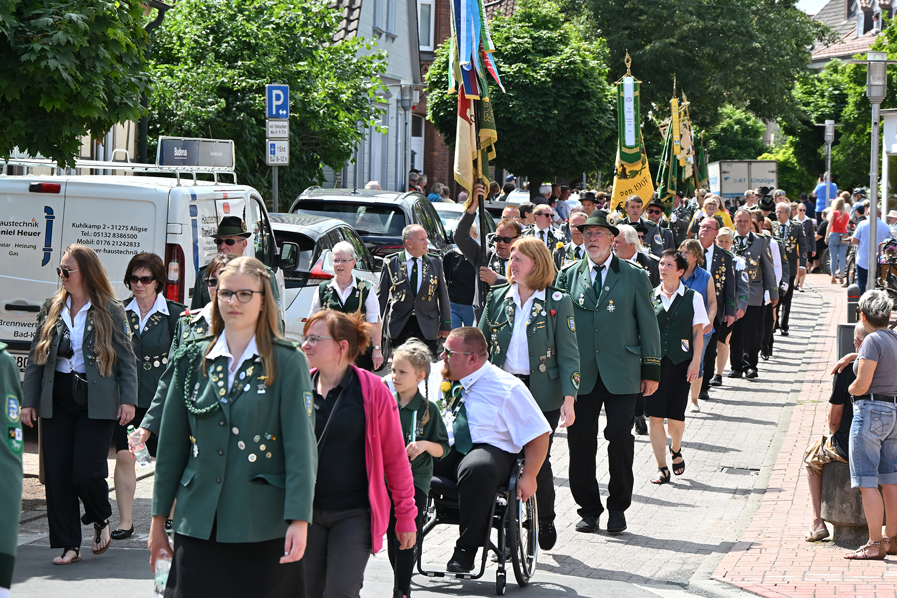 "Das waren vier tolle Tage" fasste es der 1. Vorsitzende der Burgdorfer Schützengesellschaft, Jörg Hoppe, bereits vor dem großen Schützenumzug am heutigen Sonntag, 23. Juni 2024, im Saal des Burgdorfer Schlosses zusammen. Alle hätten "sehr viel Spaß gehabt". Höhepunkt des Volks- und Schützenfestes war wie immer der große Festumzug durch die Straßen der Burgdorfer Innenstadt. Hunderte Zuschauer säumten die Straßen, um den Schützen und ihren befreundeten Vereinen zuzujubeln, insbesondere natürlich den Königen der Burgdorfer Schützengesellschaft wie aber auch den am gestrigen Sonnabend proklamierten Kreiskönigen.