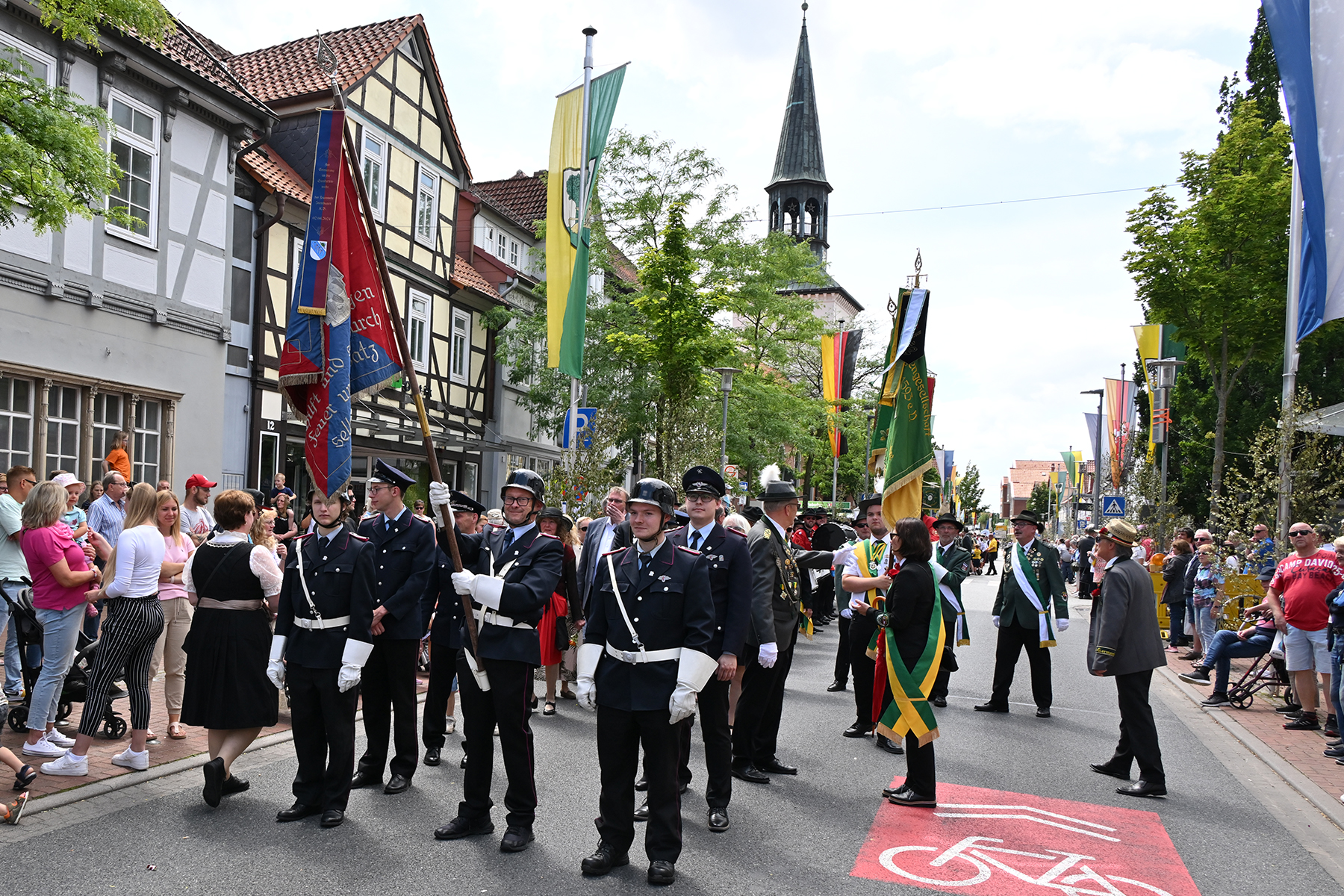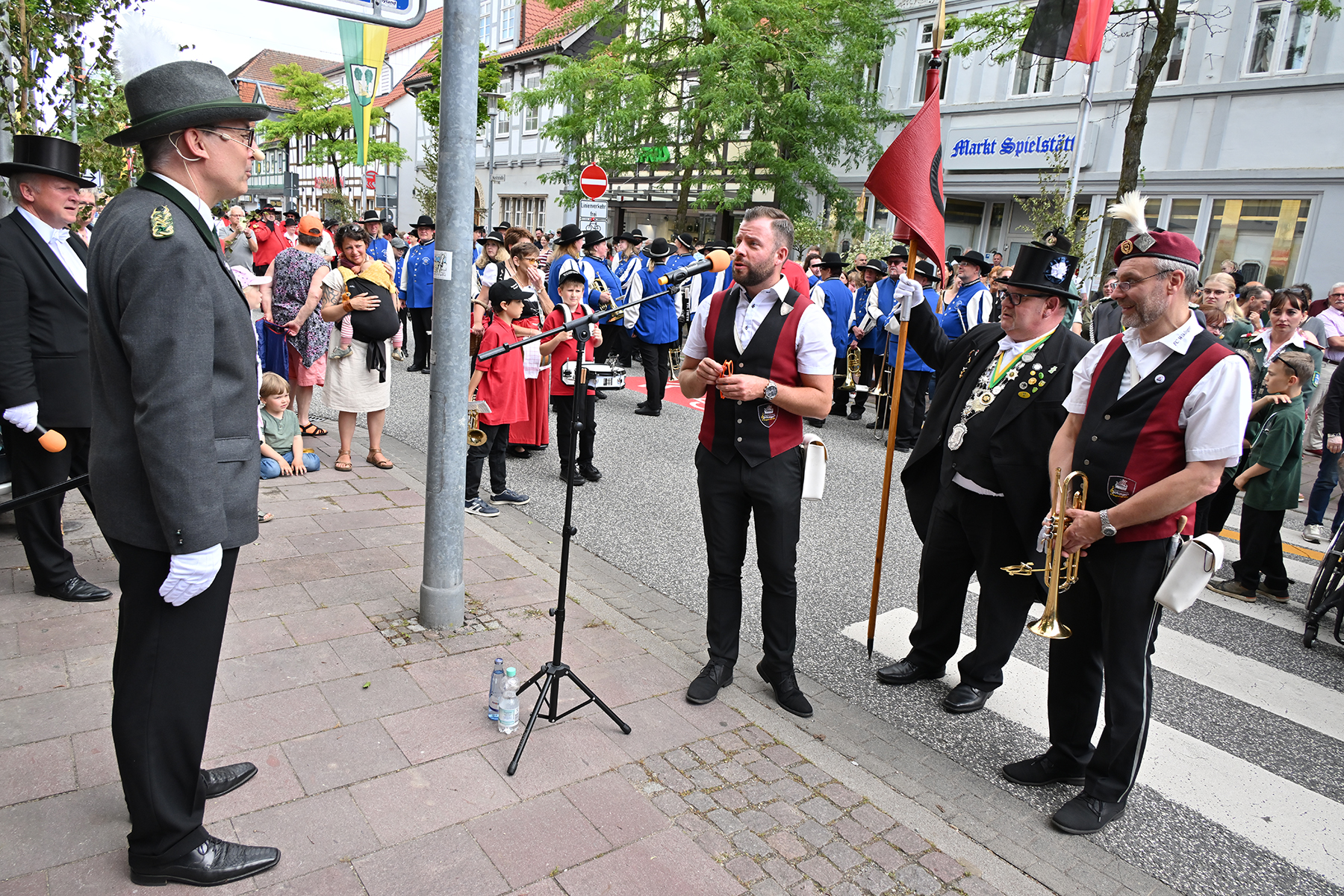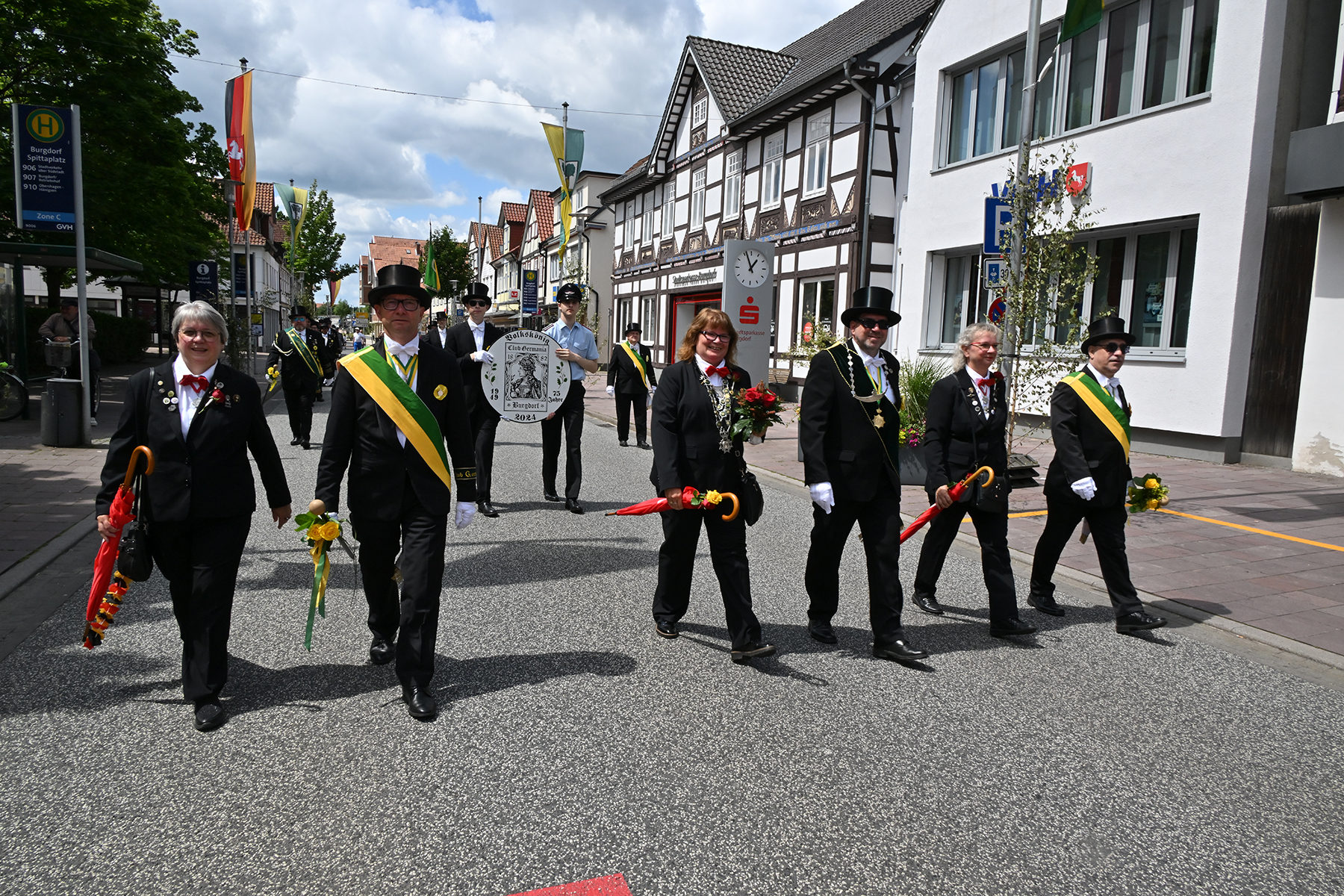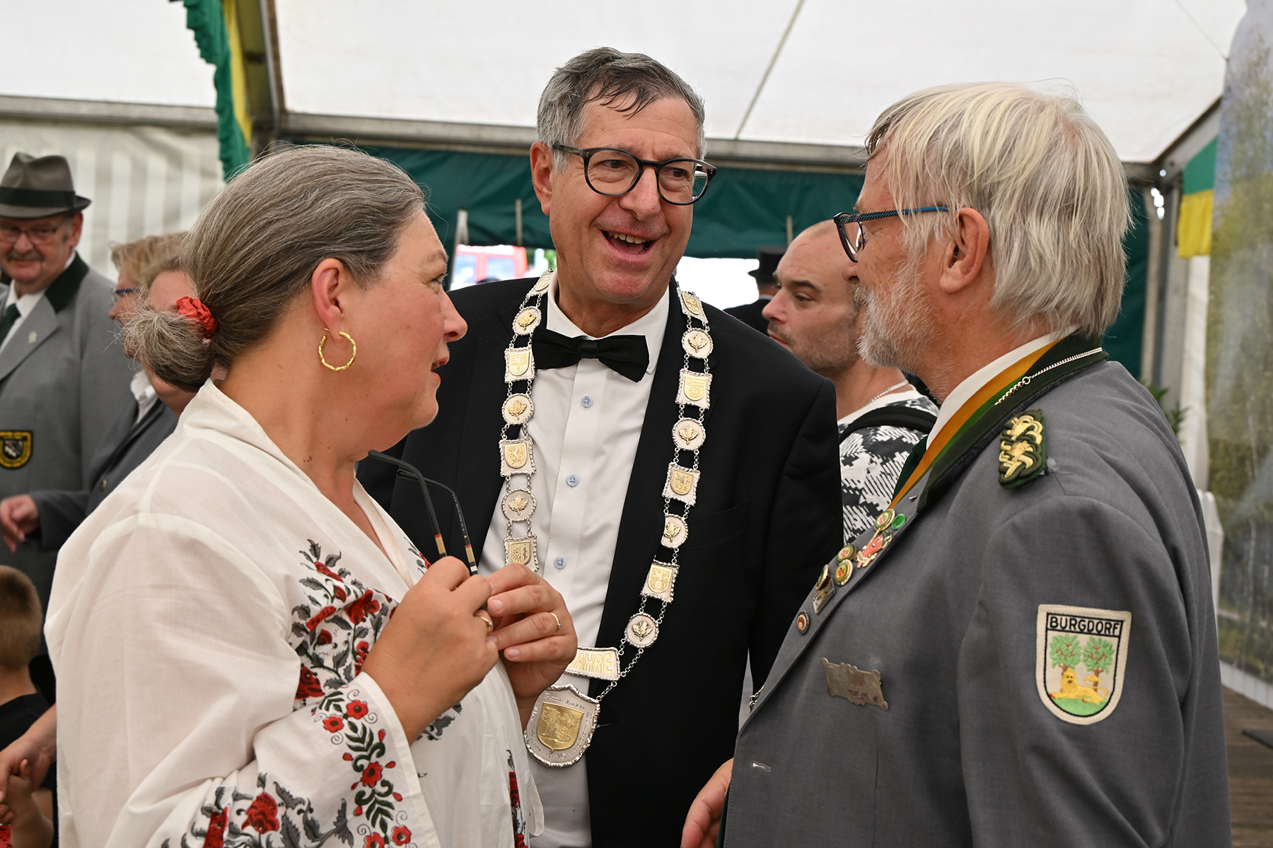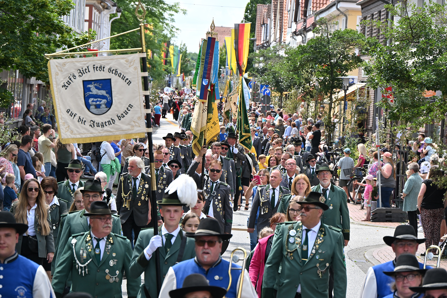 Eine besondere Ehre war es dem Schützen-Vorsitzenden Jörg Hoppe, dass auch wieder eine Abordnung vom befreundeten Schützenverein aus Calbe (Saale) nach Burgdorf gekommen war. "Es ist mir eine Freude, dass die Calbenser zu uns kommen und beim Umzug mitmachen", so Jörg Hoppe. Er freute sich zudem, dass das Schützenfest weiterhin gut angenommen werde. Rund 900 Gäste kamen zum gestrigen Festball ins Festzelt. Auch der Festplatz sei gut besucht gewesen. "Wir haben alles dafür getan, ein gelungenes Schützenfest zu feiern", unterstrich er.