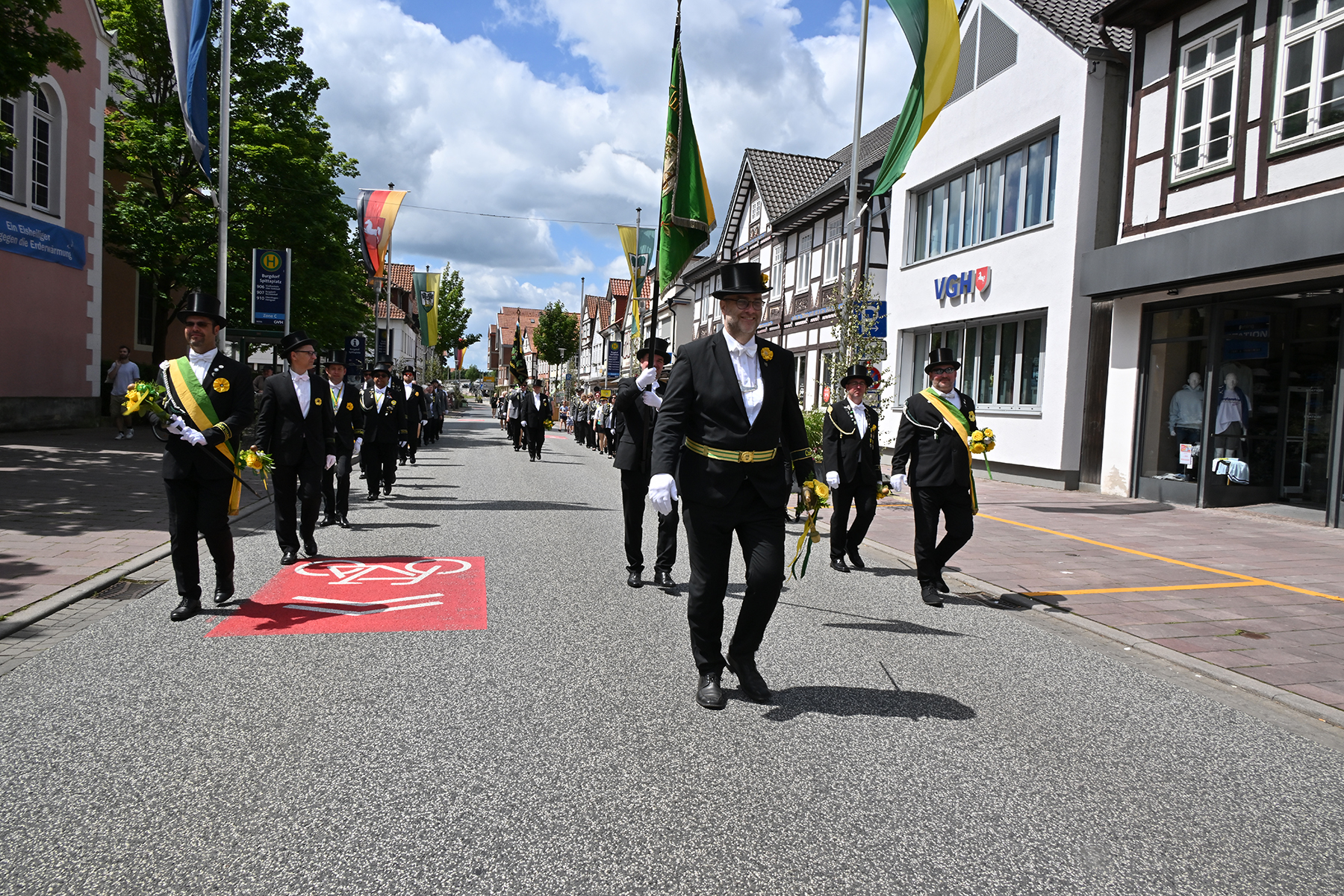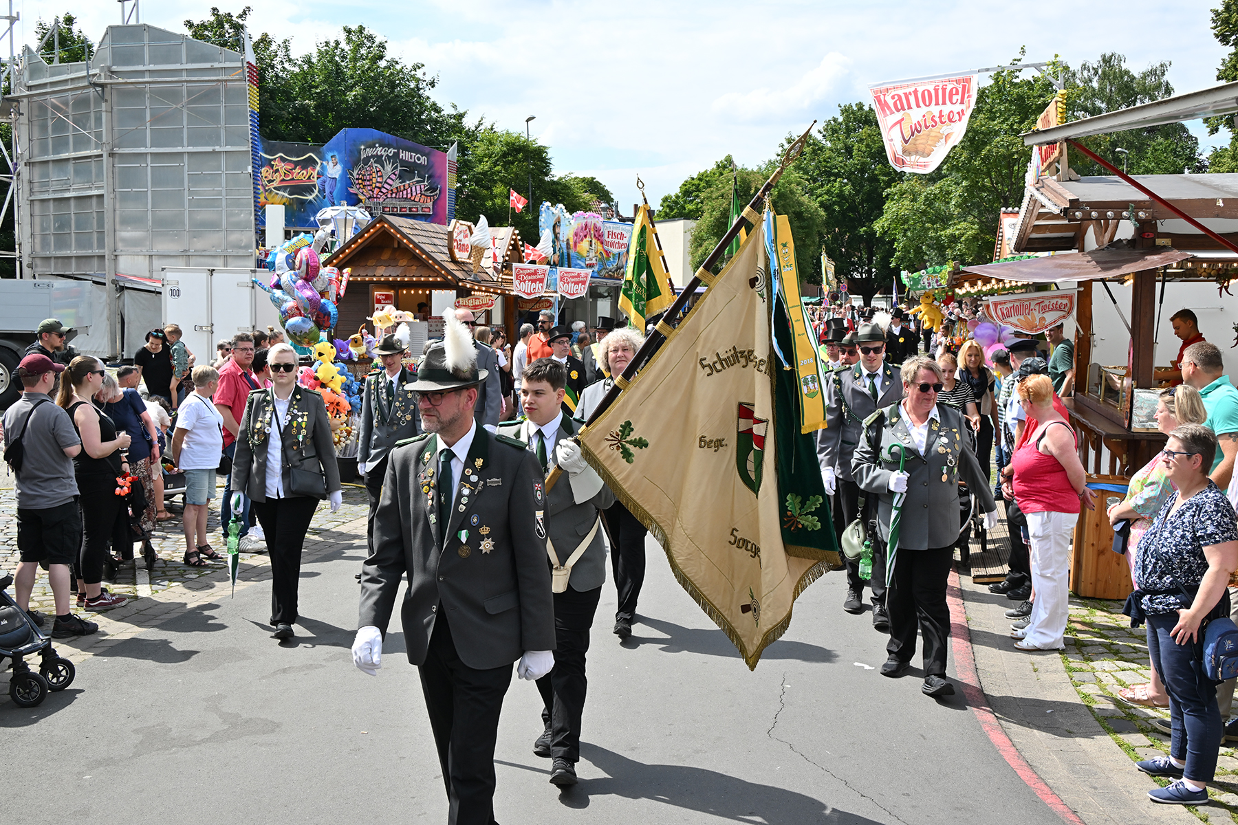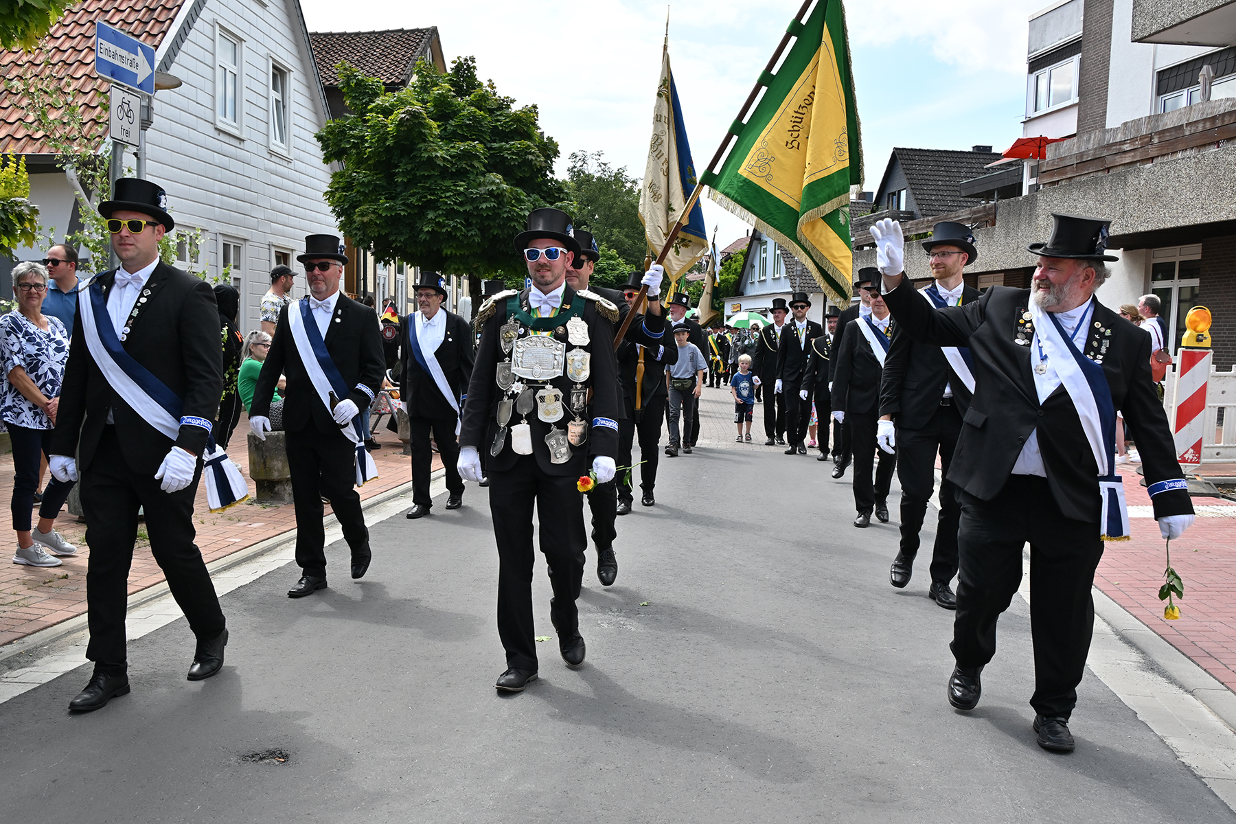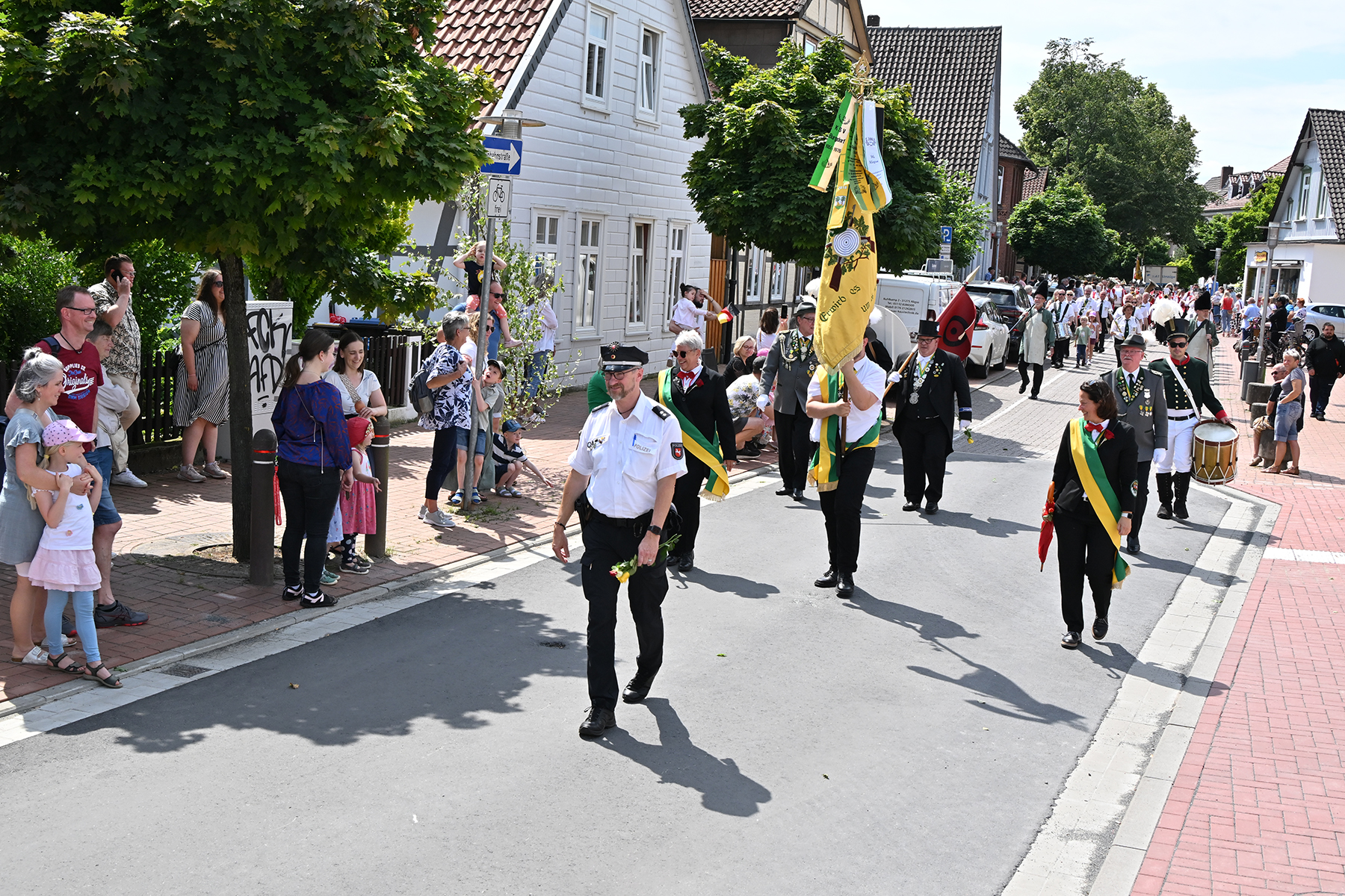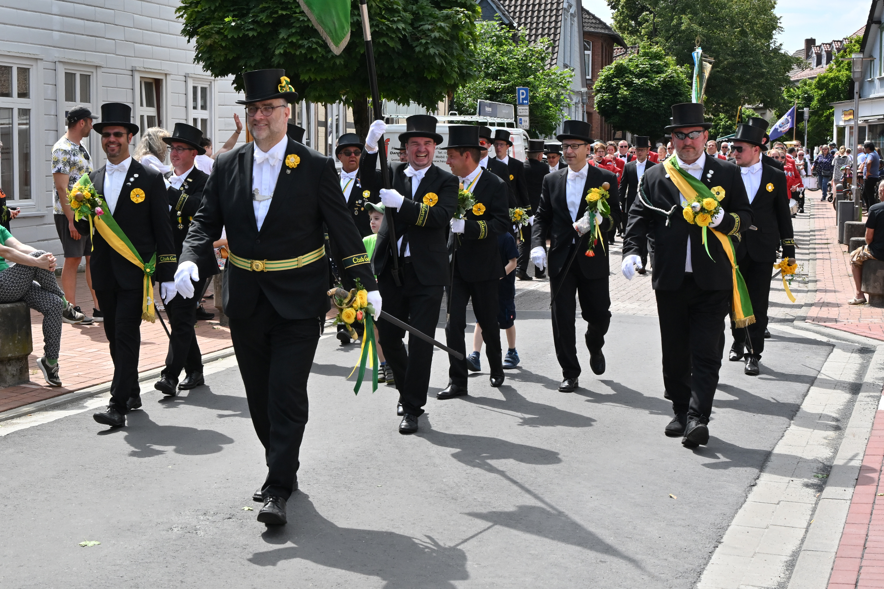Eine besondere Ehre war es dem Schützen-Vorsitzenden Jörg Hoppe, dass auch wieder eine Abordnung vom befreundeten Schützenverein aus Calbe (Saale) nach Burgdorf gekommen war. "Es ist mir eine Freude, dass die Calbenser zu uns kommen und beim Umzug mitmachen", so Jörg Hoppe. Er freute sich zudem, dass das Schützenfest weiterhin gut angenommen werde. Rund 900 Gäste kamen zum gestrigen Festball ins Festzelt. Auch der Festplatz sei gut besucht gewesen. "Wir haben alles dafür getan, ein gelungenes Schützenfest zu feiern", unterstrich er.