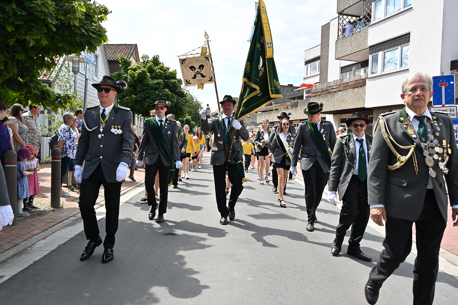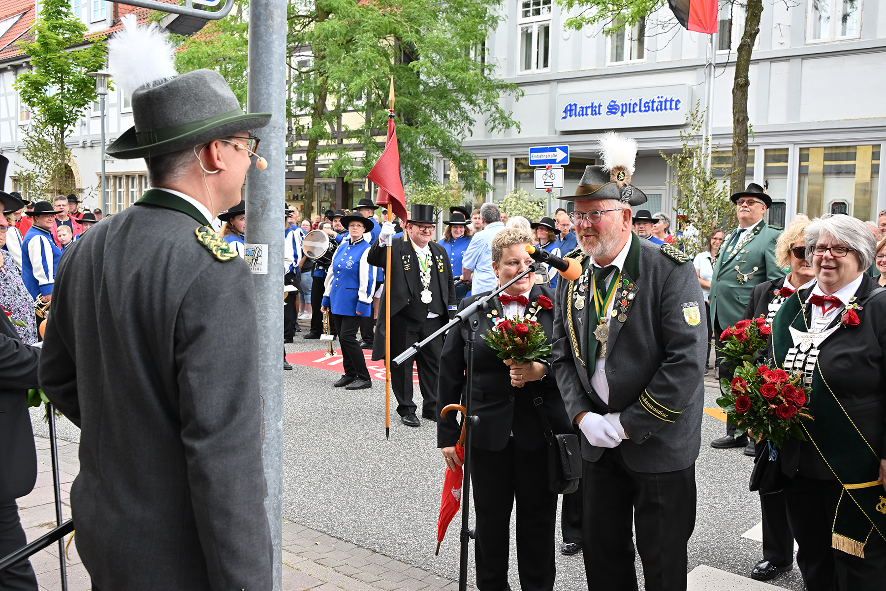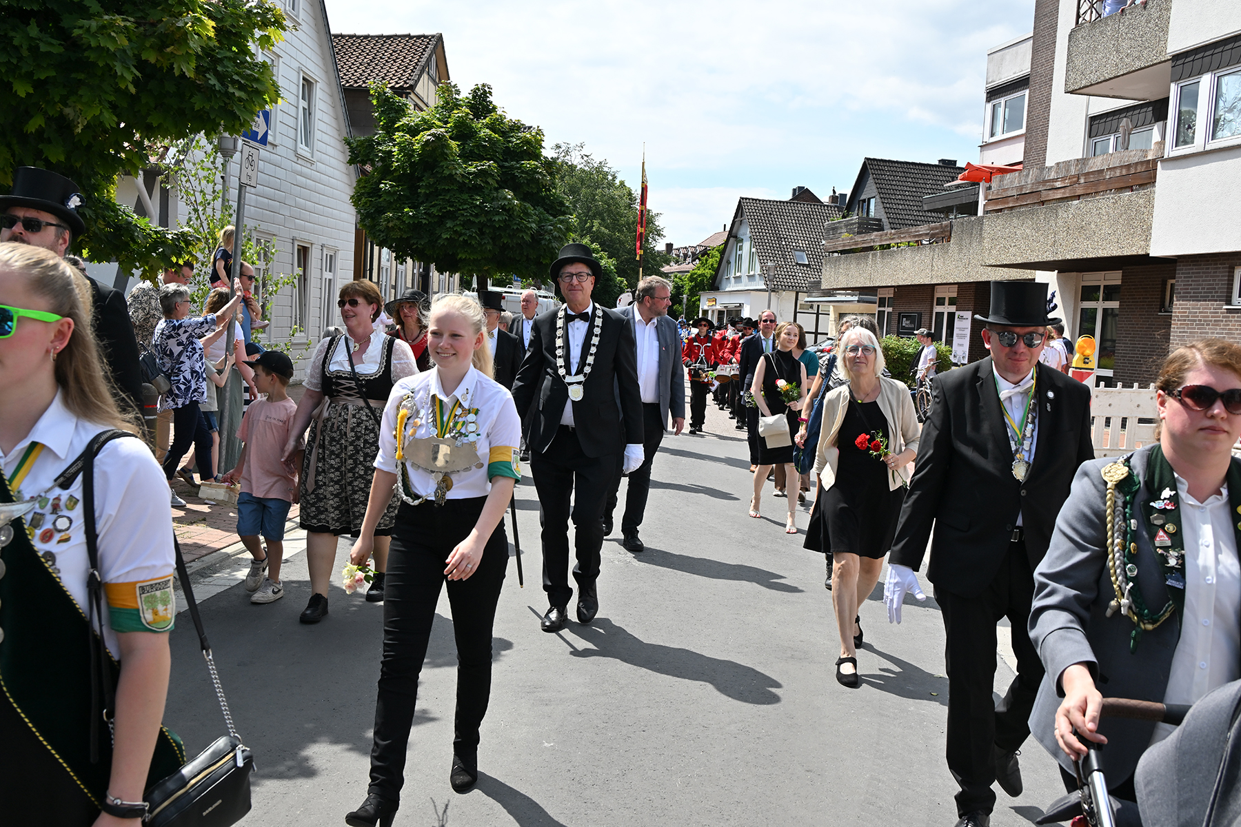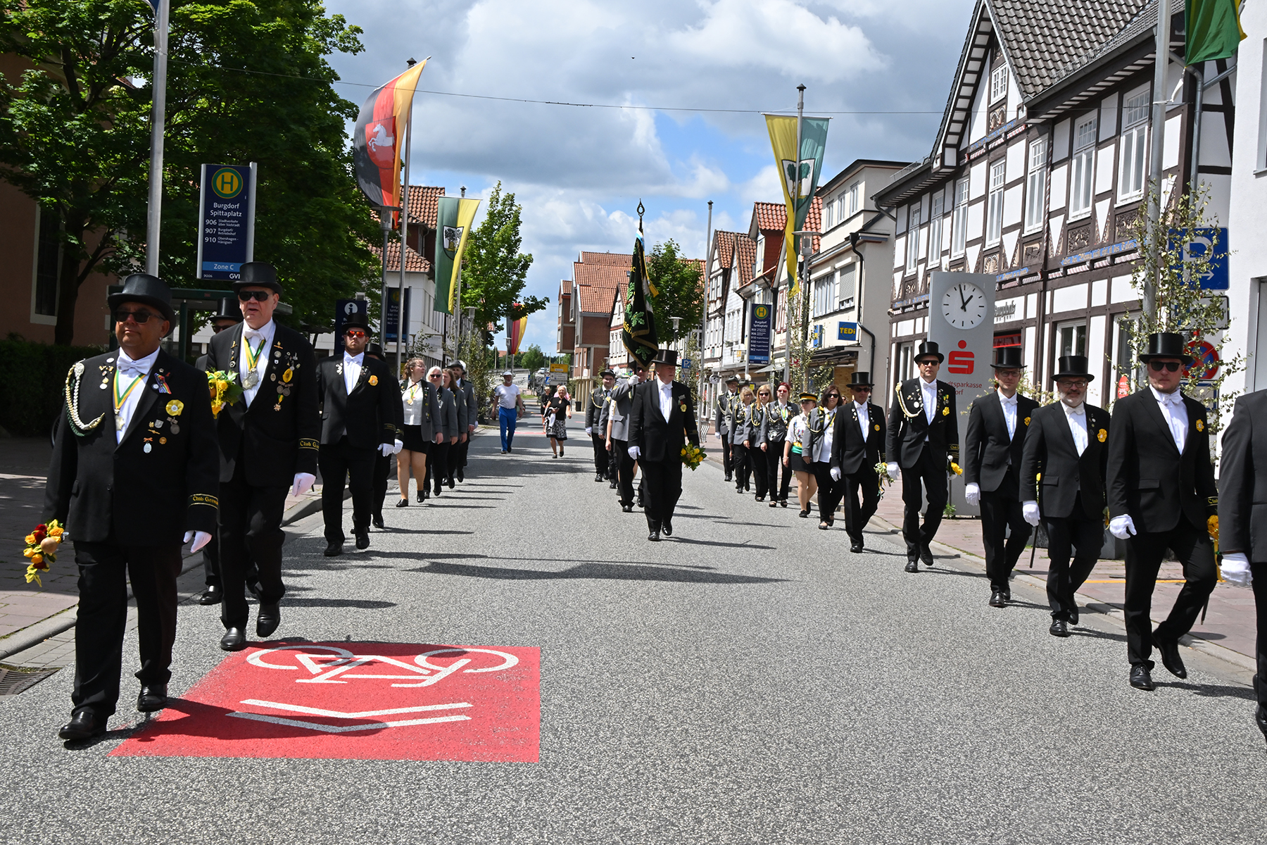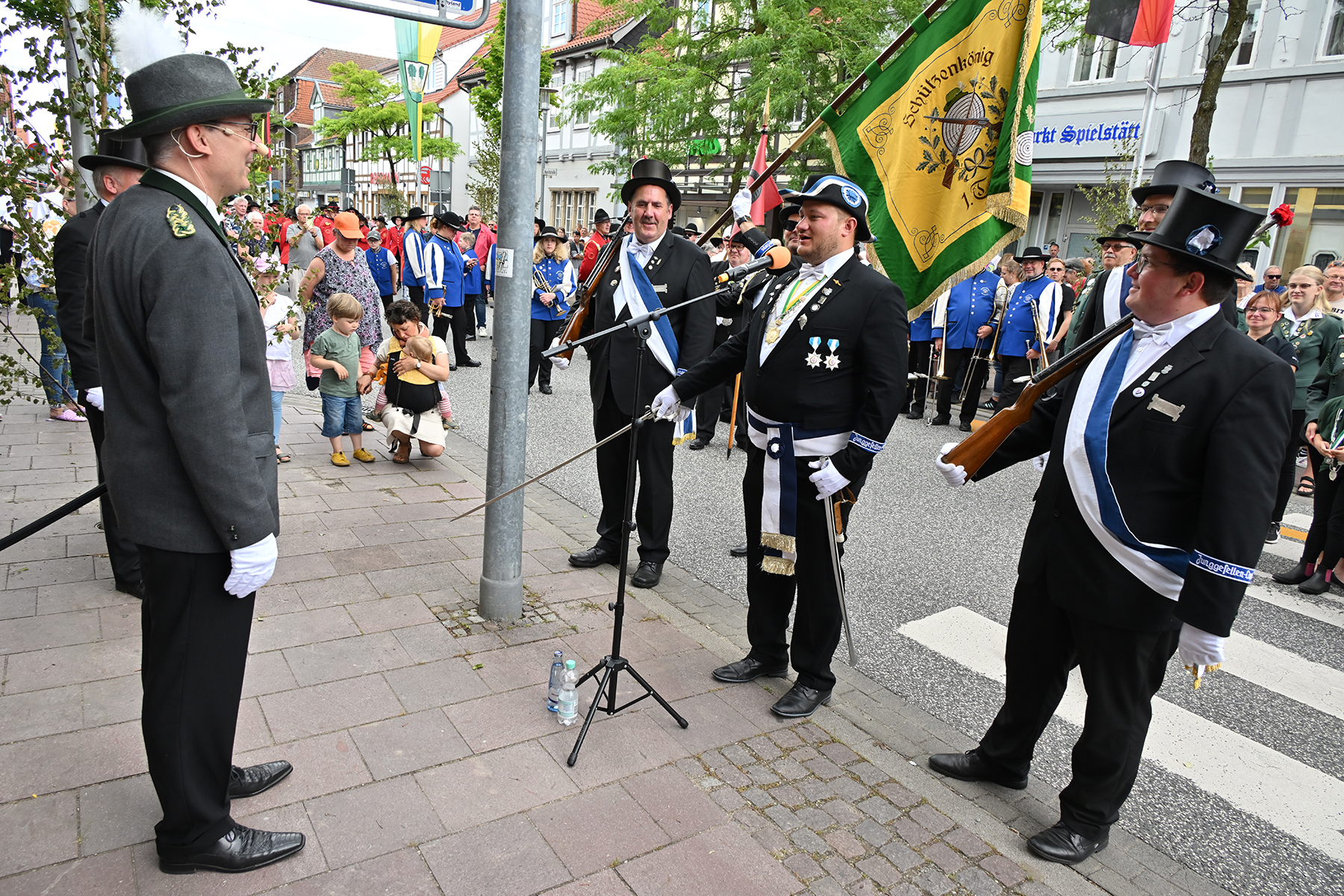 Eine besondere Ehre war es dem Schützen-Vorsitzenden Jörg Hoppe, dass auch wieder eine Abordnung vom befreundeten Schützenverein aus Calbe (Saale) nach Burgdorf gekommen war. "Es ist mir eine Freude, dass die Calbenser zu uns kommen und beim Umzug mitmachen", so Jörg Hoppe. Er freute sich zudem, dass das Schützenfest weiterhin gut angenommen werde. Rund 900 Gäste kamen zum gestrigen Festball ins Festzelt. Auch der Festplatz sei gut besucht gewesen. "Wir haben alles dafür getan, ein gelungenes Schützenfest zu feiern", unterstrich er.