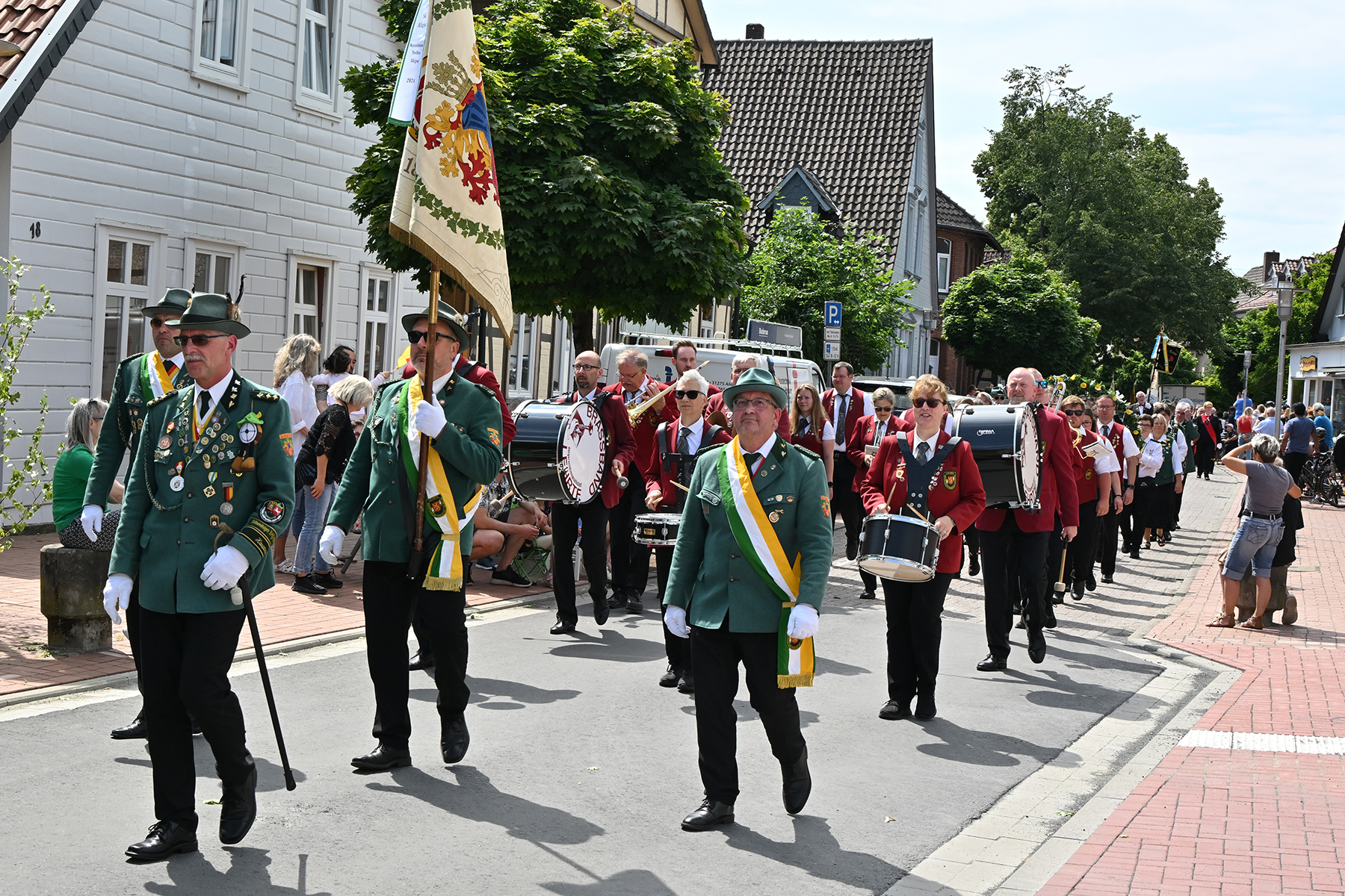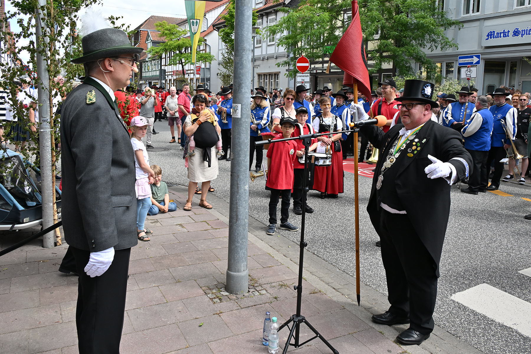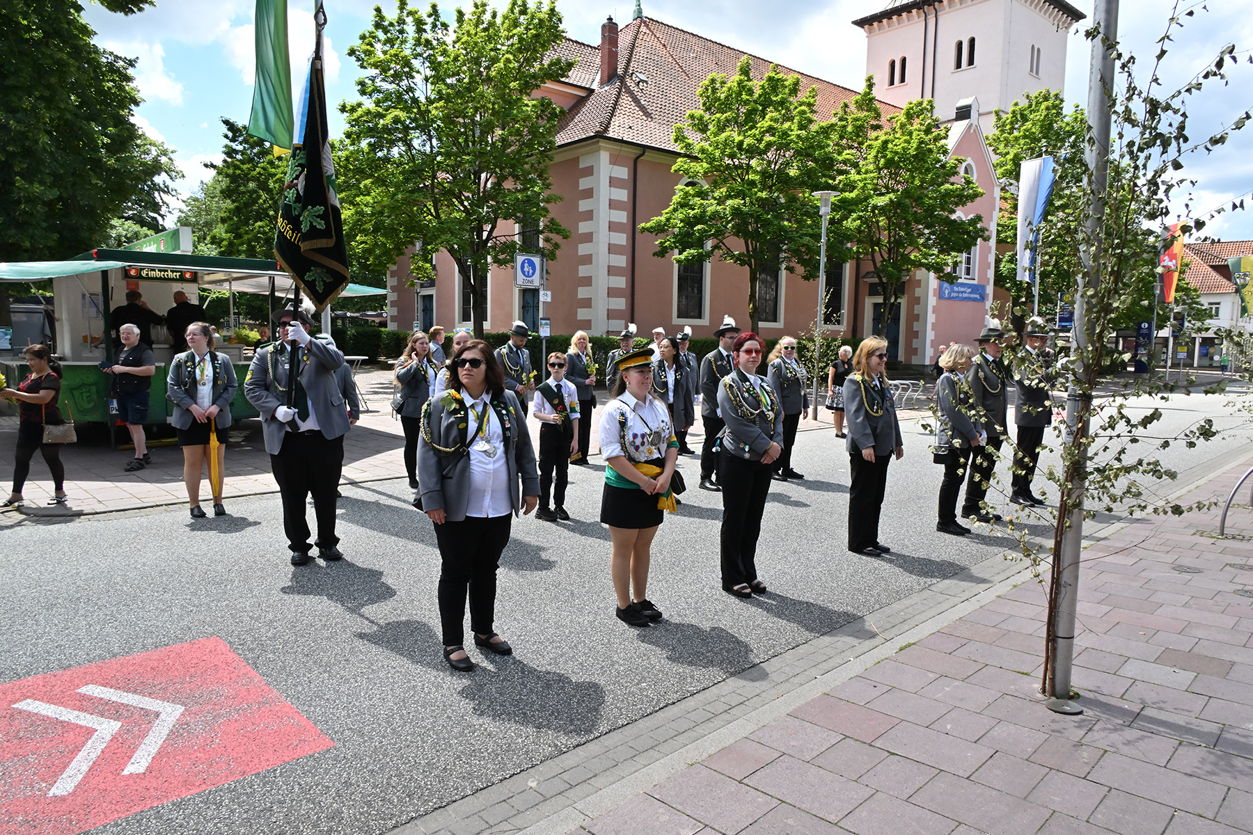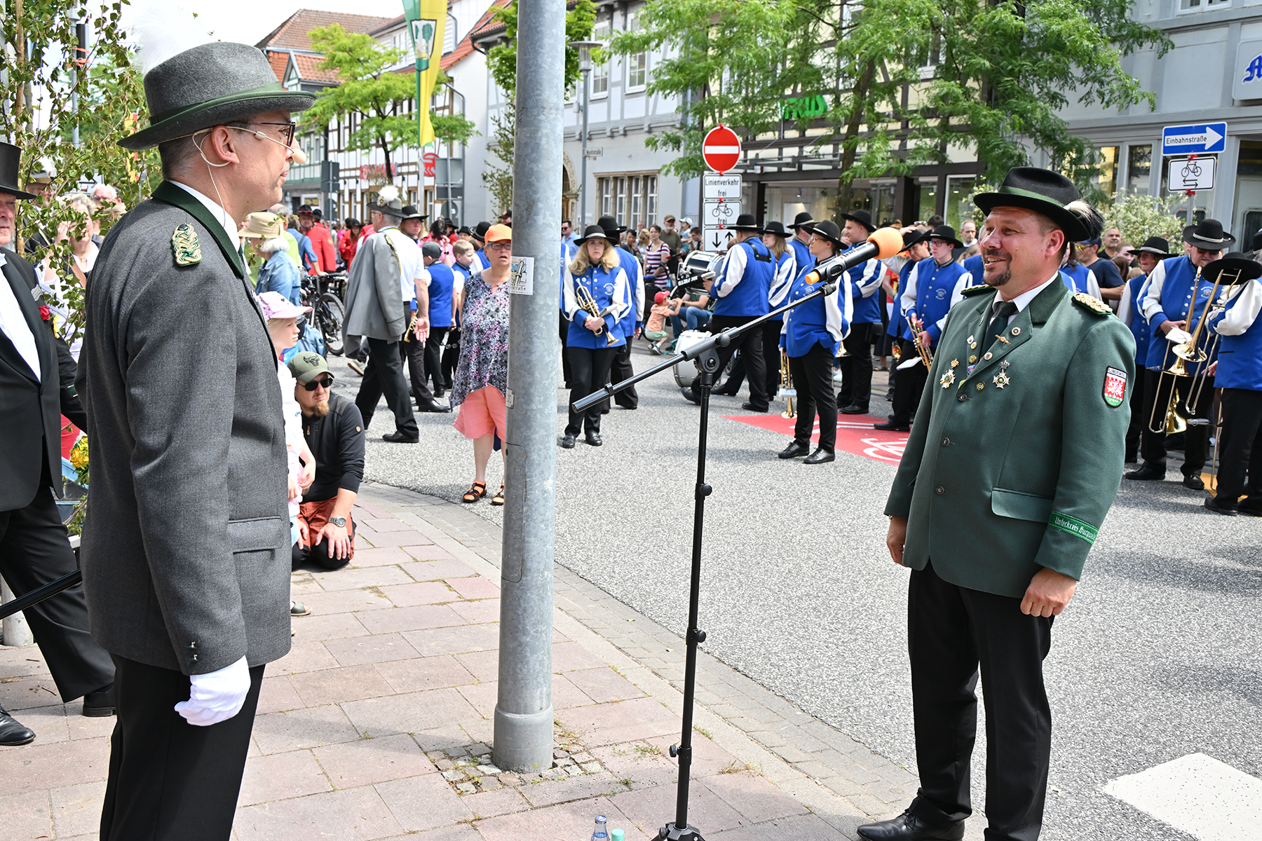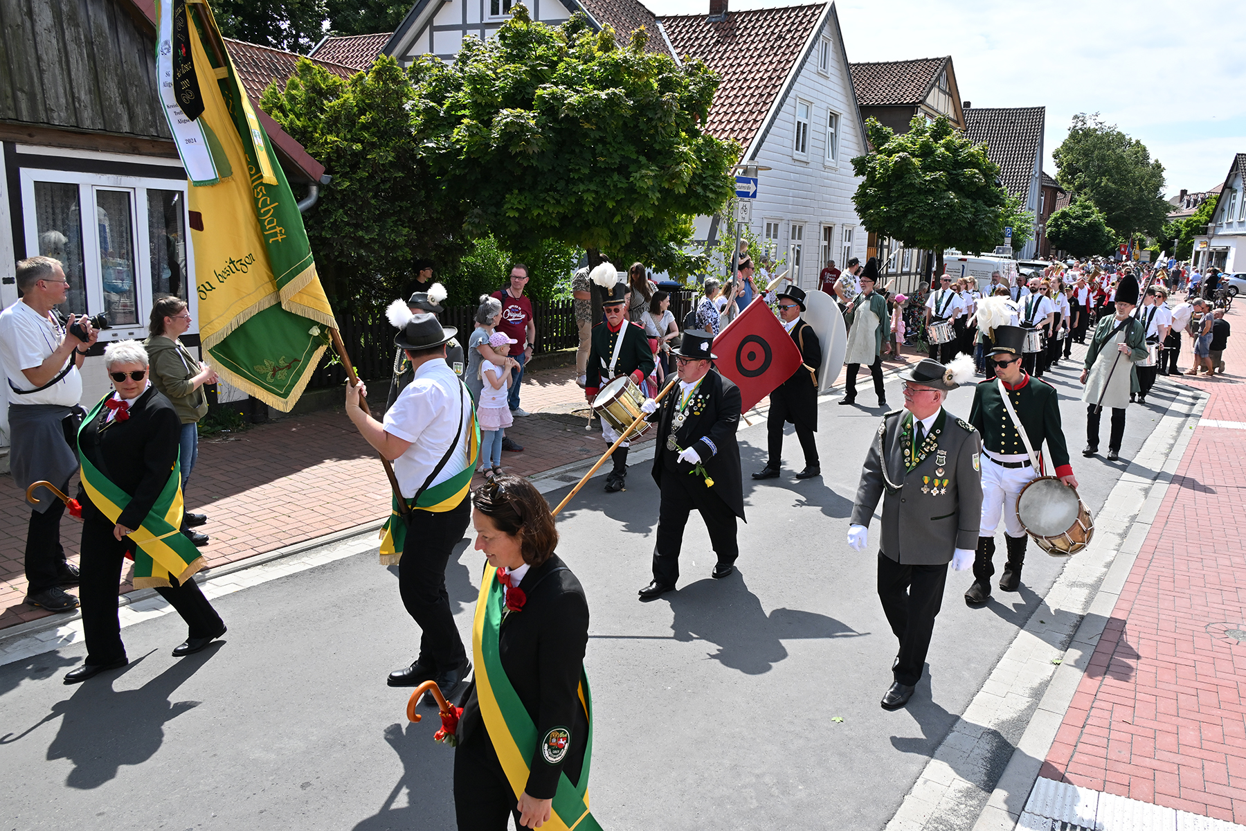 Eine besondere Ehre war es dem Schützen-Vorsitzenden Jörg Hoppe, dass auch wieder eine Abordnung vom befreundeten Schützenverein aus Calbe (Saale) nach Burgdorf gekommen war. "Es ist mir eine Freude, dass die Calbenser zu uns kommen und beim Umzug mitmachen", so Jörg Hoppe. Er freute sich zudem, dass das Schützenfest weiterhin gut angenommen werde. Rund 900 Gäste kamen zum gestrigen Festball ins Festzelt. Auch der Festplatz sei gut besucht gewesen. "Wir haben alles dafür getan, ein gelungenes Schützenfest zu feiern", unterstrich er.