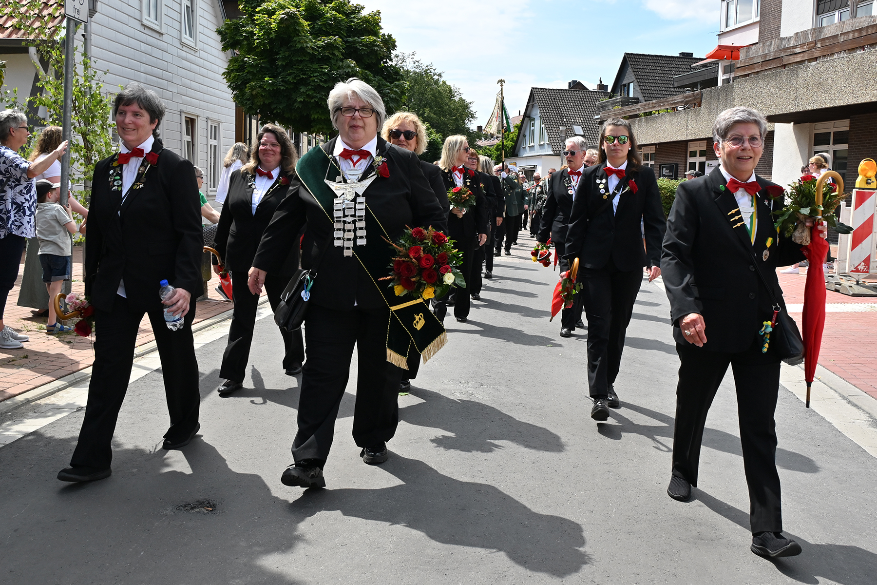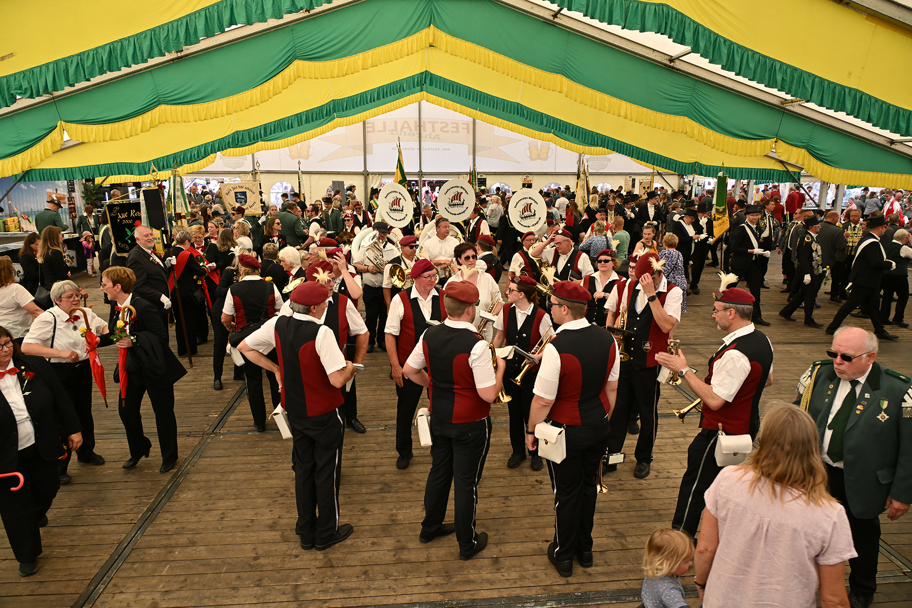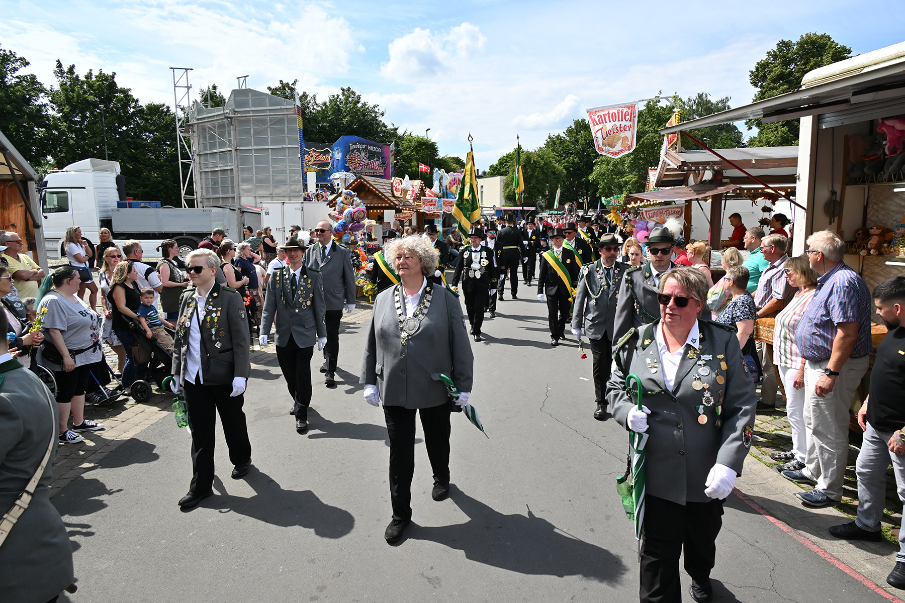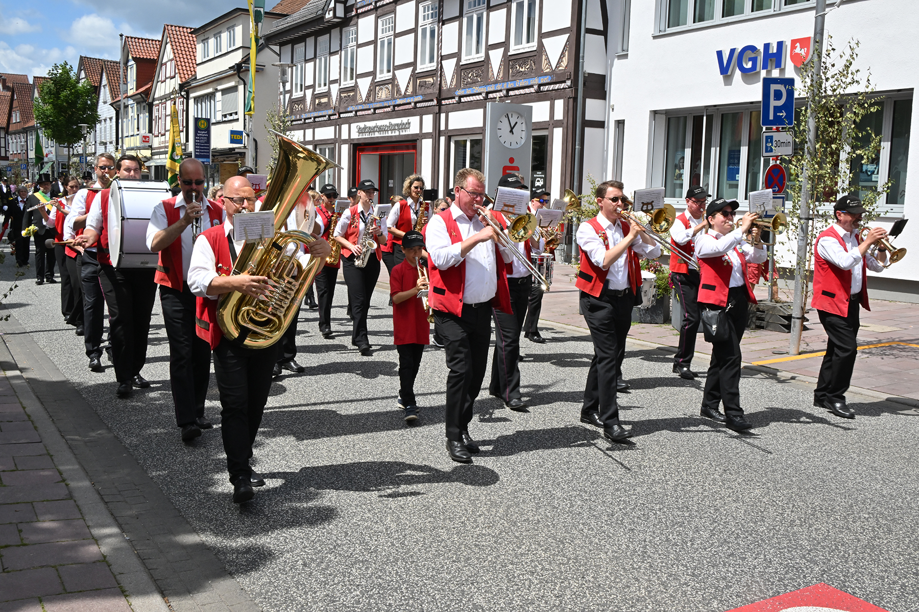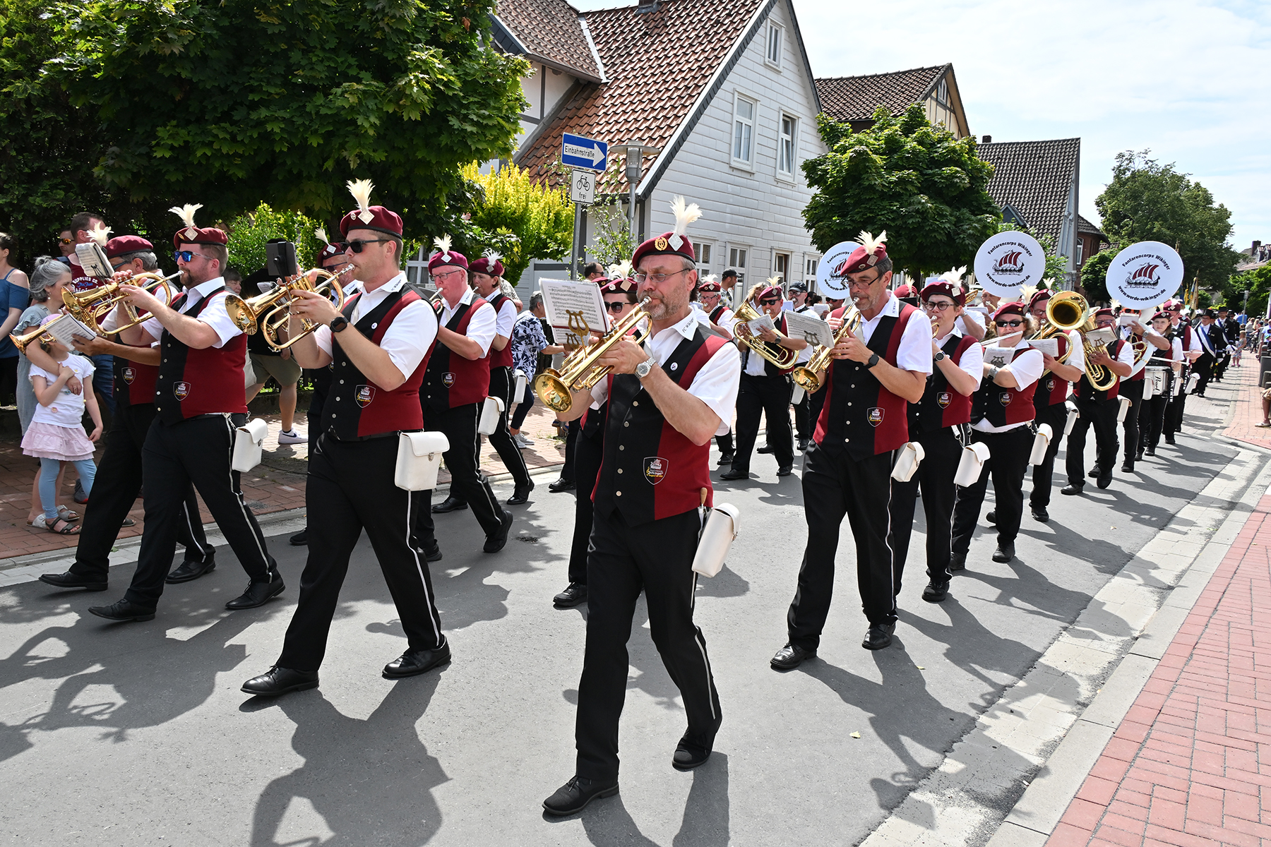 Eine besondere Ehre war es dem Schützen-Vorsitzenden Jörg Hoppe, dass auch wieder eine Abordnung vom befreundeten Schützenverein aus Calbe (Saale) nach Burgdorf gekommen war. "Es ist mir eine Freude, dass die Calbenser zu uns kommen und beim Umzug mitmachen", so Jörg Hoppe. Er freute sich zudem, dass das Schützenfest weiterhin gut angenommen werde. Rund 900 Gäste kamen zum gestrigen Festball ins Festzelt. Auch der Festplatz sei gut besucht gewesen. "Wir haben alles dafür getan, ein gelungenes Schützenfest zu feiern", unterstrich er.