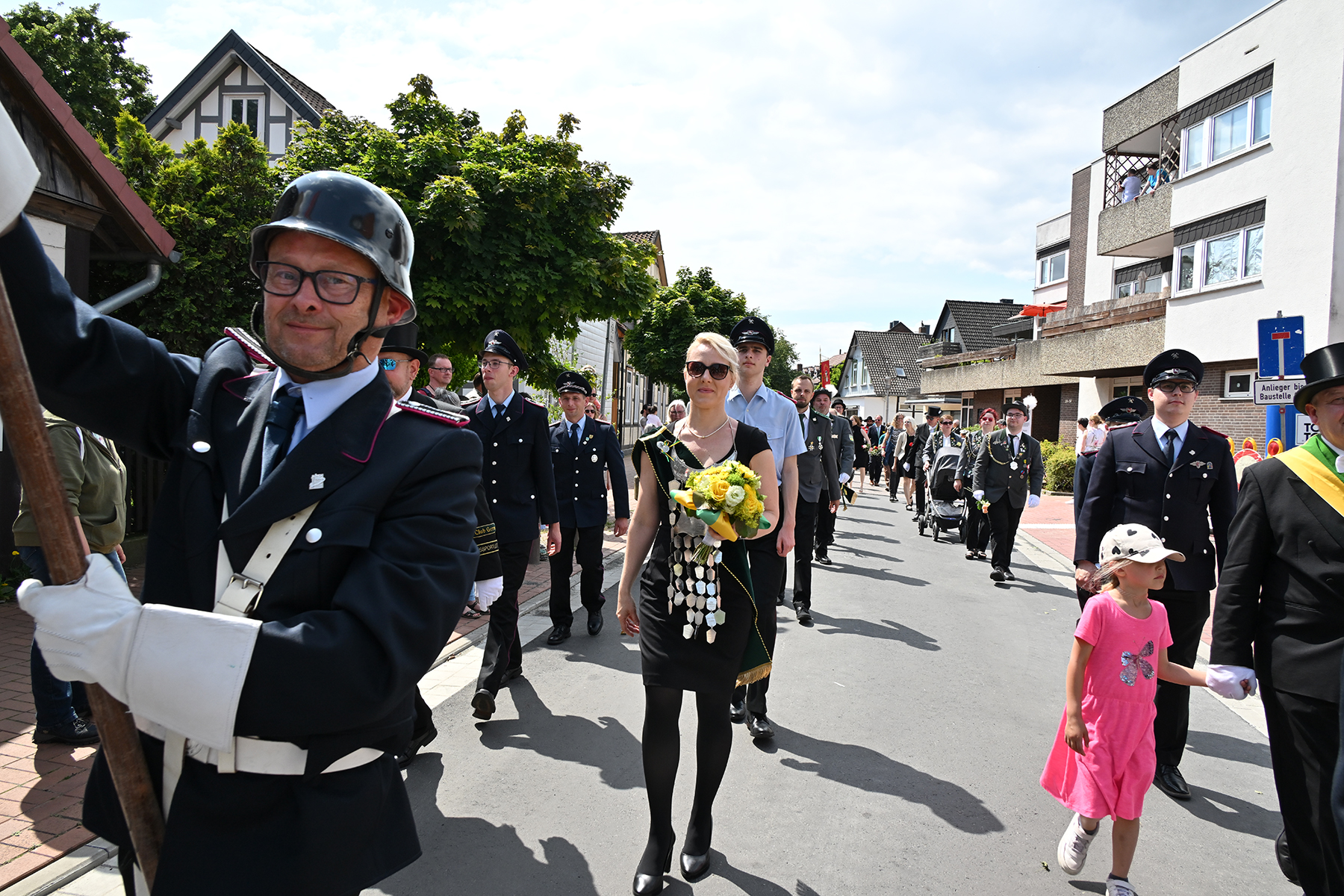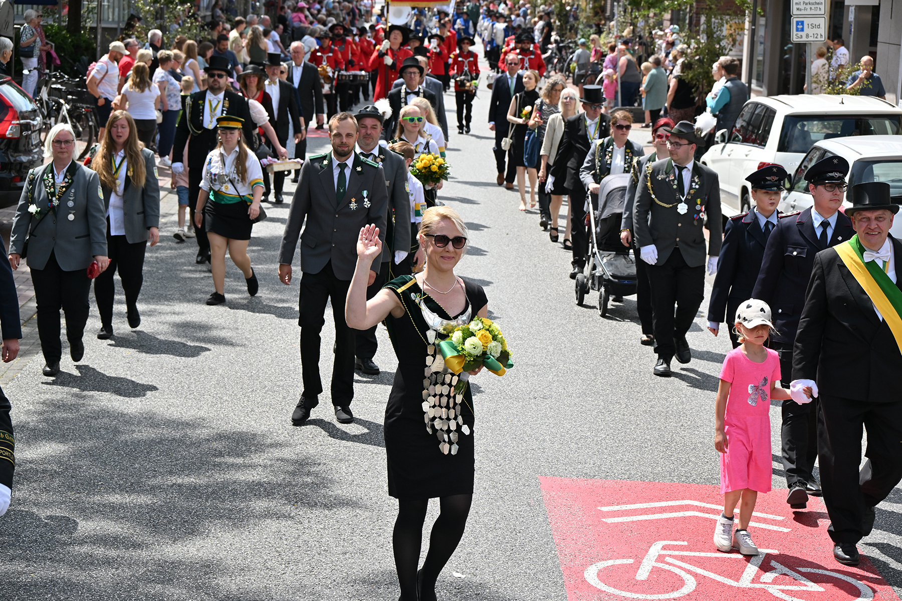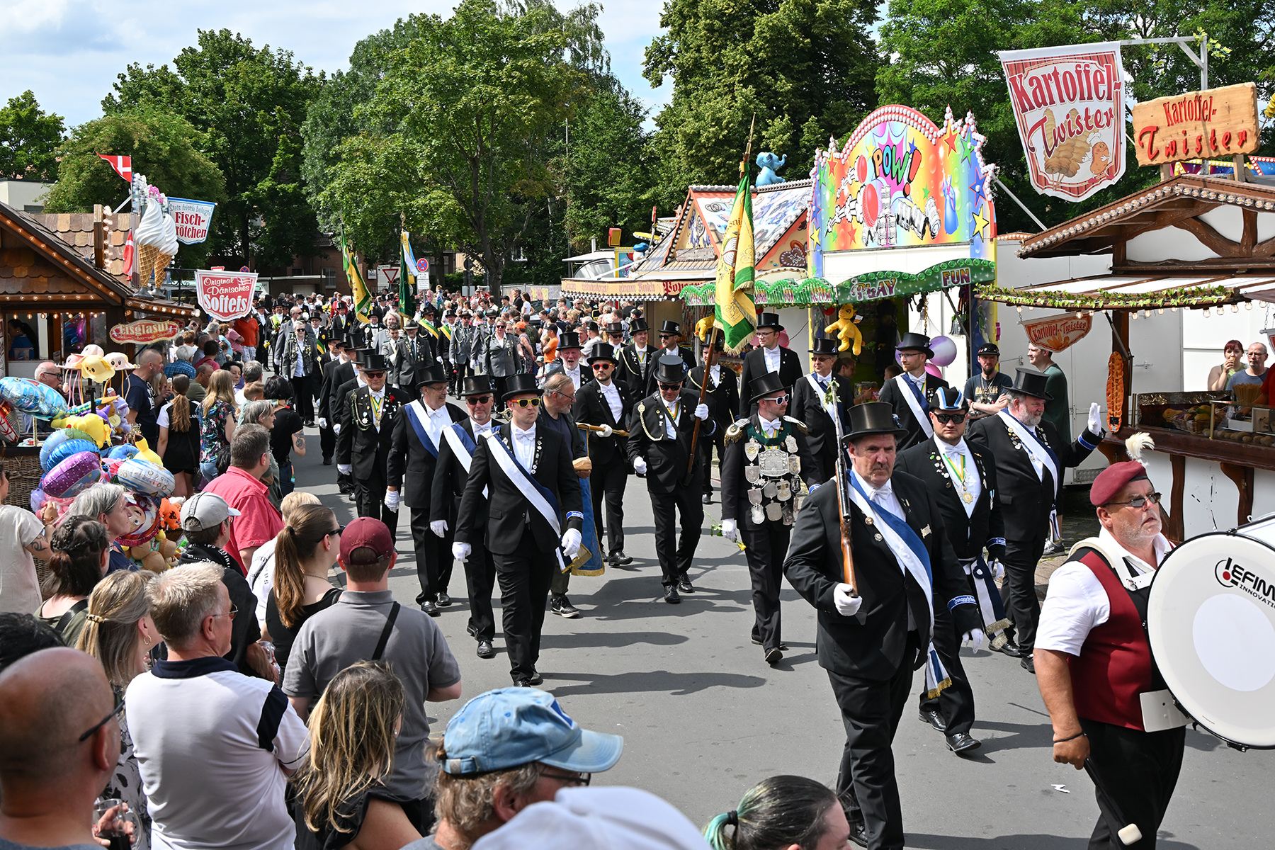 Am heutigen Sonntag stand dann der große Schützenumzug auf dem Programm. Verstärkt durch eine neunte Gruppe, die Brass Band der Bürgerschützen-Gesellschaft Lehrte, um ihre Kreiskönigin Christiane Blanke zu begleiten. Für musikalische Unterhaltung sorgten zudem der Spielmannszug der Burgdorfer Schützengesellschaft, das Fanfarenkorps Hannover, Fanfarencorps Vahrenheide, der Musikzug der Freiwilligen Feuerwehren Burgdorf und Hänigsen, das Fanfarencorps "Wikinger" Burgdorf, der Spielmannszug Schillerslage, der Musikzug des Schützen-Corps Lehrte sowie der Spielmannszug der Schützengesellschaft Ahlten. Zum Abschluss spielen nun am Nachmittag die Musiker-Gruppen noch einmal zum Platzkonzert im Festzelt auf und unterhalten die zahlreichen Gäste. Auch auf dem Festplatz herrschte nach dem Umzug großes Treiben. Das sonnige Wetter trug sein Übriges dazu bei, dass der Festplatz sehr gut besucht war.
