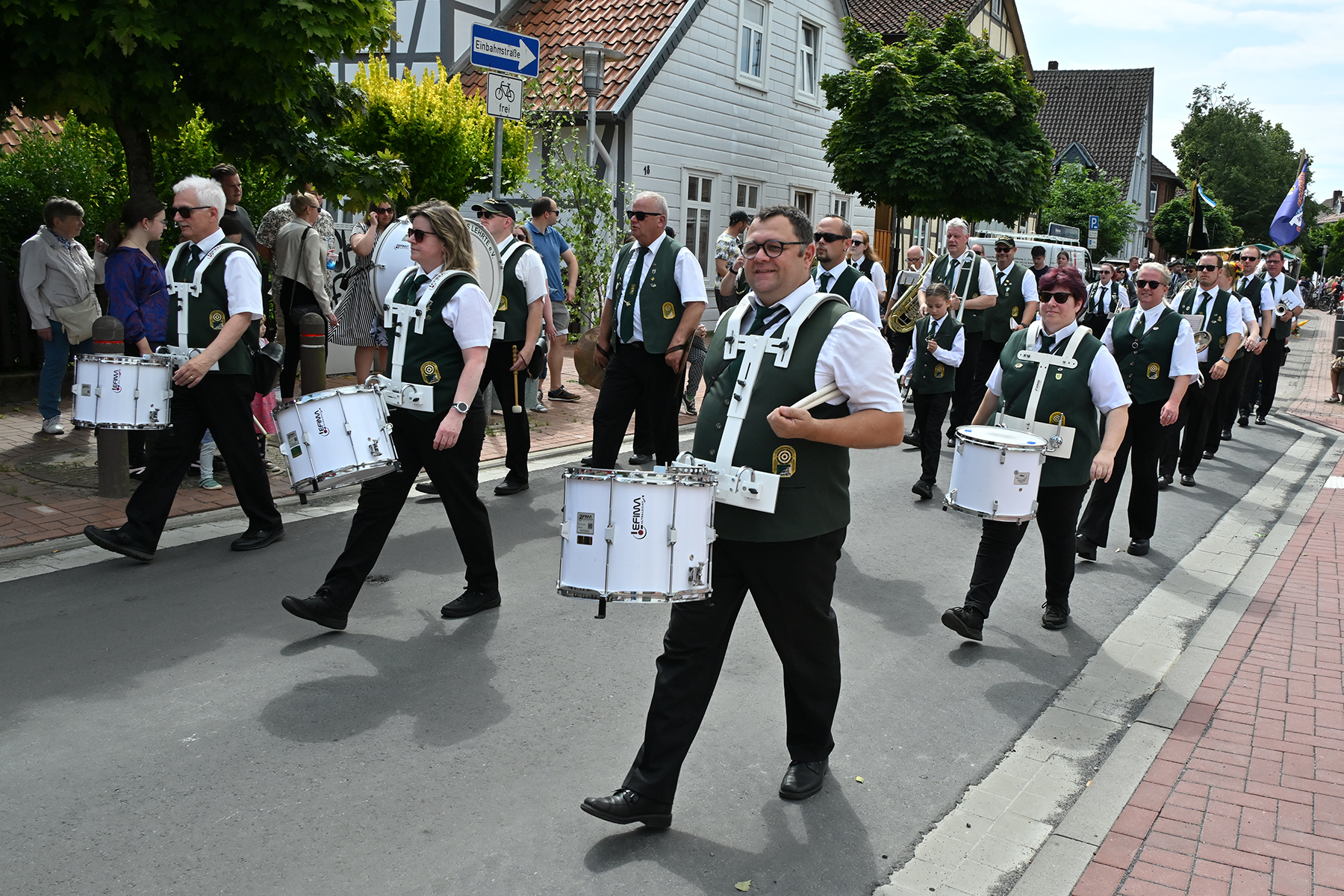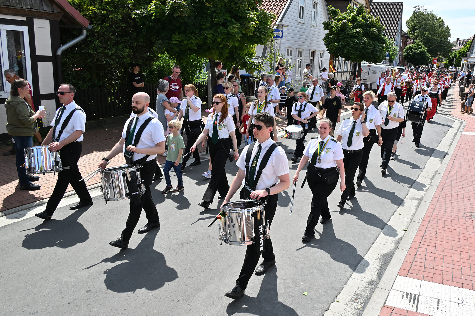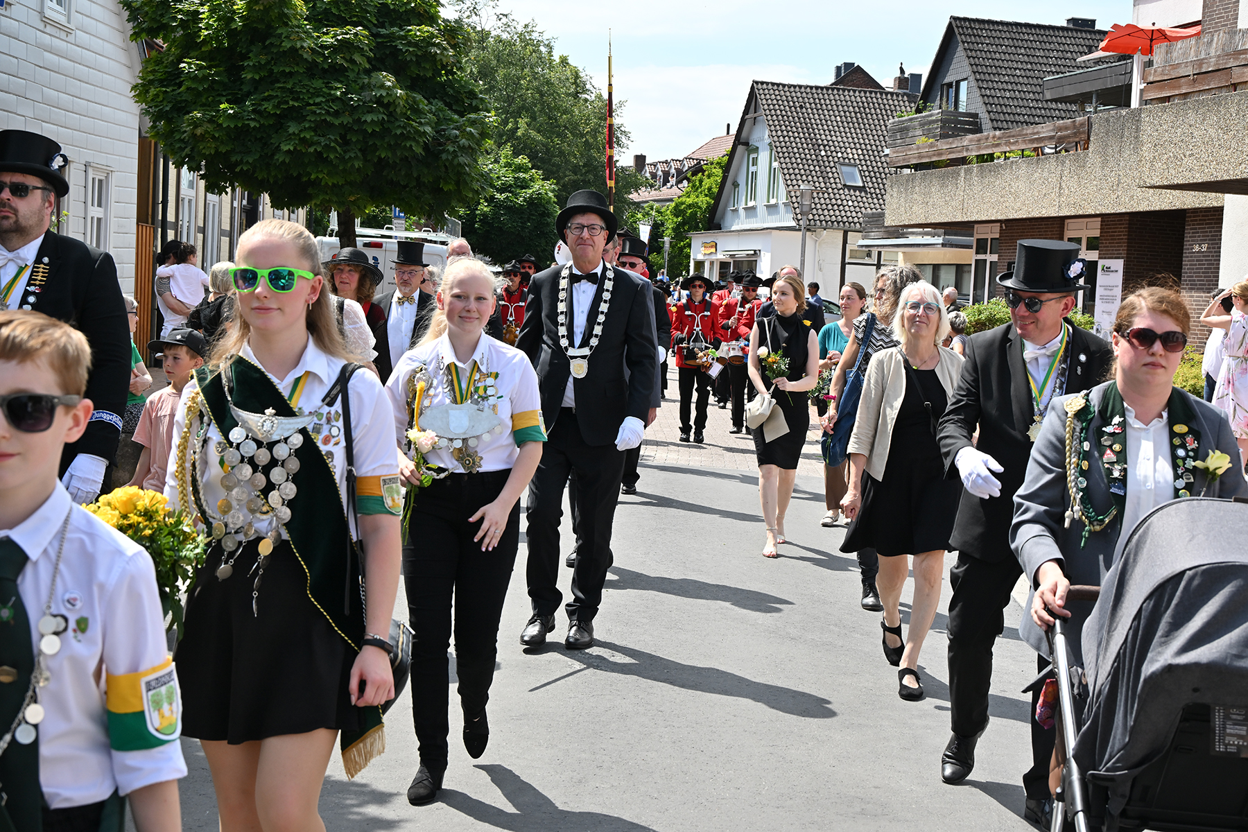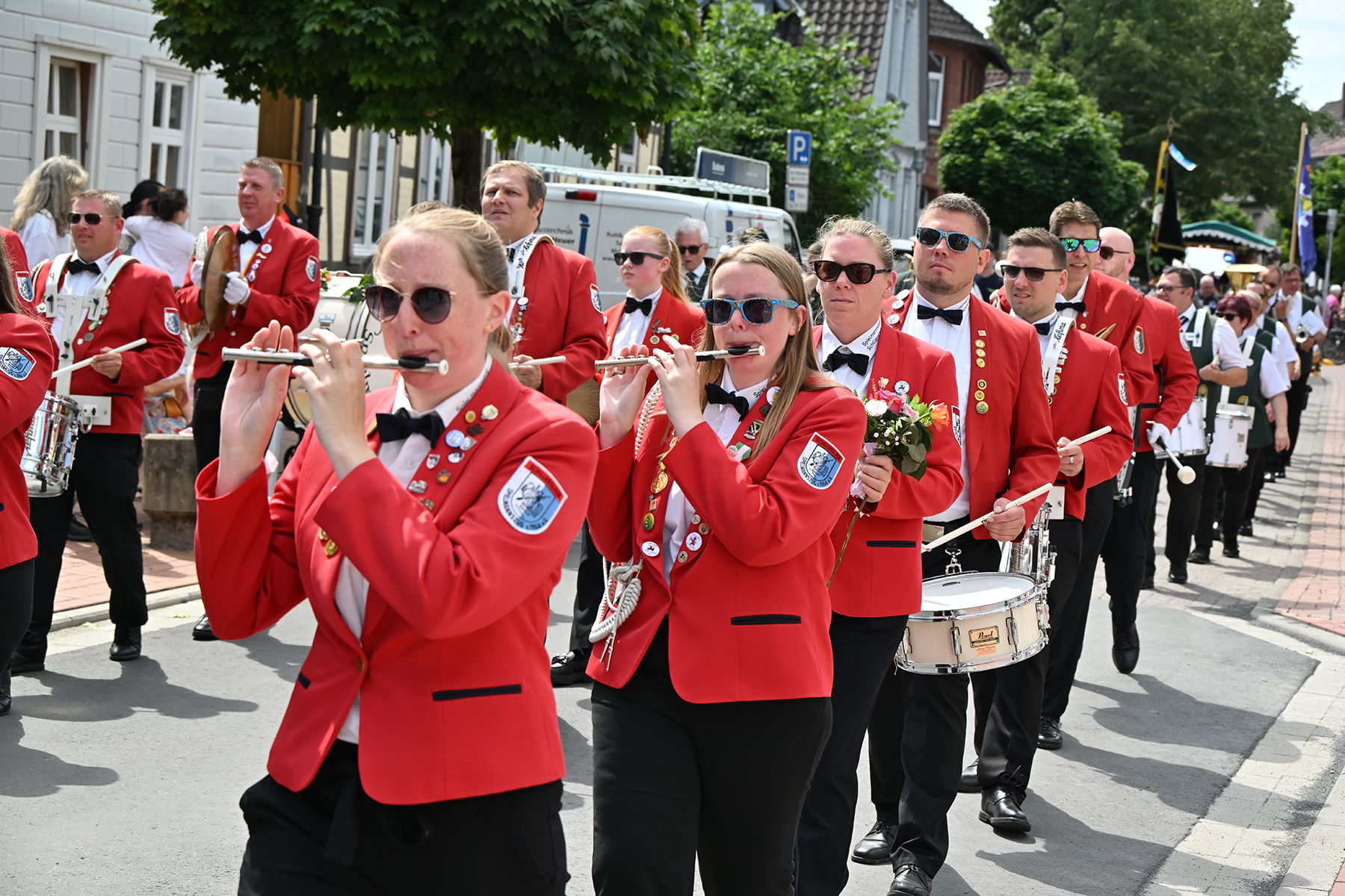 Am heutigen Sonntag stand dann der große Schützenumzug auf dem Programm. Verstärkt durch eine neunte Gruppe, die Brass Band der Bürgerschützen-Gesellschaft Lehrte, um ihre Kreiskönigin Christiane Blanke zu begleiten. Für musikalische Unterhaltung sorgten zudem der Spielmannszug der Burgdorfer Schützengesellschaft, das Fanfarenkorps Hannover, Fanfarencorps Vahrenheide, der Musikzug der Freiwilligen Feuerwehren Burgdorf und Hänigsen, das Fanfarencorps "Wikinger" Burgdorf, der Spielmannszug Schillerslage, der Musikzug des Schützen-Corps Lehrte sowie der Spielmannszug der Schützengesellschaft Ahlten. Zum Abschluss spielen nun am Nachmittag die Musiker-Gruppen noch einmal zum Platzkonzert im Festzelt auf und unterhalten die zahlreichen Gäste. Auch auf dem Festplatz herrschte nach dem Umzug großes Treiben. Das sonnige Wetter trug sein Übriges dazu bei, dass der Festplatz sehr gut besucht war.