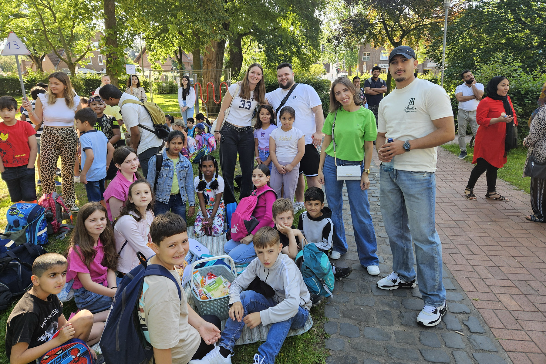 Das alljährliche Willkommens-Picknick fand im Bürgermeister-Schuster-Park mit der Begrüßung durch BMGH-Leiterin Ursula Wieker statt. Erstes Kennenlernen oder ein freudiges Wiedersehen unter den Kindern und Dozenten fanden gleichermaßen statt. Die Sommerschule verbindet stets theoretische Lernanteile mit praktischen Exkursionen und Anschauungsmaterial. Beim Thema Mobilität beschäftigen sich die Kinder mit folgenden Fragen: "Wie bewege ich mich fort und was braucht es dazü Was gibt es für Fortbewegungsmittel? Wie bewege ich mich sicher im Straßenverkehr? Welche Voraussetzungen gibt es für Teilhabe an Mobilität?"