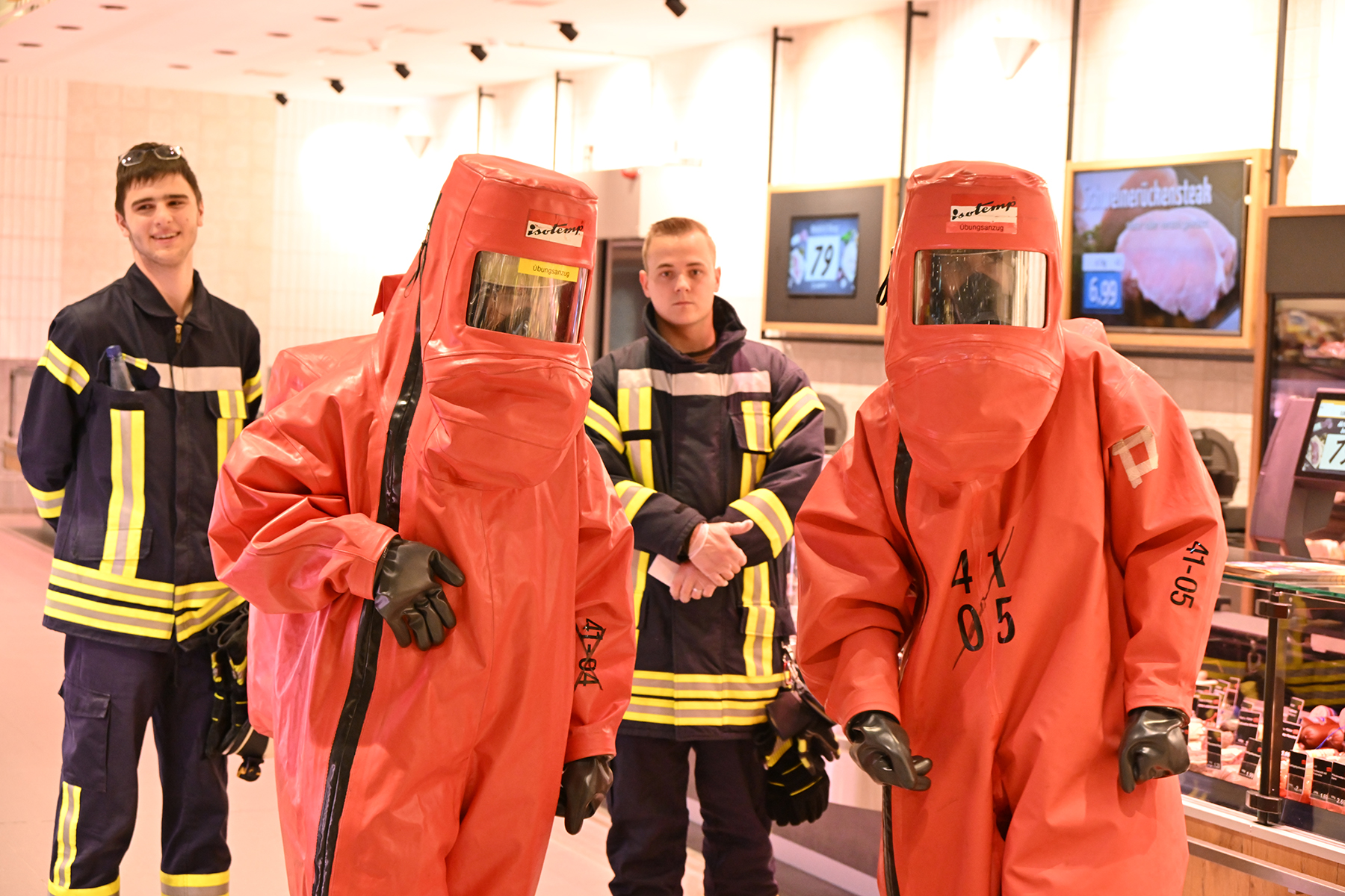 Da staunten die Kunden des E-Centers im Burgdorfer Ostlandring nicht schlecht: Einsatzkräfte der Stadtfeuerwehr Burgdorf nutzten den Markt am gestrigen Mittwoch, 3. Juli 2024, für einen besonderen Ausbildungsdienst..