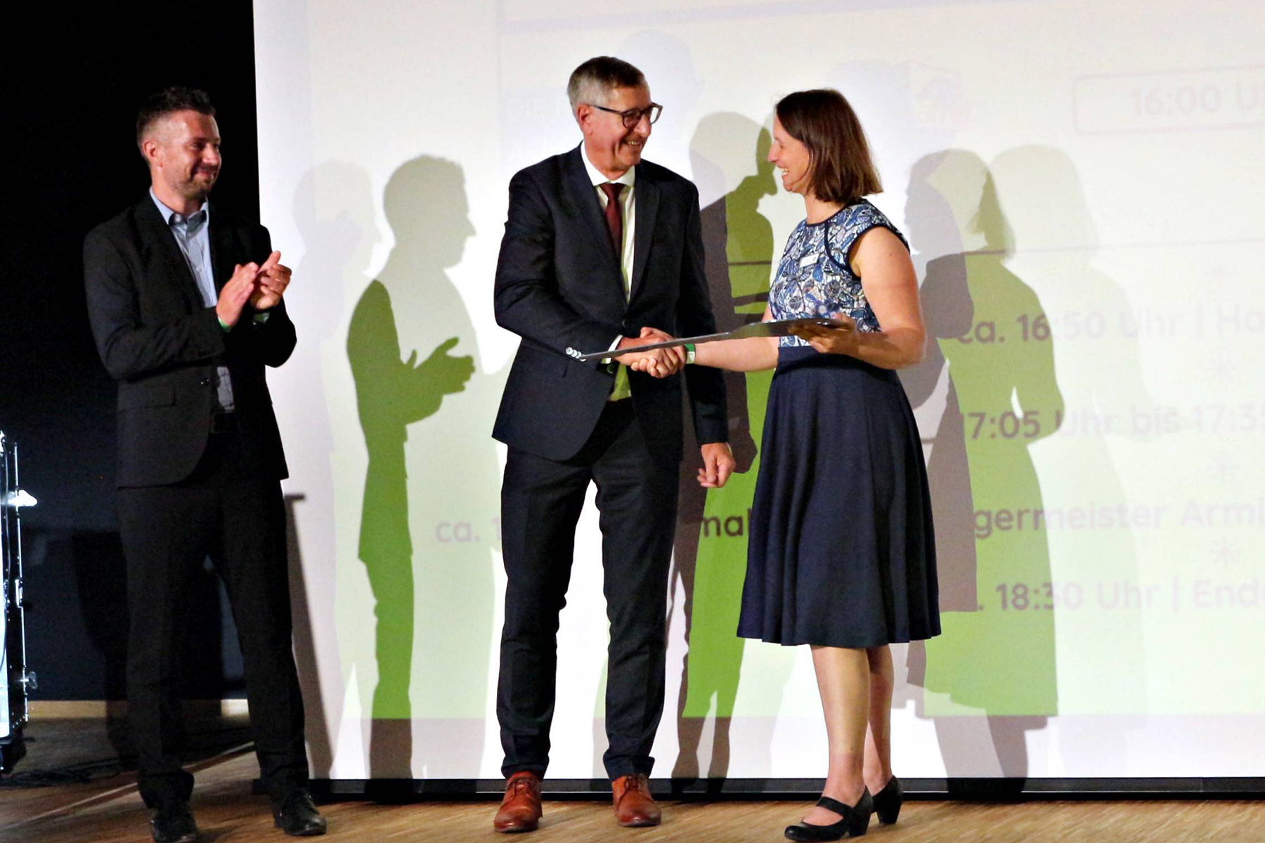 "Das ist für uns ein ganz besonderer Tag, der mit der Einweihung auch das Wirken von Rudolf Bembenneck würdigt", sagte Schulleiterin Saskia van Waveren, die wenige Momente später von Armin Pollehn den symbolischen Schlüssel für die RBG überreicht bekam.
