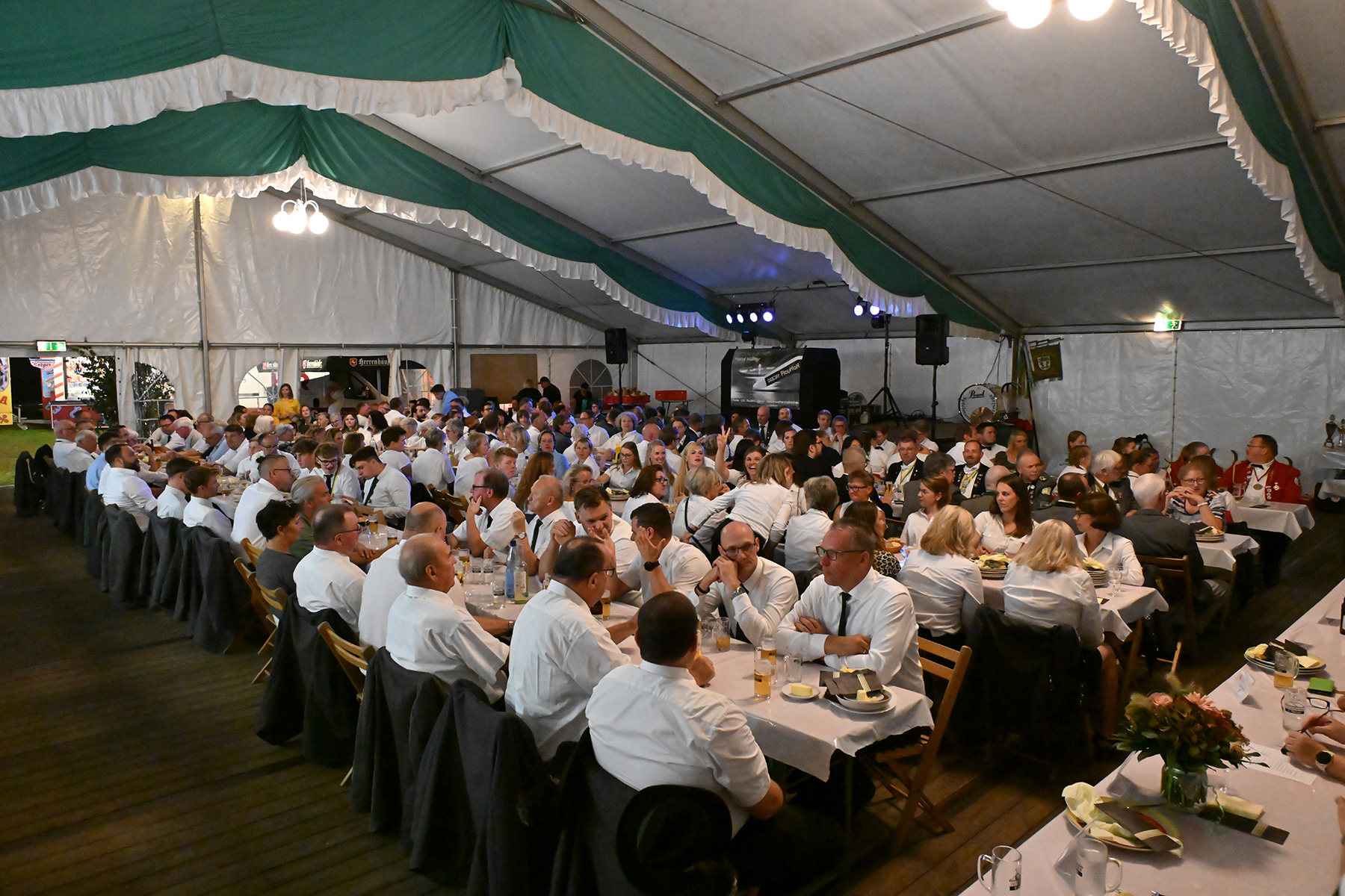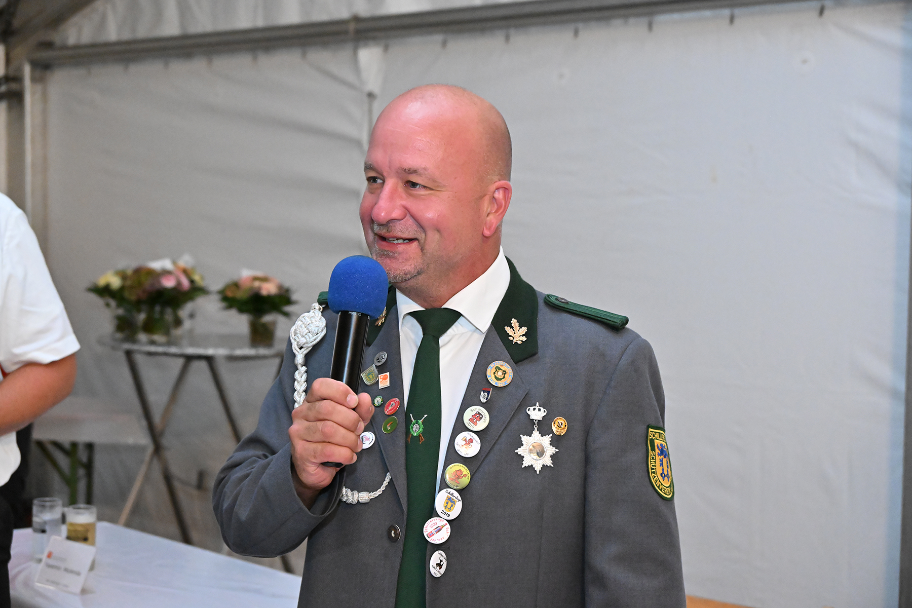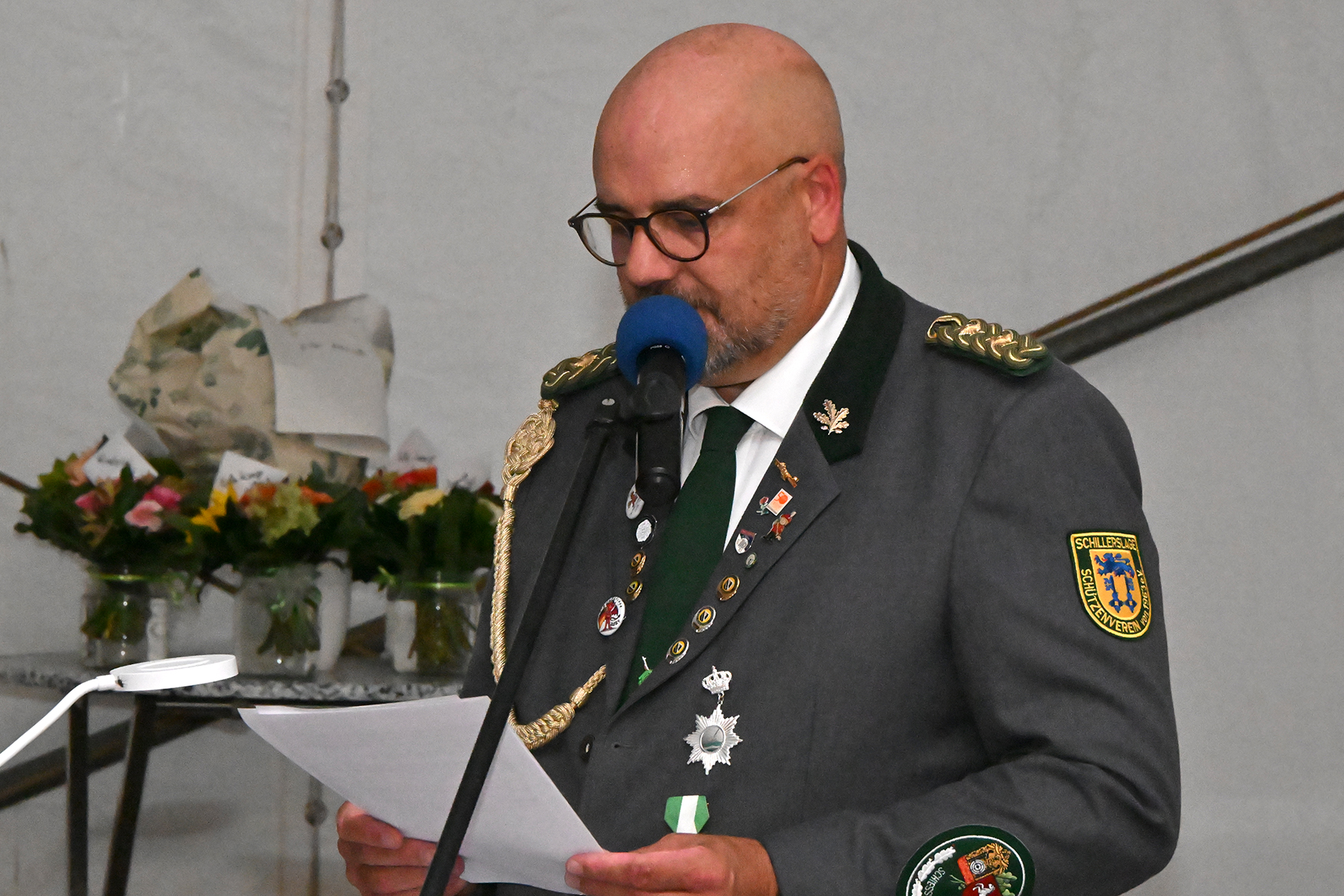 210 Gäste konnte der 1, Vorsitzende des SSV Schillerslage, Matthias Huth, zum Festkommers am heutigen Freitagabend, 23. August 2024, im Festzelt begrüßen, darunter Burgdords Erste Stadträtin Silke Vierke, den Ortsbürgermeister Cord Reißer, den Präsidenten des Kreisschützenverbandes (KSV) Burgdorf, Werner Bösche, Ehrenmitglied Manfred Meyer, den Vorsitzenden des VVV Burgdorf, Karl-Ludwig Schrader, sowie Abordnungen der befreundeten Schützenvereine aus Burgdorf, Otze, Ehlershausen, Sorgensen, Hülptingsen, Engensen und Obershagen. Ebenfalls anwesend waren der Schützen-Senator Urs-Uwe Simanowski, die Feuerwehr unter der Leitung von Ortsbrandmeister Timo Scheffler, der Förderverein der Feuerwehr, die Jagdpächter sowie Mitglieder der SSV-Segelsparte. Ein besonderer Dank ging an die Mitglieder der Ortsfeuerwehr, die auch in diesem Jahr wieder für die Absicherung der Festumzüge sorgen.