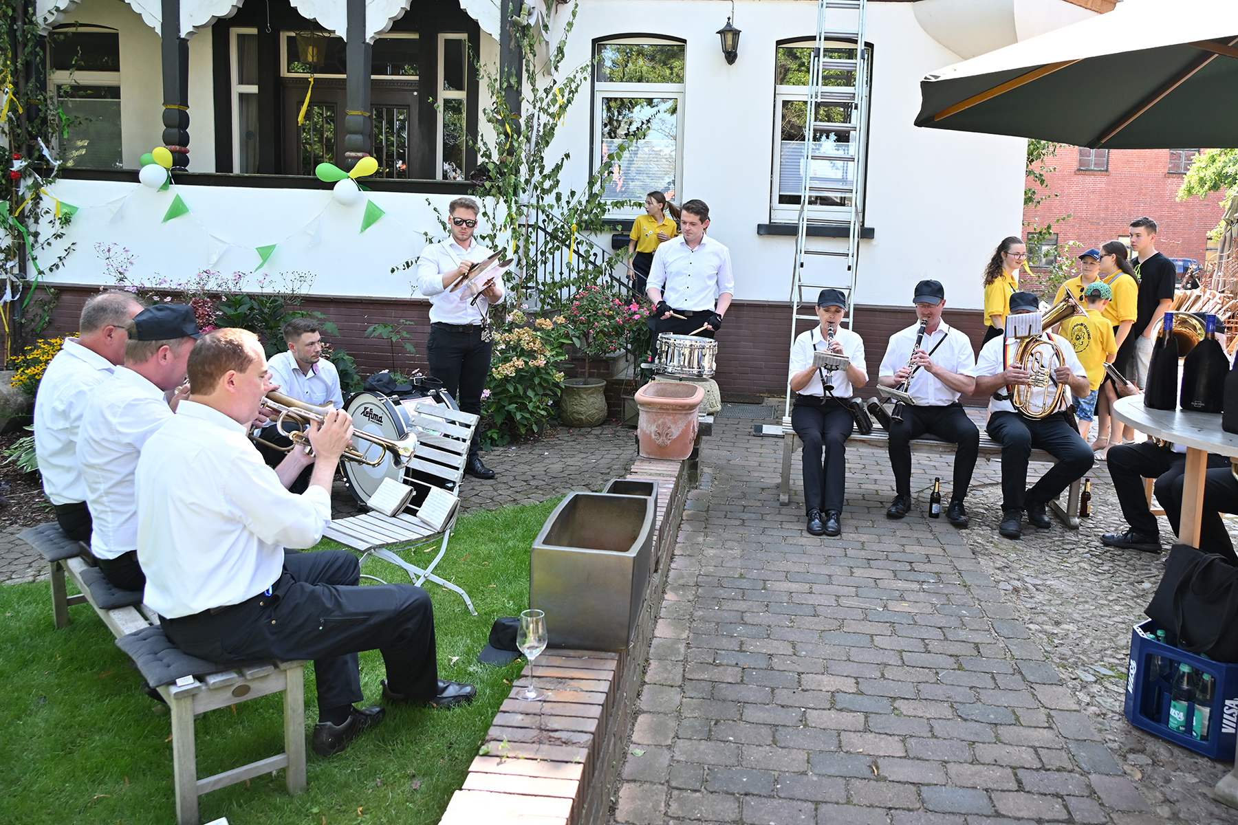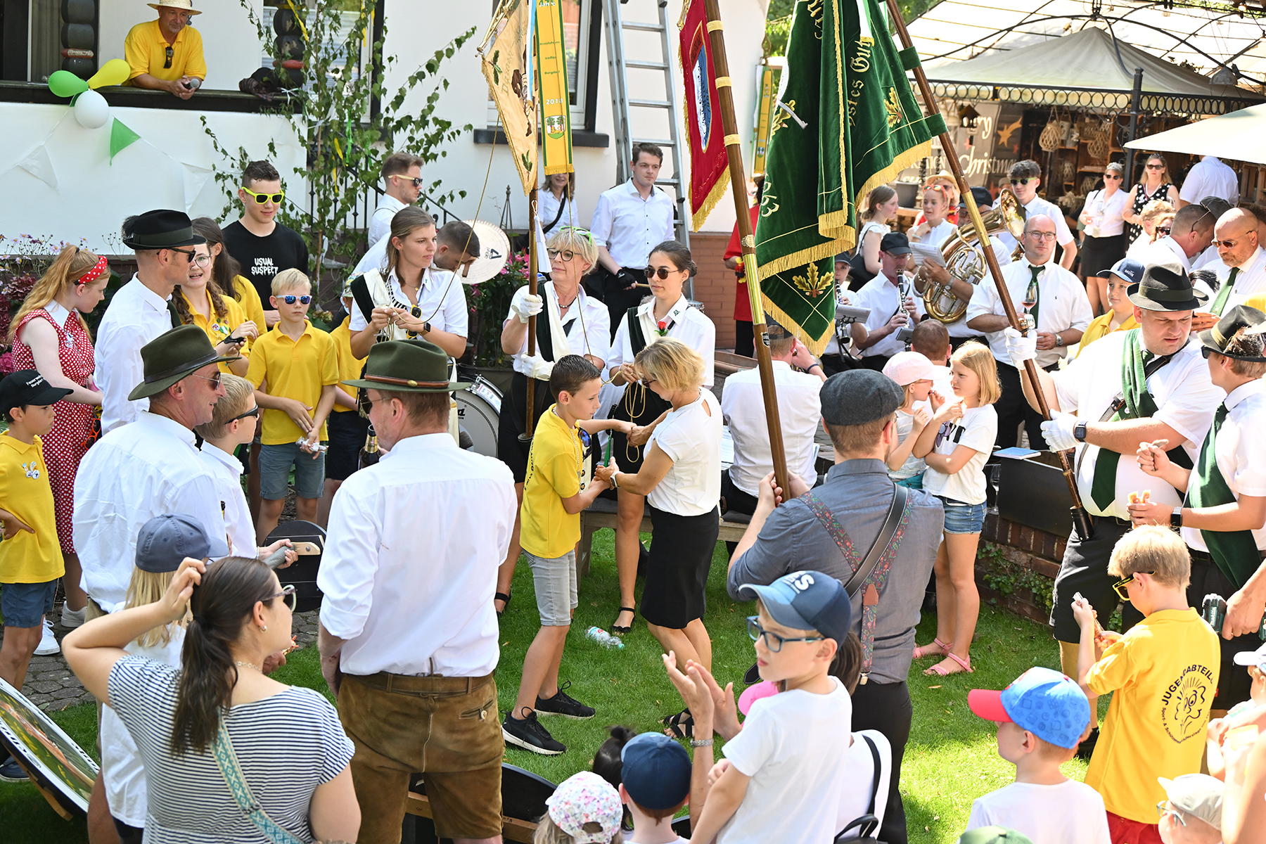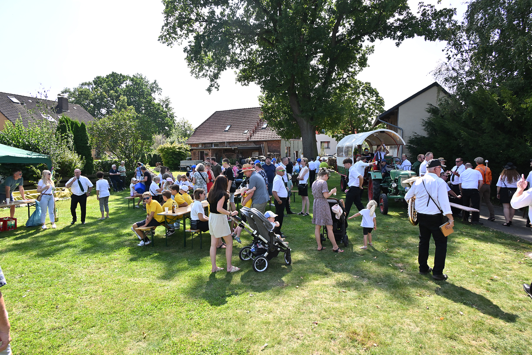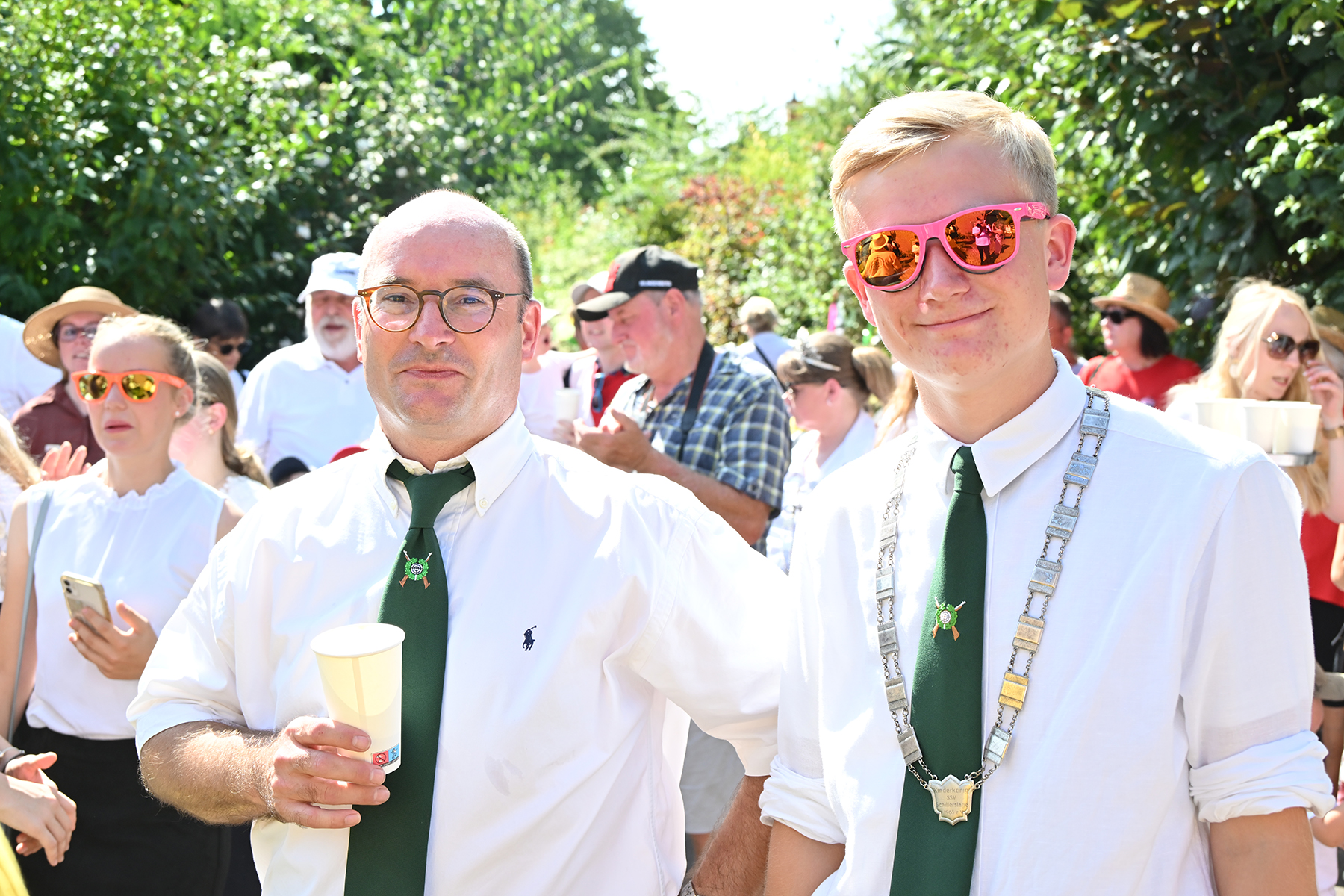 Schon am ersten Schützenfesttag, am Freitag, 23. August 2024, hatte der Vorsitzende des SSV Schillerslage, Matthias Huth, für den gestrigen Sonnabend eine Marscherleichterung ausgesprochen, denn "es wird kein schönes Wetter geben", so der 1. Vorsitzende beim Festkommers. 31 Grad Celsius waren vorhergesagt, und die Vorhersage sollte sich gestern dann auch bewahrheiten. So kamen die Schützen ohne Jacken und teilweise in kurzen Hosen zum Festumzug anlässlich des Scheibenaufhängens in Schillerslage.