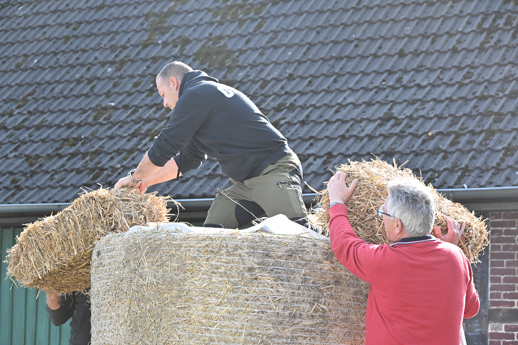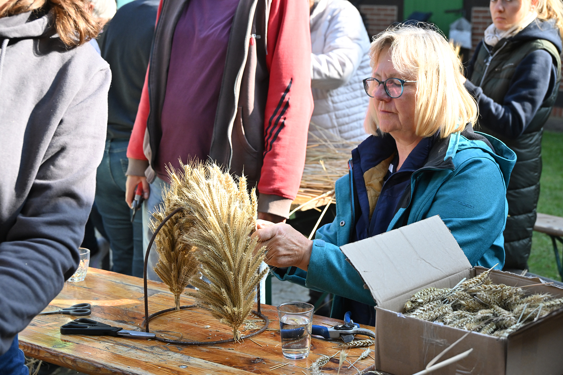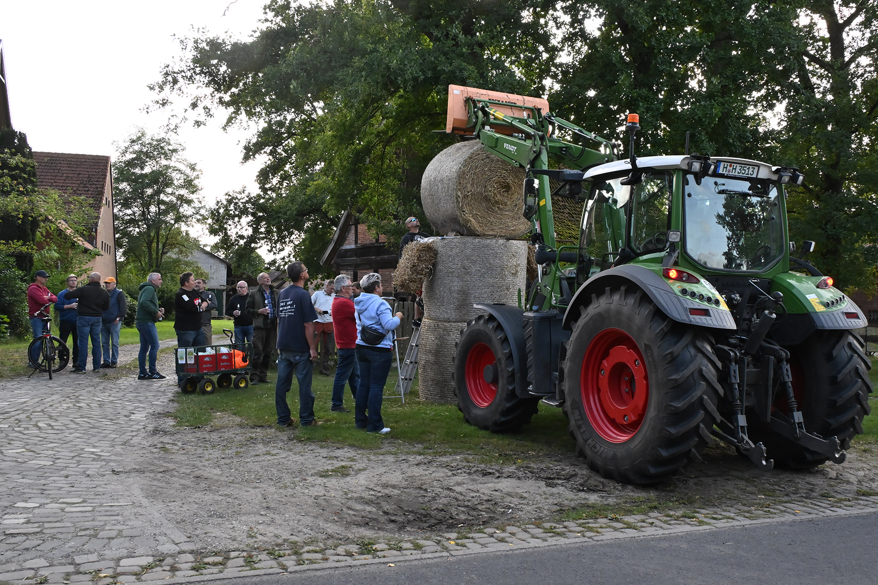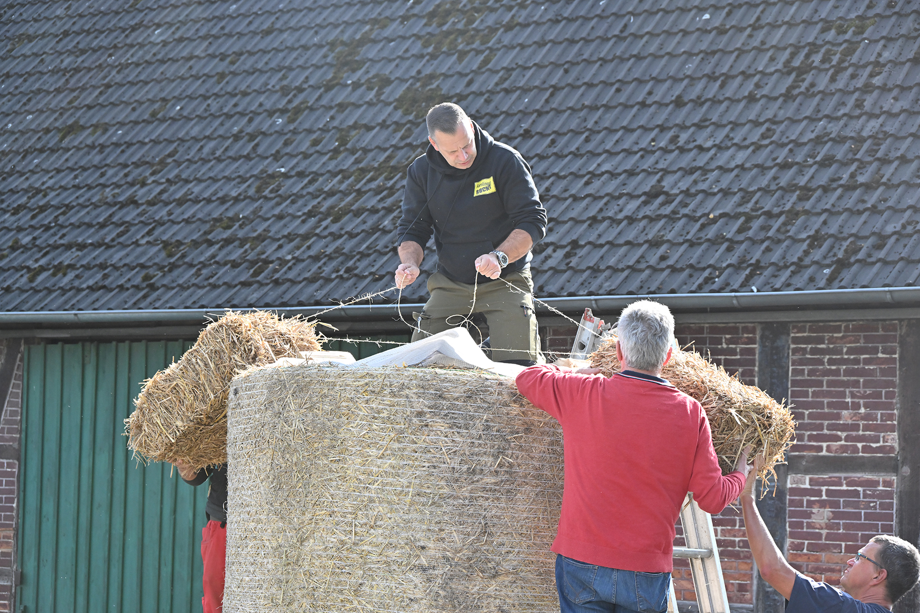 Nach rund zweieinhalb Stunden waren gestern dann die Erntepuppen aufgestellt. Auch die Erntekronen waren fertiggestellt, sodass der arbeitsreiche und erfolgreiche Tag mit einem gemeinsamen Grillen auf dem Hof von Andreas und Karin Buchholz gefeiert werden konnte.