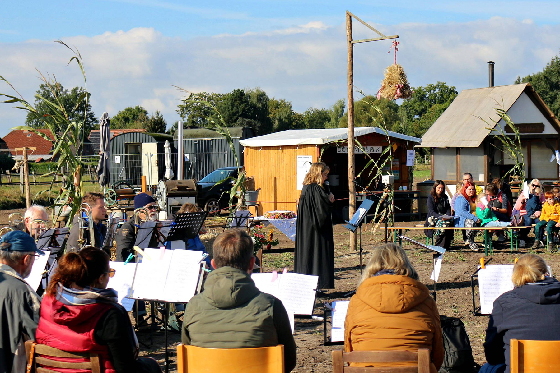 Im übertragenden Sinn lehnte sich auch der Inhalt des Gottesdienstes von Pankratius-Pastorin Friederike Grote dem Dreschefest-Motto an, der musikalisch vom Posaunenchor unter der Leitung von Kirchenkreiskantor Martin Burzeya-Wille begleitet wurde.