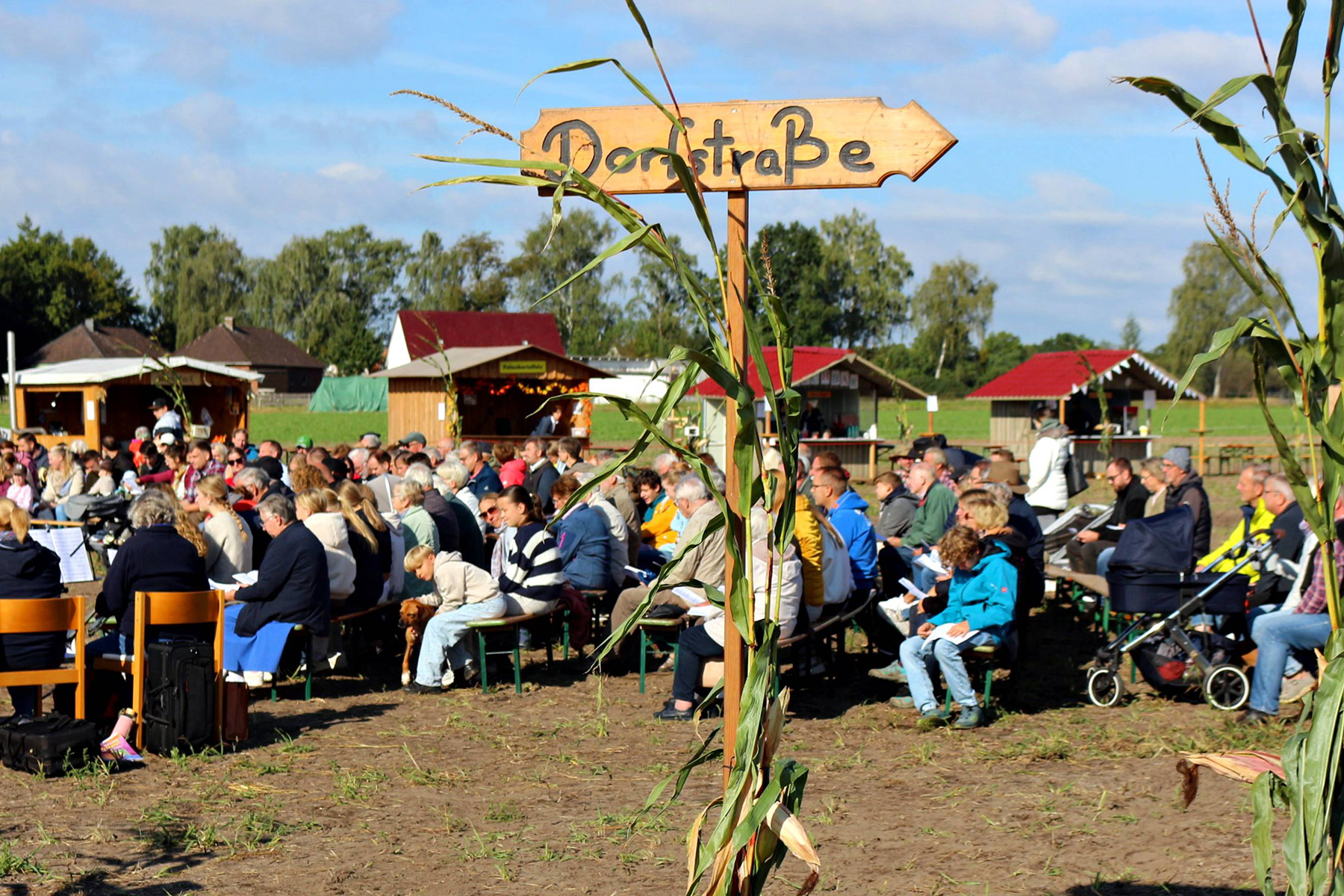 Eine Strohburg und das Ponyreiten sowie Kutsch- und Treckerfahrten waren die übrigen Attraktionen (nicht nur) für Kinder. An den Buden und Häuschen mit Milchbar und Muckefucktheke, Quarkkartoffel- und Pufferbude oder an der Bier- und Weinschänke konnten Hunger und Durst gestillt werden.