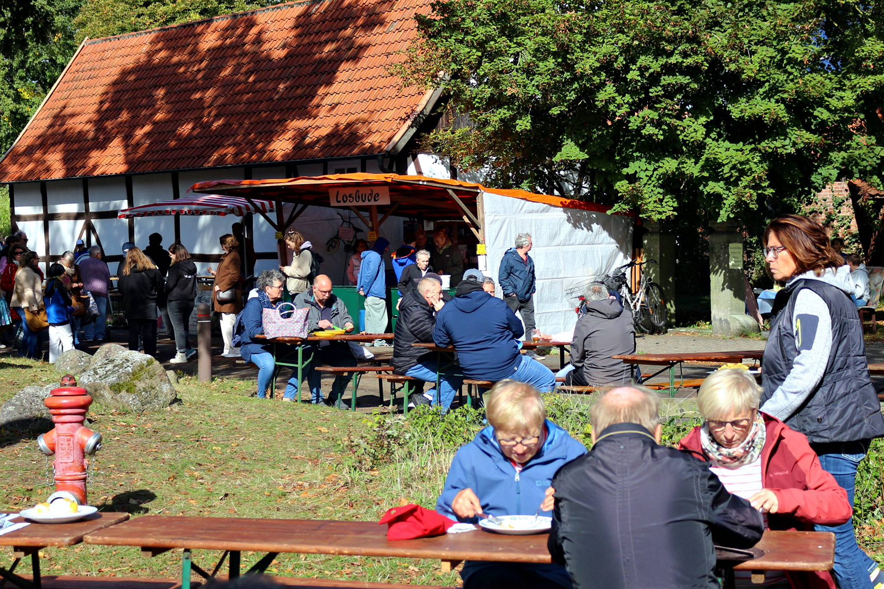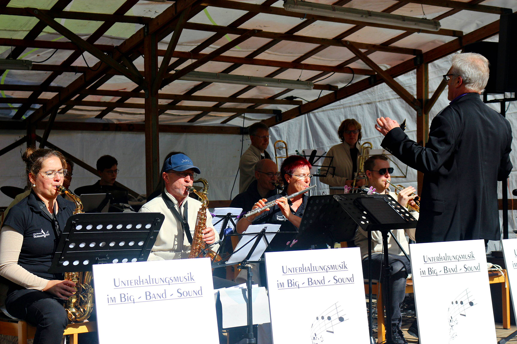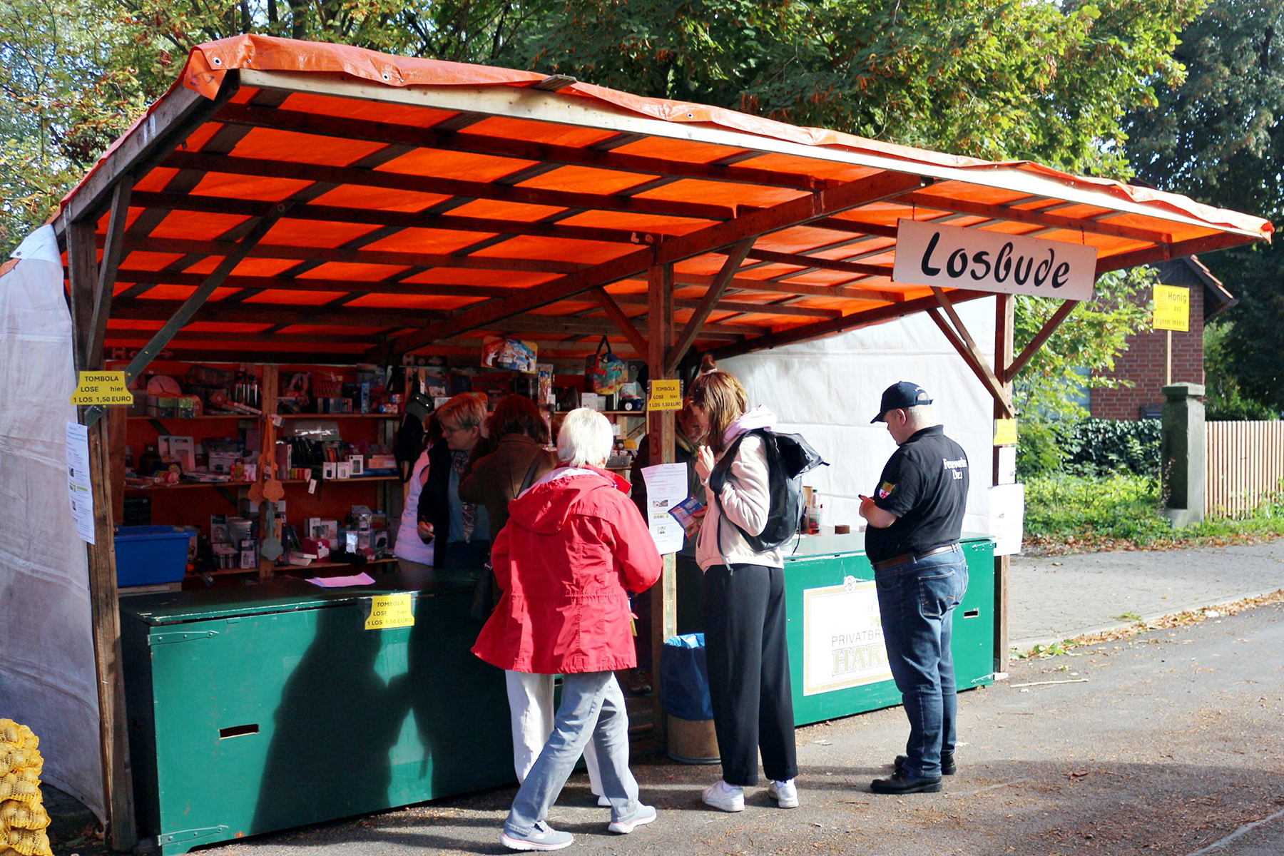 Wie üblich wurde der Kartoffelmarkt mit dem Anbringen der geflochtenen Erntekrone und einem Tusch vom Orchester Berggarten aus Otternhagen offiziell eröffnet, nachdem Hans-Jörg Fischer die Besucher willkommen geheißen hatte. Und schon wenige Augenblicke später hatte sich an der Ausgabe eine lange Schlange von Kennern der legendären Otzer Kartoffelpuffer gebildet. Aber auch andere frisch zubereitete Knollengerichte hatten ihre Feinschmecker.