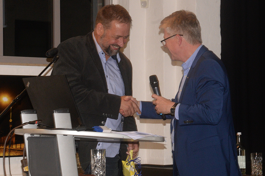 Björn Rohloff, Präsident des Rotary-Clubs Lehrte-Burgdorfer Land, überreichte Dr. Holger Hennies nach dessen Vortrag Honig aus Röddensen, und er bedanke sich für diesen informativen Abend. Zu Beginn dieser Veranstaltung freute sich Rohloff besonders darüber, dass 16 Mitglieder des Lion-Clubs Lehrte-Sehnde gekommen sind und darüber, dass es gelungen ist, Dr. Holger Hennies zu verpflichten.