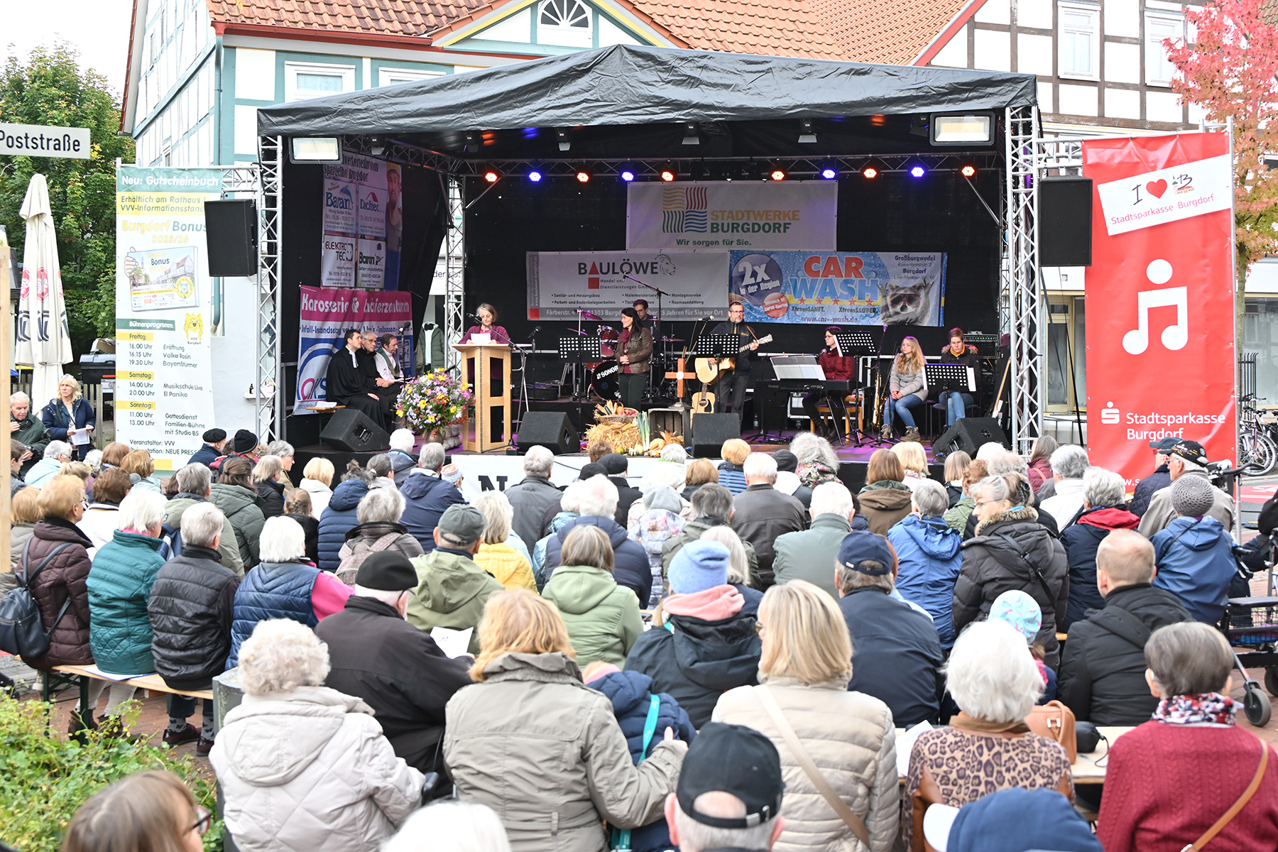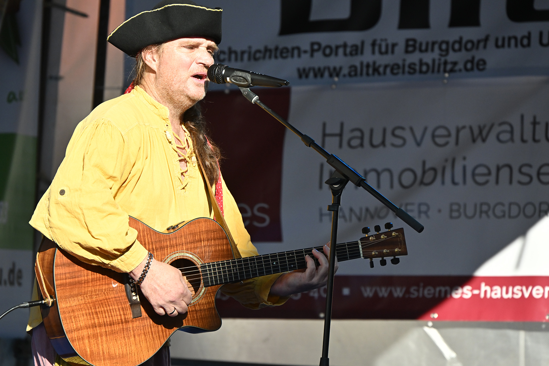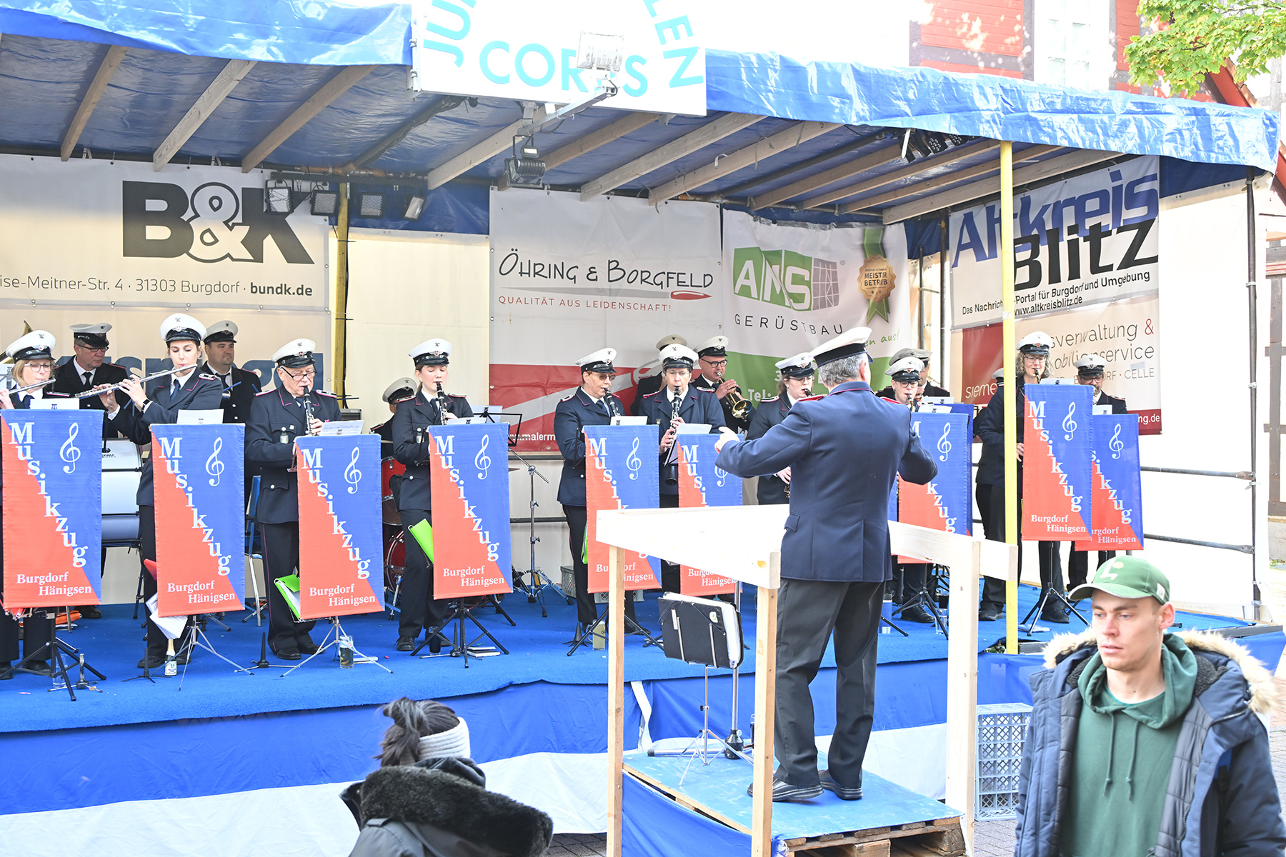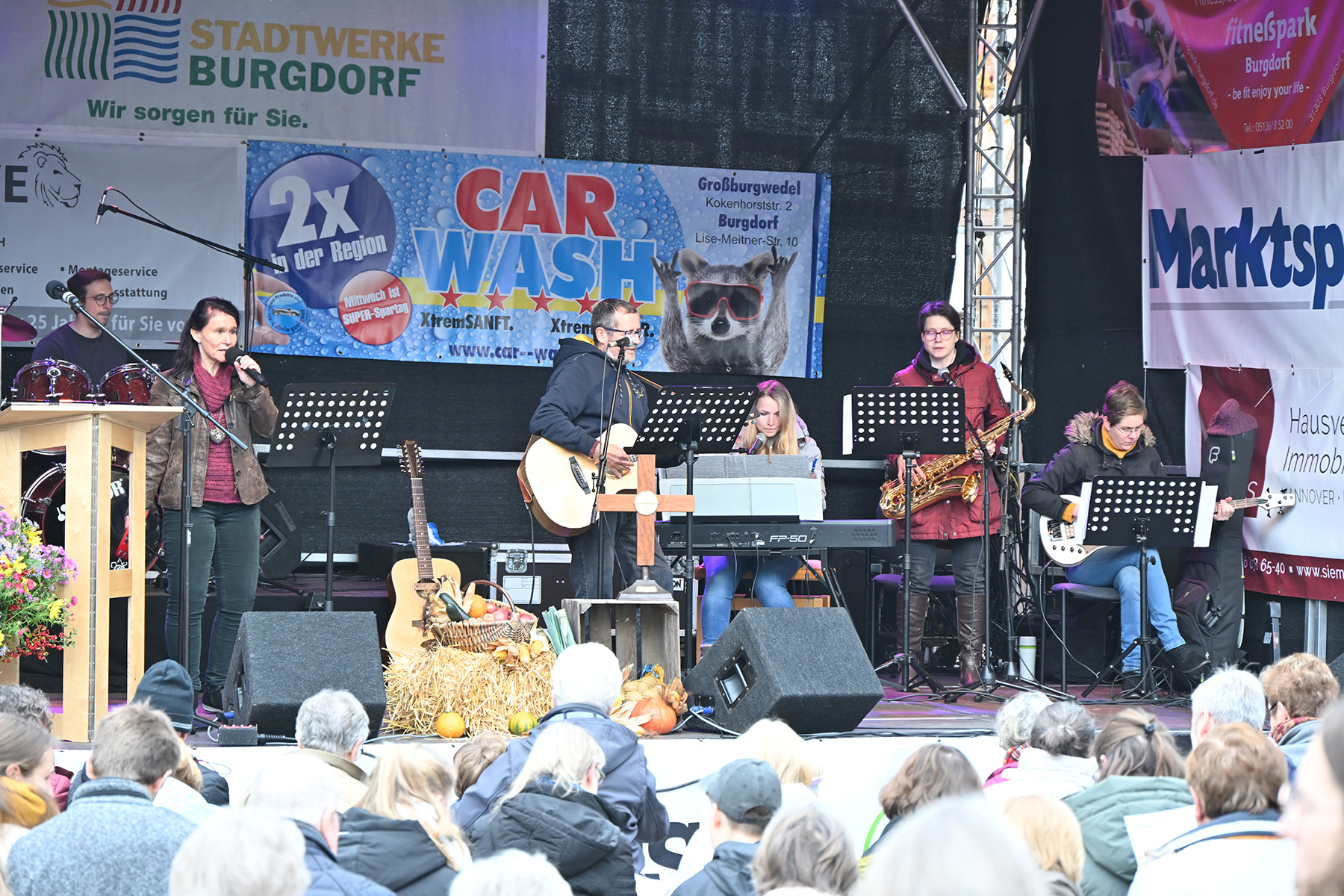 Der Tag begann um 11 Uhr mit einem ökumenischen Open-Air-Gottesdienst auf der Bühne in der Poststraße. Dort sorgte auch das Trio "Dick und Durstig" für musikalische Unterhaltung. Beim Junggesellencorps hinter der Stadtsparkasse stand der Frühschoppen auf dem Programm, bei dem der Musikzug der Freiwilligen Feuerwehren Burgdorf und Hänigsen aufspielte. Danach unterhielt Matthias Lück die jüngsten Besucher mit einer Kinderstunde.