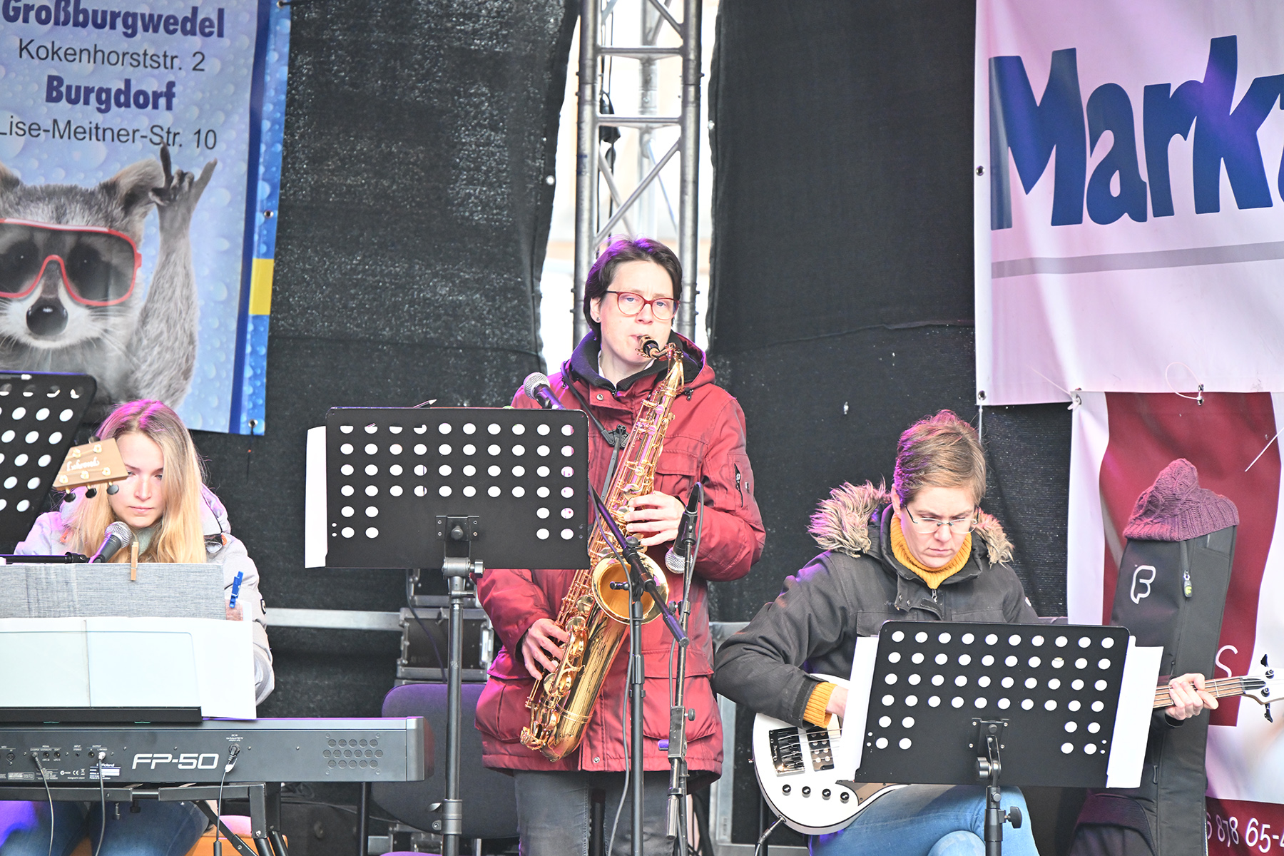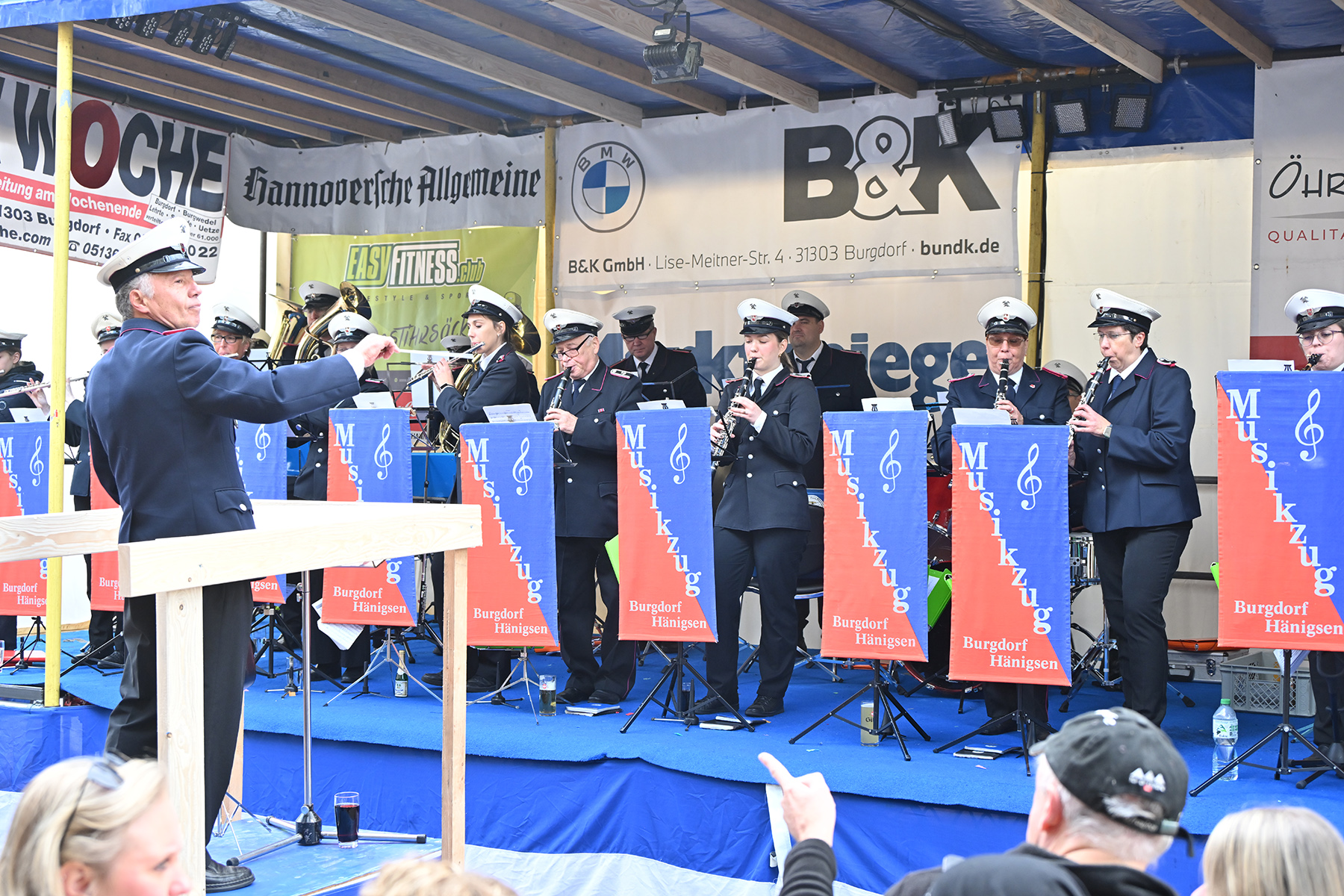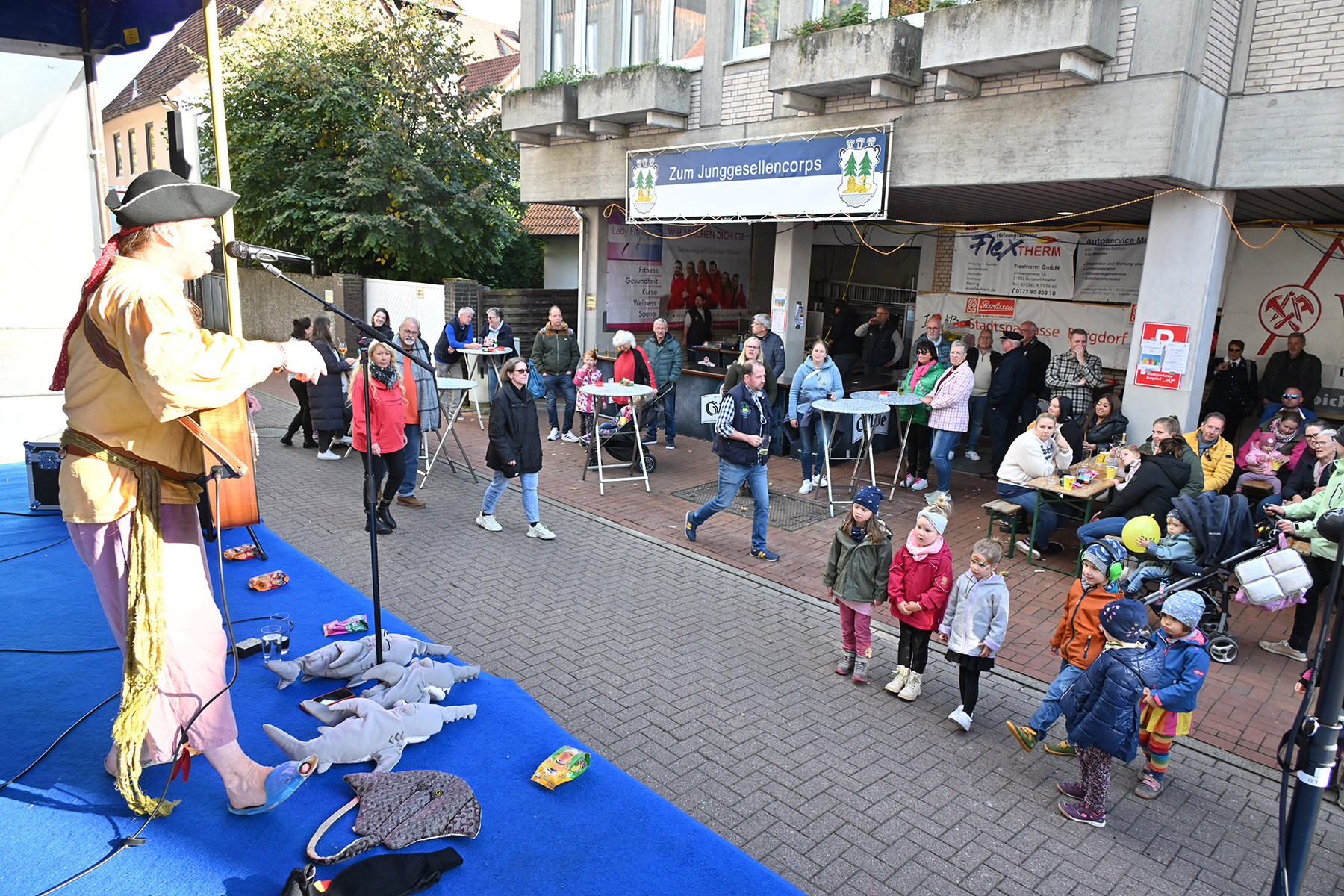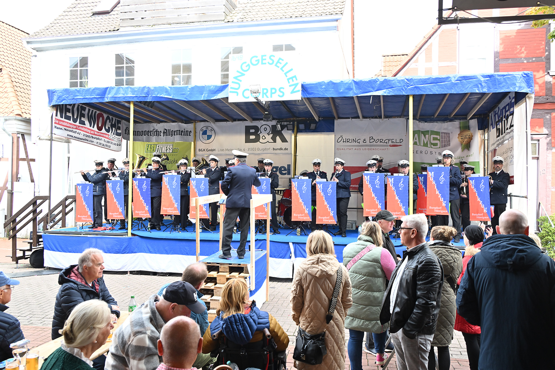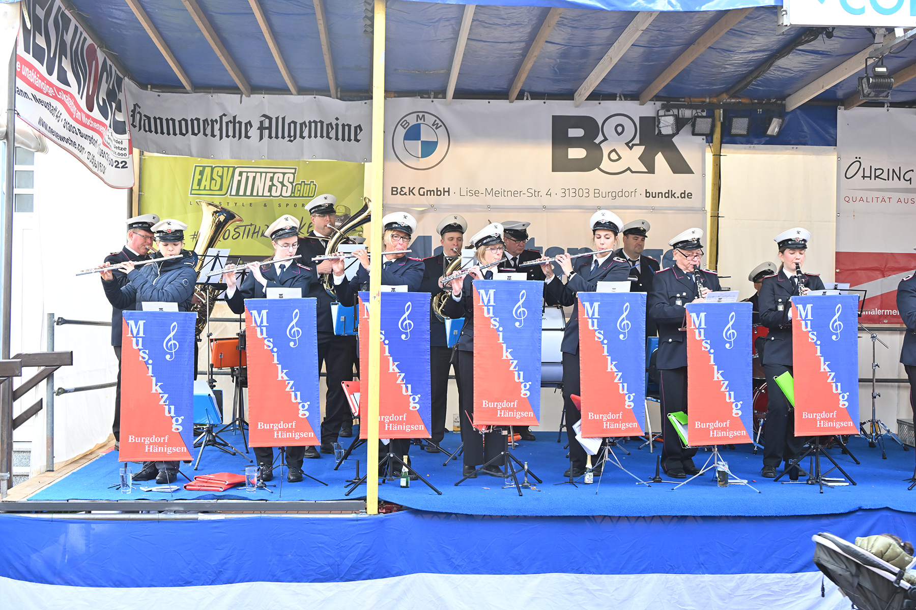 Der Tag begann um 11 Uhr mit einem ökumenischen Open-Air-Gottesdienst auf der Bühne in der Poststraße. Dort sorgte auch das Trio "Dick und Durstig" für musikalische Unterhaltung. Beim Junggesellencorps hinter der Stadtsparkasse stand der Frühschoppen auf dem Programm, bei dem der Musikzug der Freiwilligen Feuerwehren Burgdorf und Hänigsen aufspielte. Danach unterhielt Matthias Lück die jüngsten Besucher mit einer Kinderstunde.