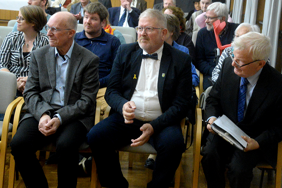 Freuen sich über ihre Bürgermedaille: Dr. Matthias Schorr, Heidi Rust und Rolf Hoppe nach der Ehrungszeremonie im Ratssaal des Burgdorfer Schlosses. / Foto: Reinhard Kroll