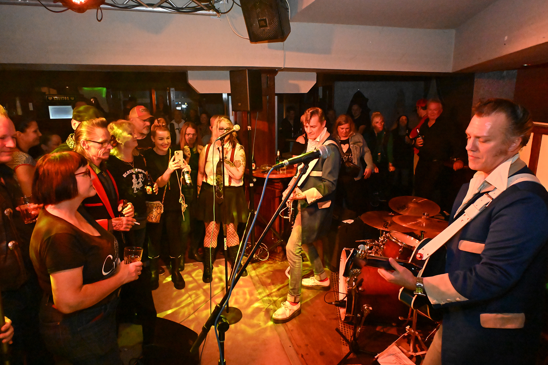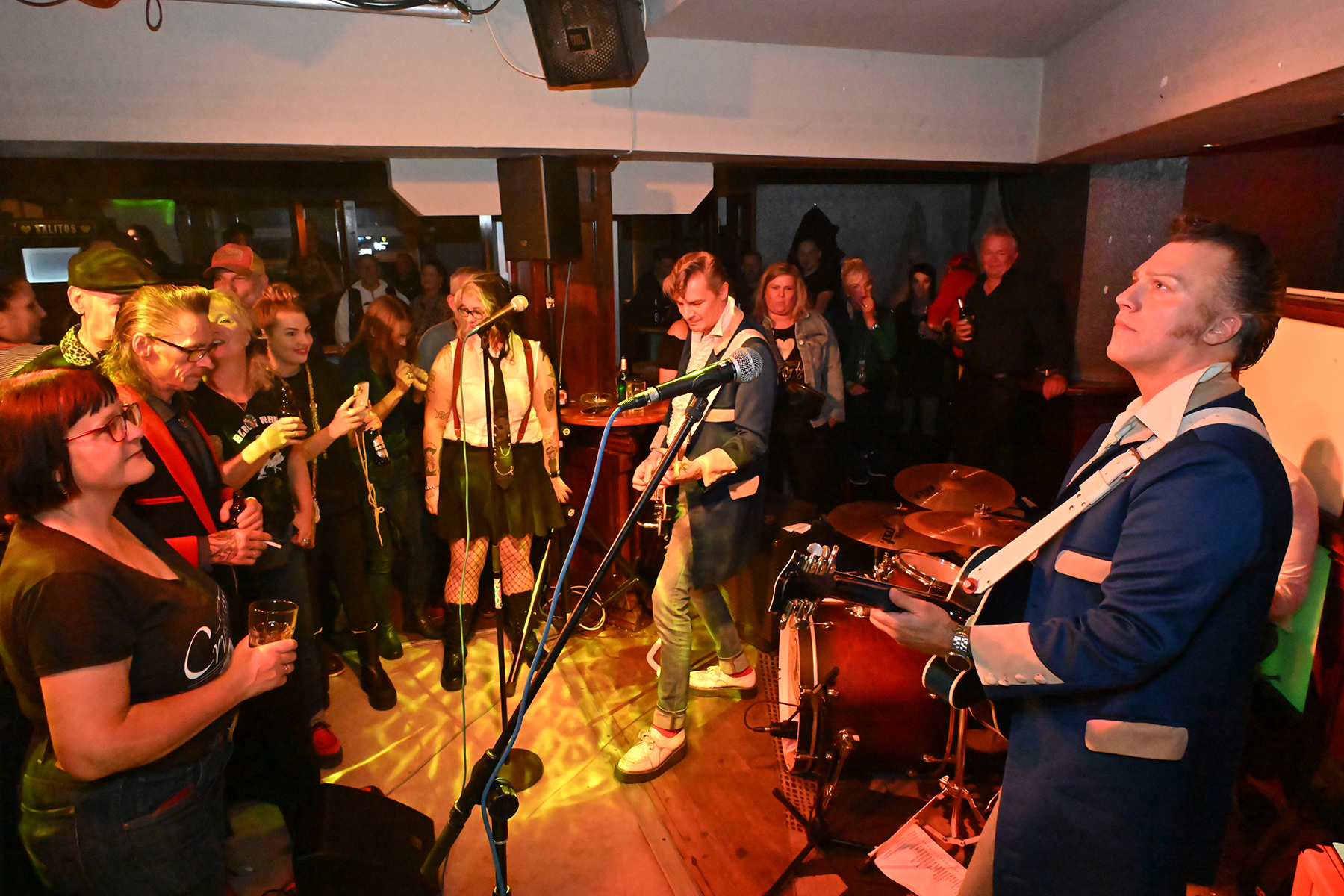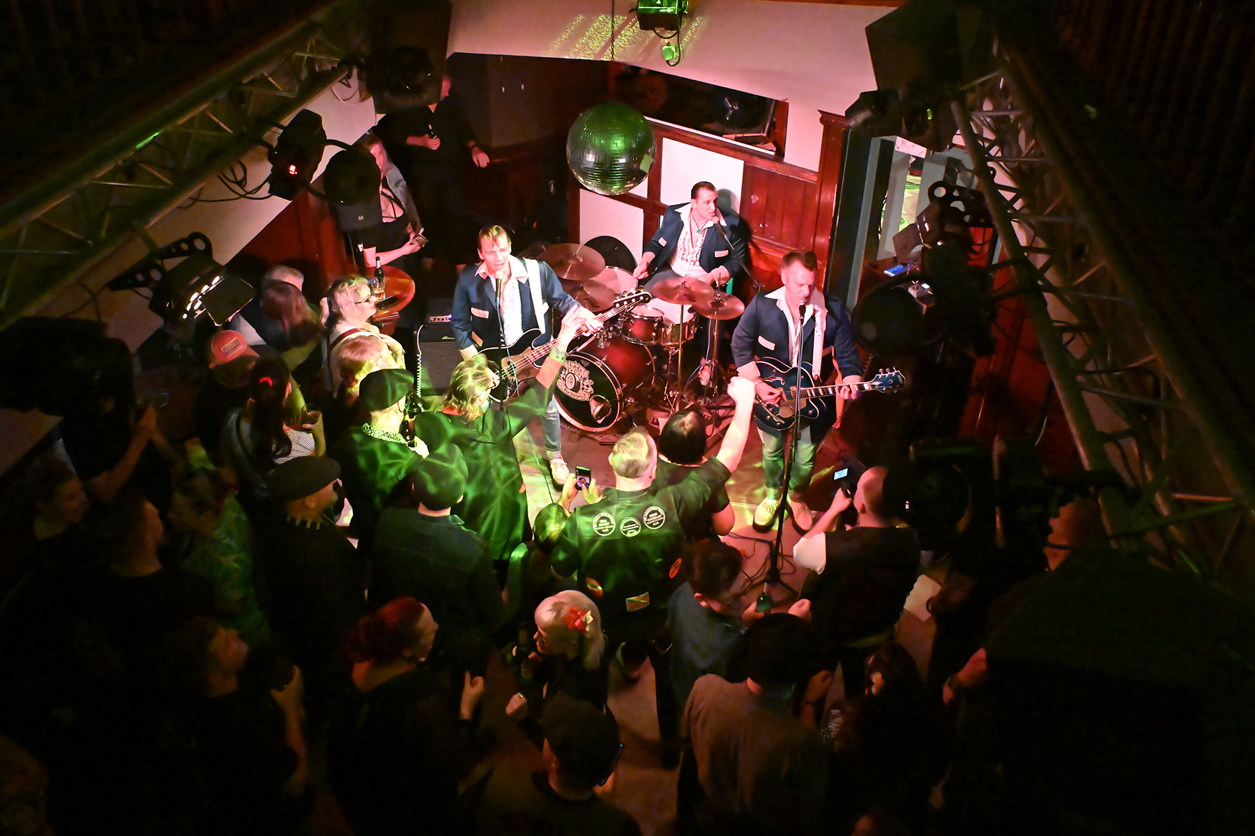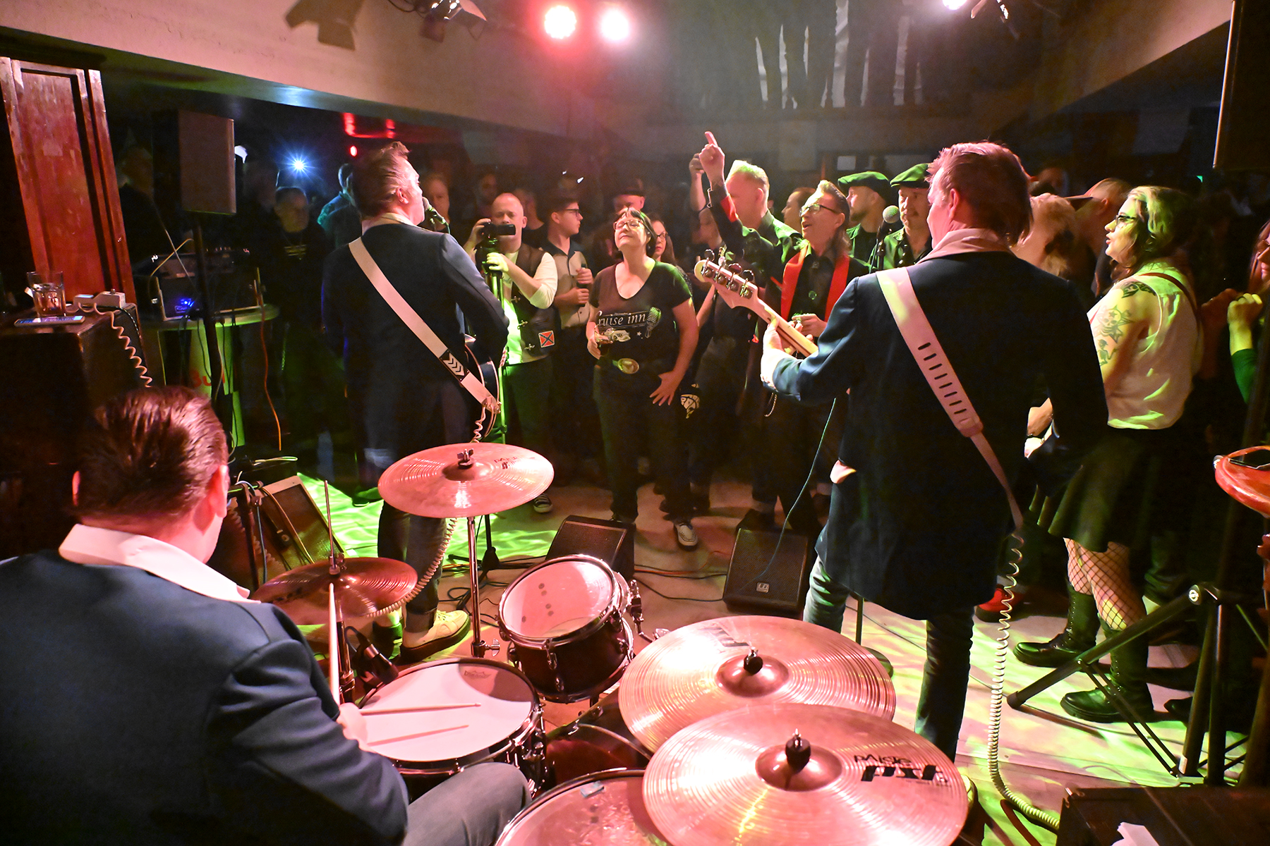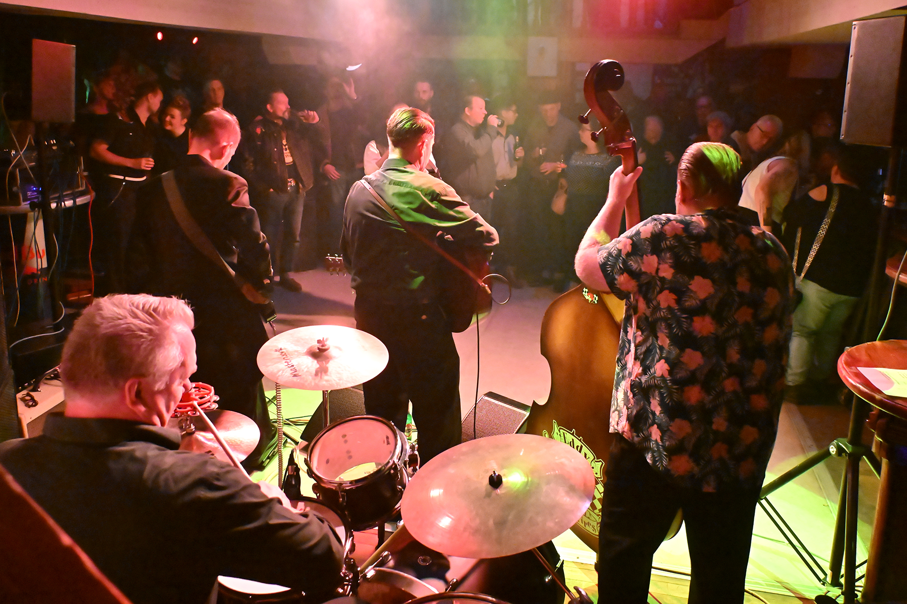 Das Black Horse war gut besucht, und die Stimmung erreichte ihren Höhepunkt, als die Künstler ihre energiegeladenen Performances mit Zugaben krönten. Viele Besucher ließen sich auch modisch von der Ära inspirieren, die mit dieser Musik verbunden ist: Petticoats, Lederjacken und markante Tollen zeigten den typischen Stil der Rockabilly- und Teddyboy-Subkultur. Der Teddyboy-Stil, der in den 1950er Jahren entstand, zeichnet sich durch eine Mischung aus eleganten Anzügen im Edwardianischen Stil und rebellischem Rock’n’Roll-Flair aus – ein Ausdruck jugendlicher Rebellion und Leidenschaft für diese einzigartige Musikrichtung.