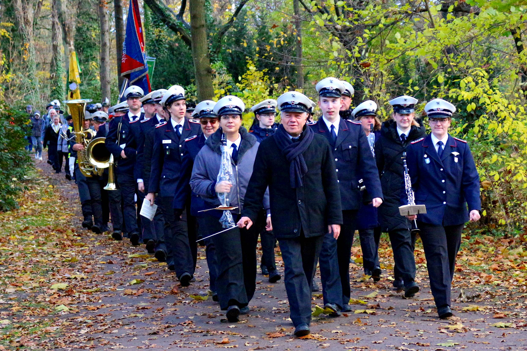 Der Gedenkort für die Zentralveranstaltung in Burgdorf ist das Ehrenmal im Stadtpark, wo sich am gestrigen Sonntag, 17. November 2024, die Delegationen der Freiwilligen Feuerwehr Burgdorf, der Burgdorfer Schützengesellschaft und der Reservistenkameradschaft für die Ansprache von Ulf Jürgensen, Schulleiter der örtlichen Berufsbildenden Schulen (BBS), versammelt hatten.