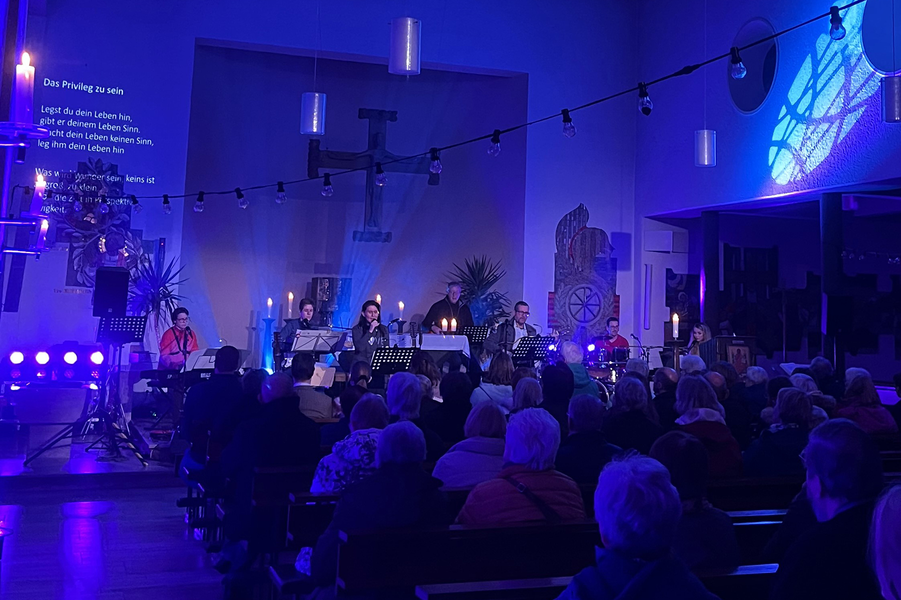 Es war einmal eine andere musikalische Andacht am Freitagabend, 15. November 2024, in der katholischen St. Nikolaus Pfarrkirche Im Langen Mühlenfeld in Burgdorf, die auf das kommende Wochenende einstimmte. In der stimmungsvoll illuminierten Kirche erkundete die Band "Salt’n Soul" Lieder, Gedanken und Texte zum Motto "Segen und Licht".