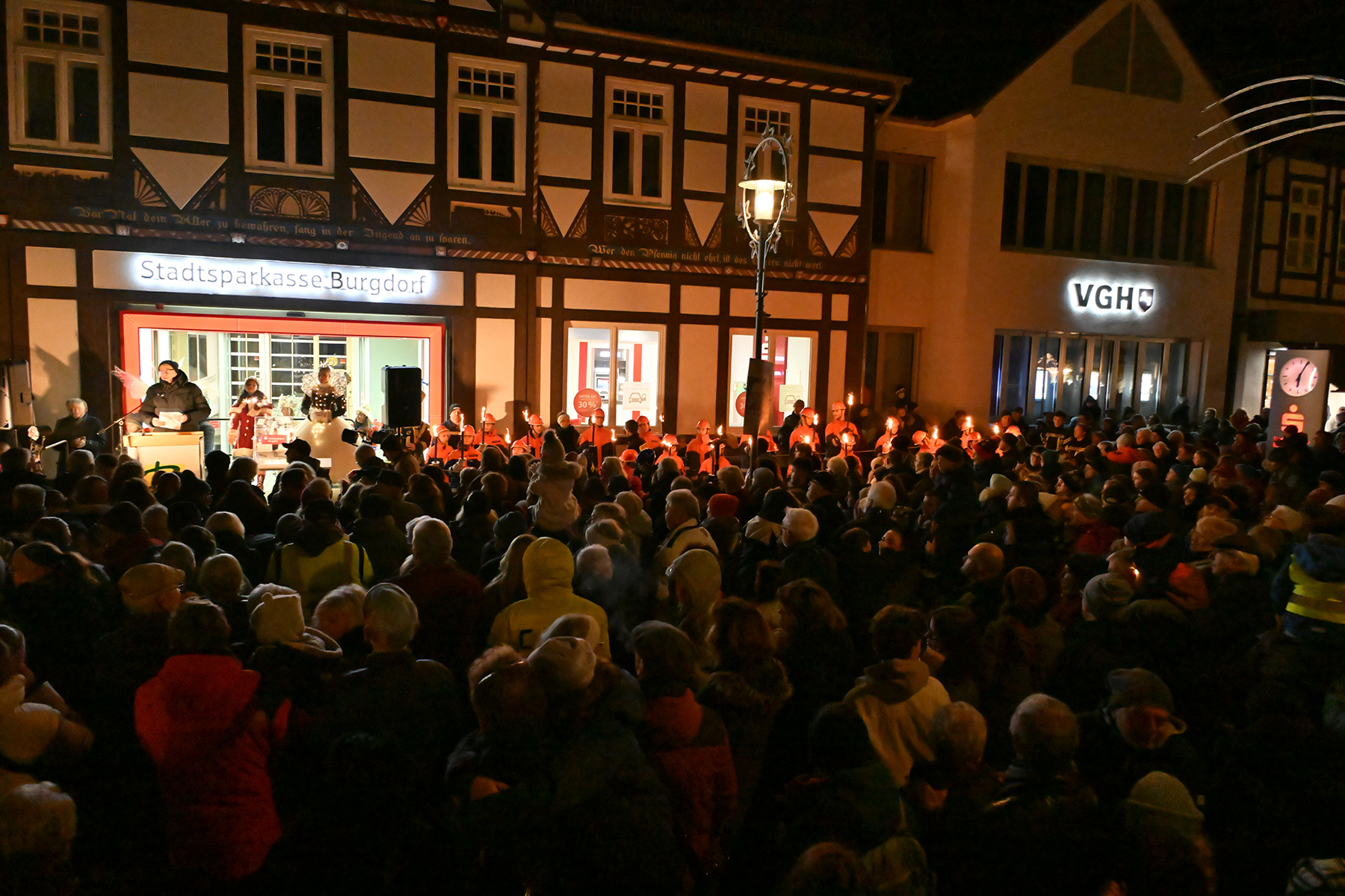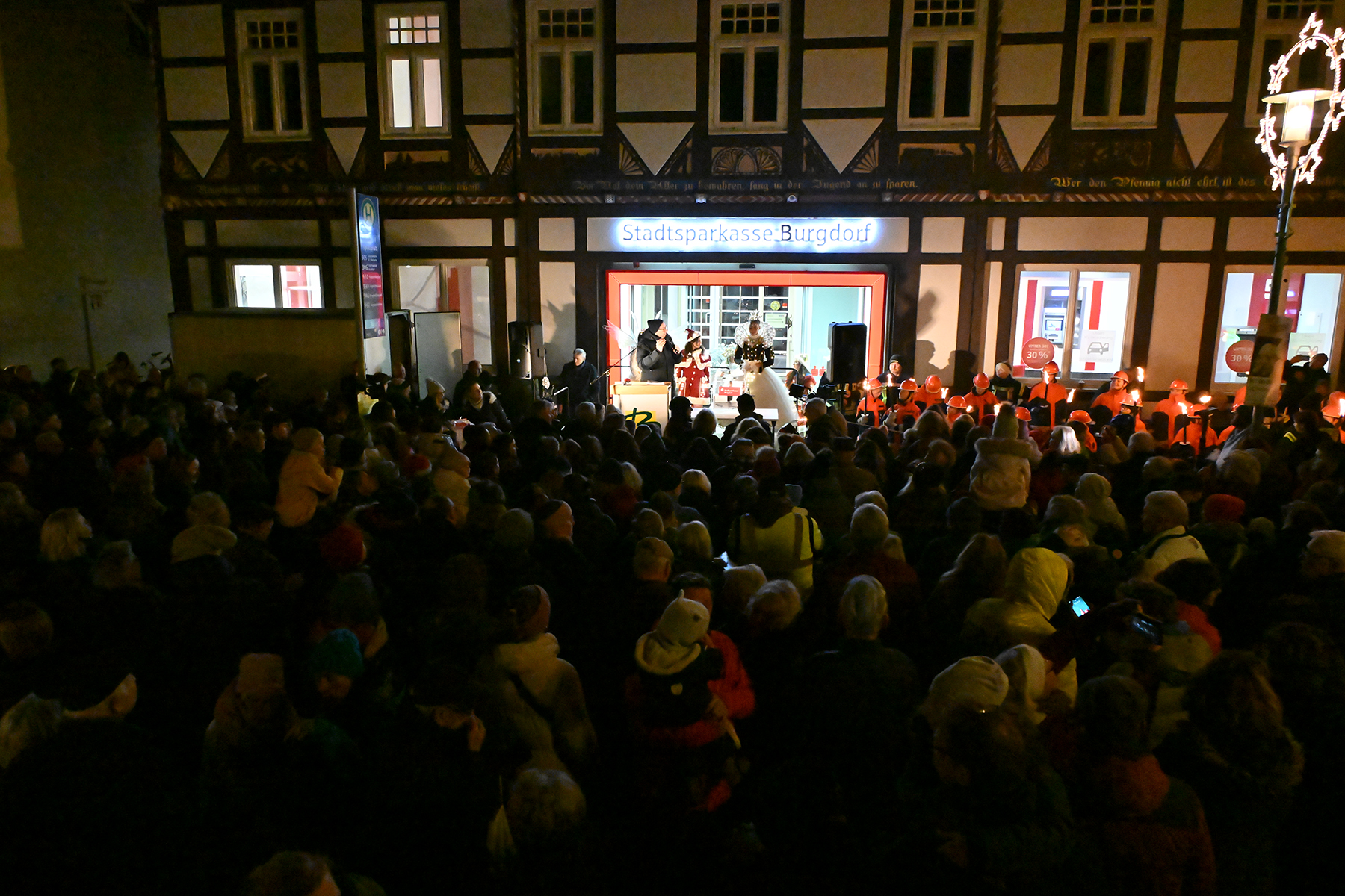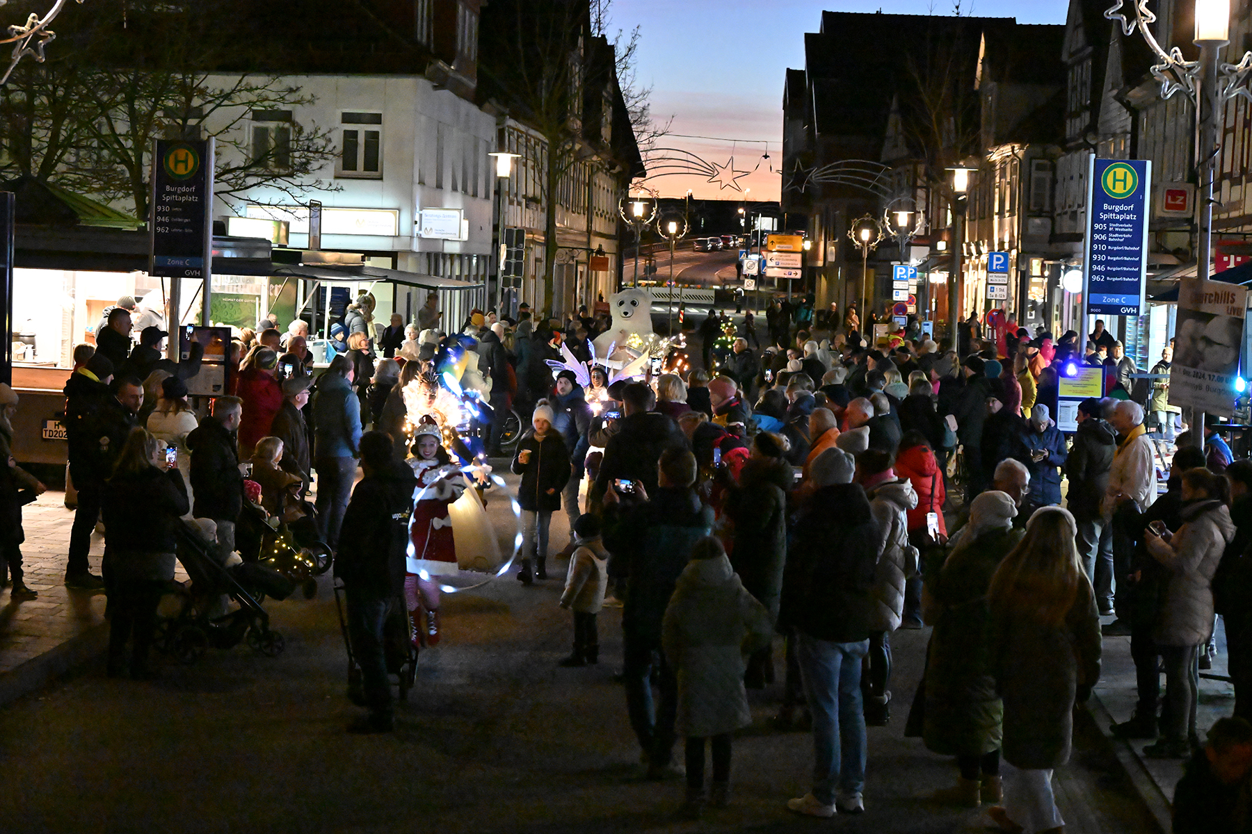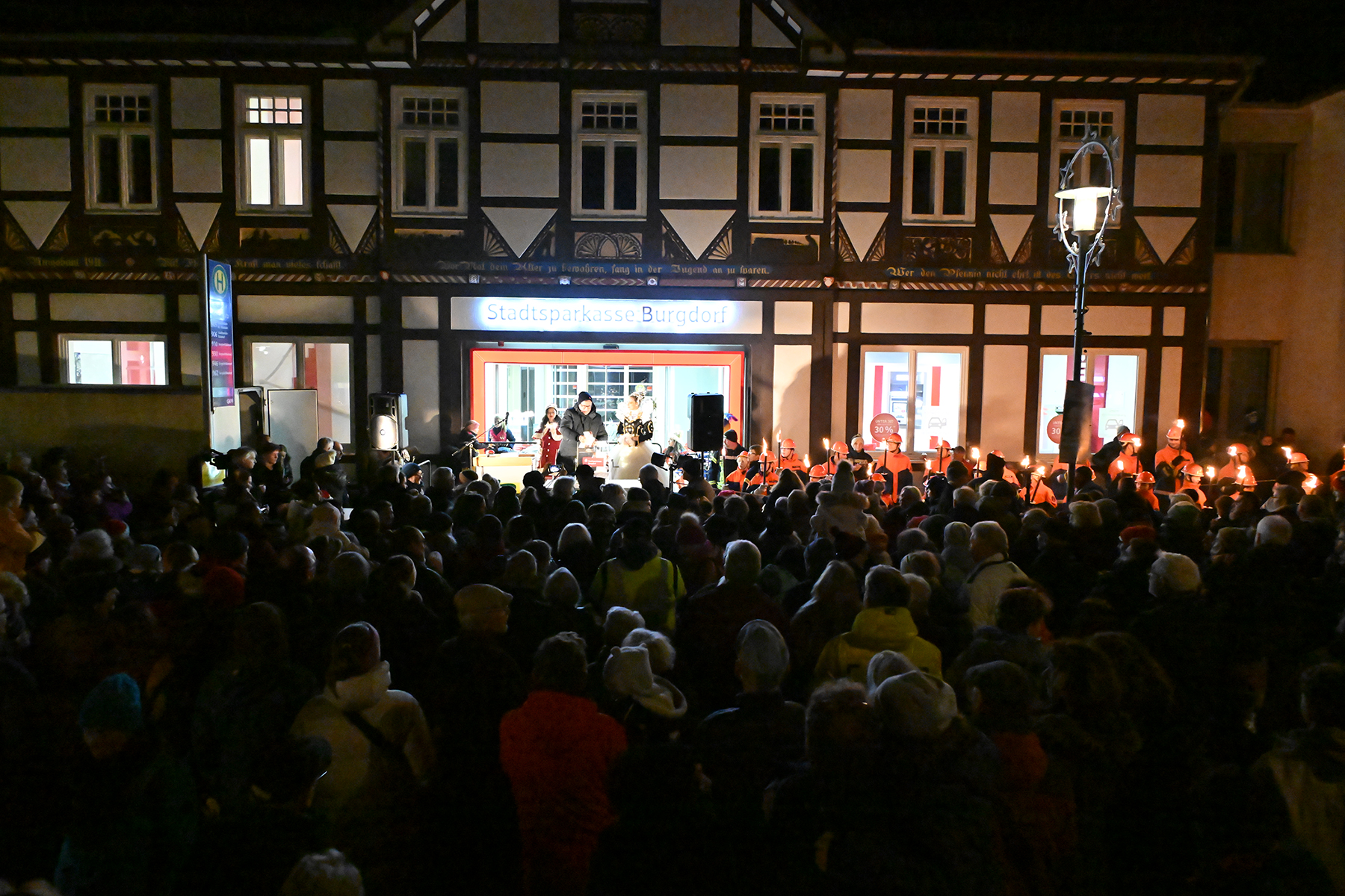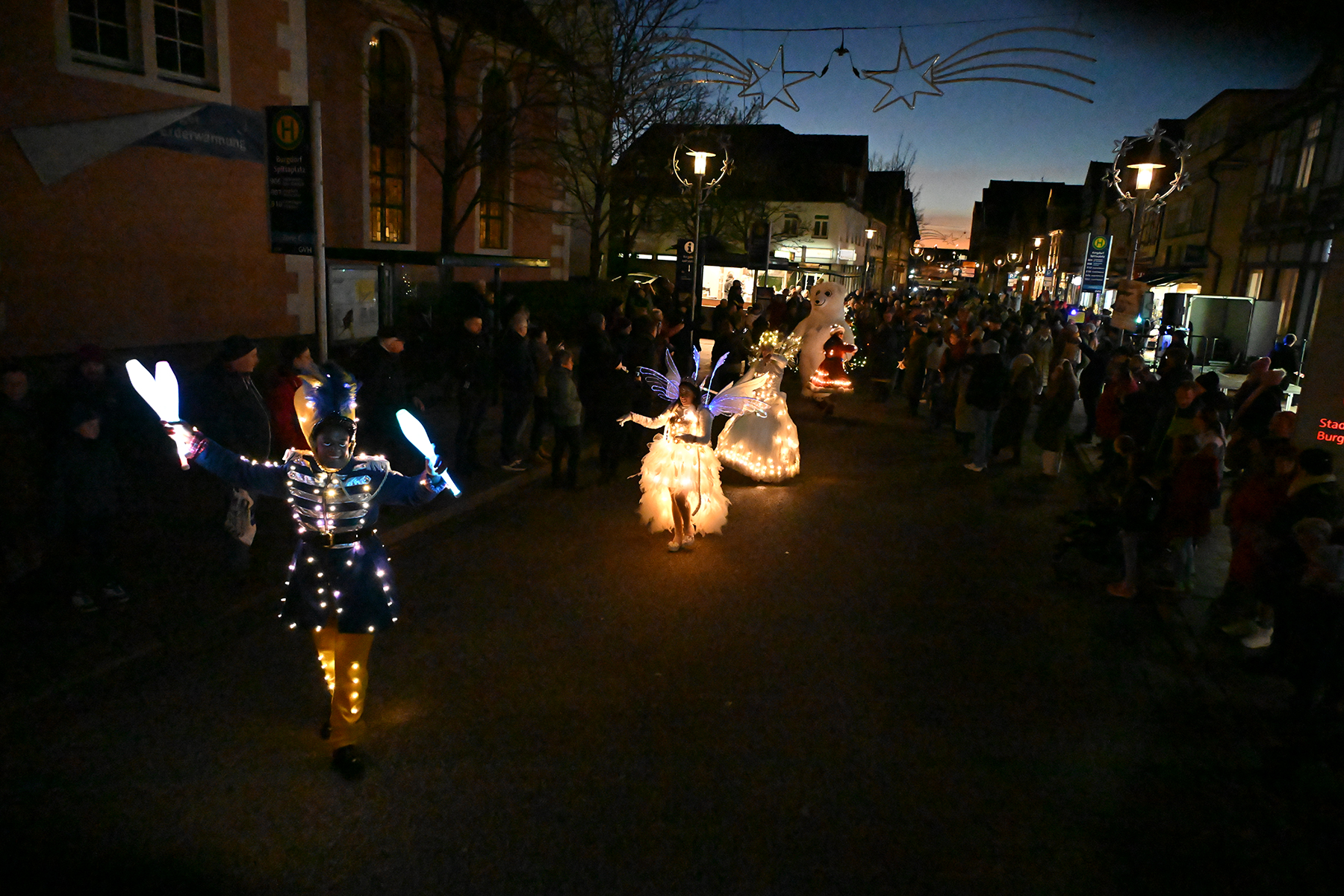 Die Eröffnung wurde von einer faszinierenden Lichterparade begleitet. Das deutsch-brasilianische Lichttheater "VAGALUME" zog mit seinen magischen Lichtgestalten die zahlreichen Zuschauer und vor allem die Kinder in den Bann. Die Stadtjugendfeuerwehr Burgdorf begleitete die Veranstaltung mit ihren Fackelträgern. Direkt im Anschluss an das Einschalten der Weihnachtsbeleuchtung in der Innenstadt startete die Verlosungsaktion "Burgdorf leuchtet!", bei der zahlreiche Warengutscheine und Geschenkgutscheine vergeben wurden.