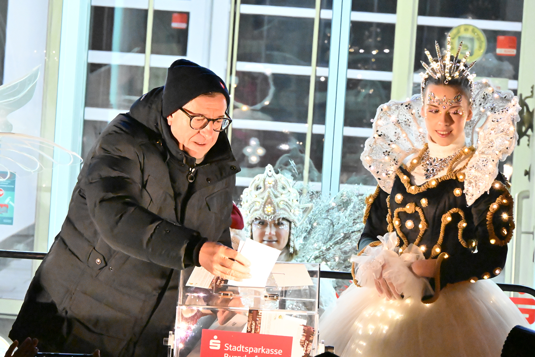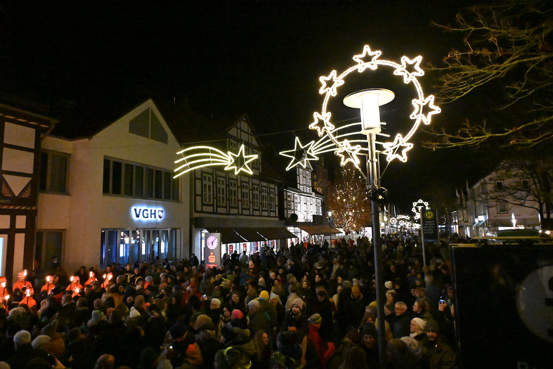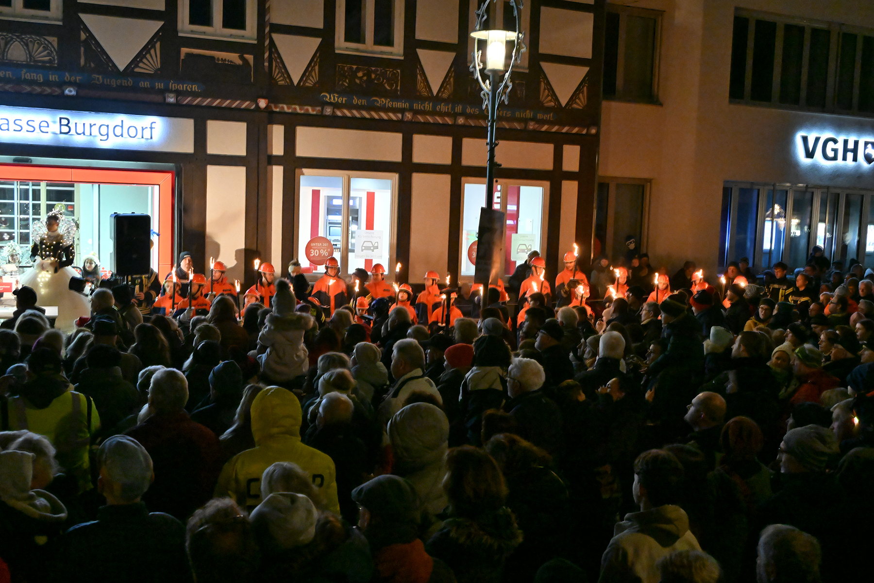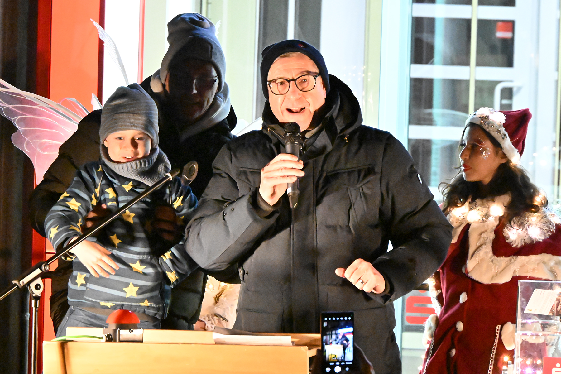 Kurz nach 18 Uhr stimmte Bürgermeister Armin Pollehn den Countdown an. Unterstützt wurde er dabei vom fünfjährigen Leonard, der mit großer Freude den roten Knopf drückte, um die Weihnachtsbeleuchtung einzuschalten. Bürgermeister Pollehn hob in seiner Ansprache die Einzigartigkeit der Burgdorfer Lichtwochen hervor und dankte den mehr als 70 Sponsoren, deren Unterstützung die Realisierung dieser stimmungsvollen Veranstaltung erst möglich gemacht hat. "Was wir hier auf die Beine stellen, ist wirklich einmalig in der Region", betonte Pollehn und lobte die Arbeit des Stadtmarketings und aller Beteiligten.