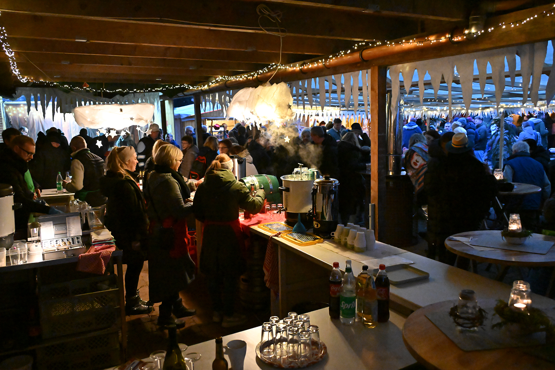 Die Dekoration des Hofes setzte in diesem Jahr erneut Maßstäbe. Lichterketten, Tannengirlanden und glitzernde Sterne sorgten für eine stimmungsvolle Beleuchtung, die den gesamten Hof in ein warmes Licht tauchte. Eine kleine Feuerstelle lud zu später Stunde zum Verweilen ein und sorgte dafür, dass die Besucher auch an den kühleren Abendstunden gemütlich beisammen bleiben konnten.