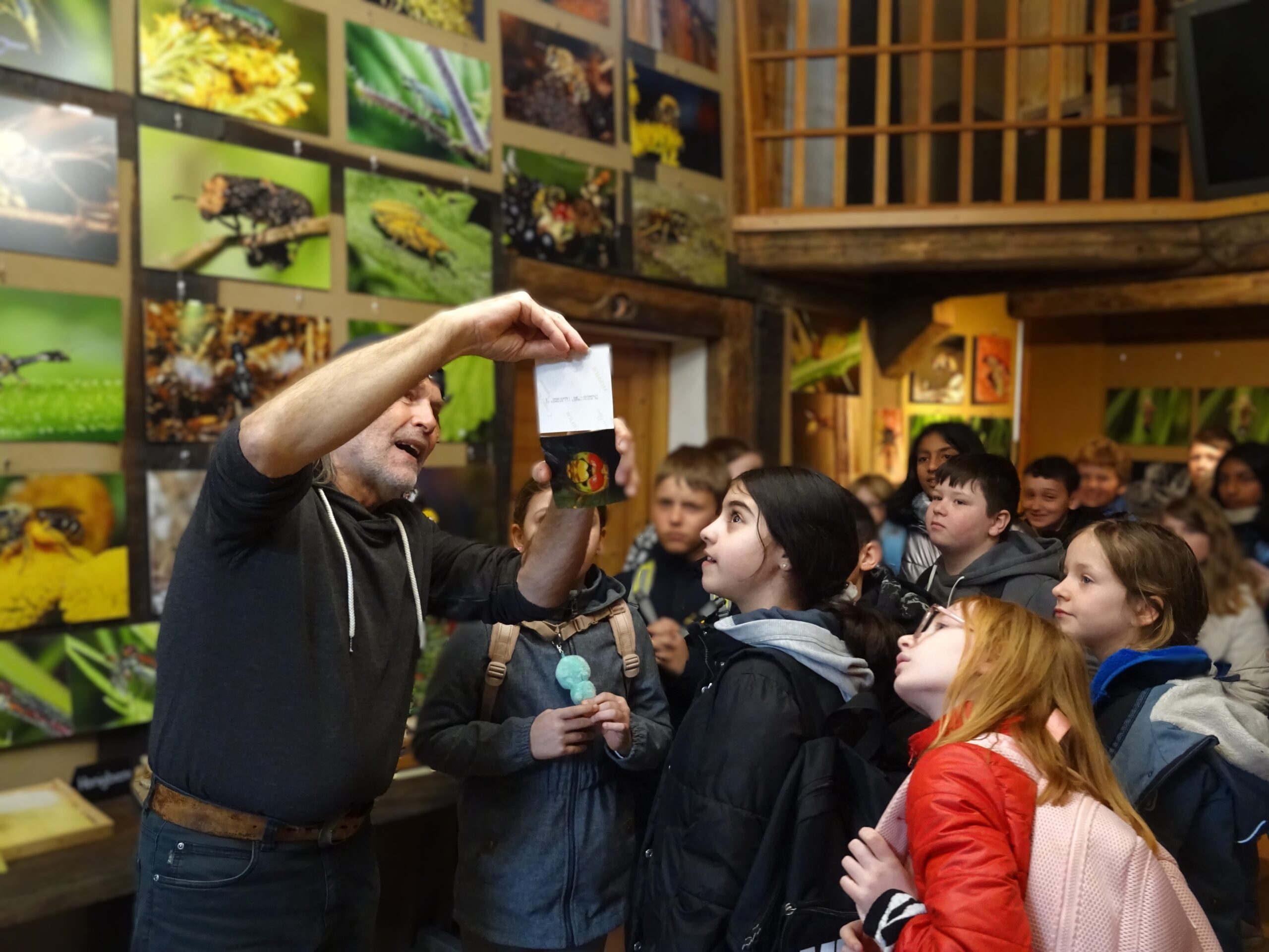 Fragen, denen die Schüler des vierten Jahrgangs der Astrid-Lindgren-Grundschule Burgdorf gemeinsam mit Herrn Dehne auf den Grund gegangen sind. Im ältesten Haus Burgdorfs (Kleine Bahnhofstraße 9) öffnete er die Türen zu seiner umfangreichen, liebevoll gestalteten Ausstellung rund um das Thema „Insekten“. Spektakuläre Aufnahmen kleiner Lebewesen im Großformat und einzigartige Ausstellungsstücke erhielten in den alten Räumlichkeiten einen ganz besonderen Charakter. Herr Dehne erzählte von den Erfahrungen, die er bei den Aufnahmen, Auswertungen und Recherchen gesammelt hat, beantwortete Fragen der Kinder und ließ auch sie ihre ganz persönlichen Erfahrungen mit unterschiedlichen Insekten teilen. Abgerundet wurden die Exkursionen durch imposantes Videomaterial – ein bemerkenswertes Zusammenspiel aus altem Bauwerk und moderner Technik.