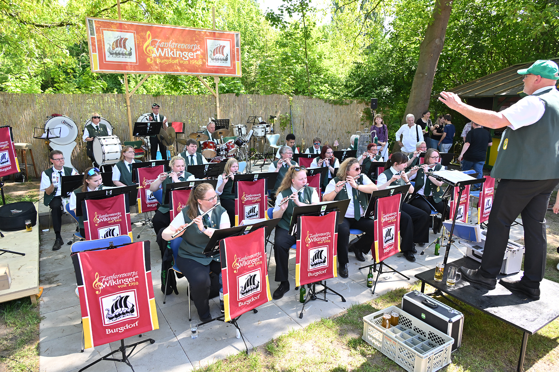 Mehrere hunderte Gäste kamen am heutigen Donnerstag, 1. Mai 2025, zum traditionellen Frühschoppen des Fanfarencorps „Wikinger“ Burgdorf in die verlängerte Friederikenstraße. Bei bestem Wetter und ausgelassener Stimmung bot sich den Besuchern ein stimmungsvolles Fest, das vor allem musikalisch überzeugte.