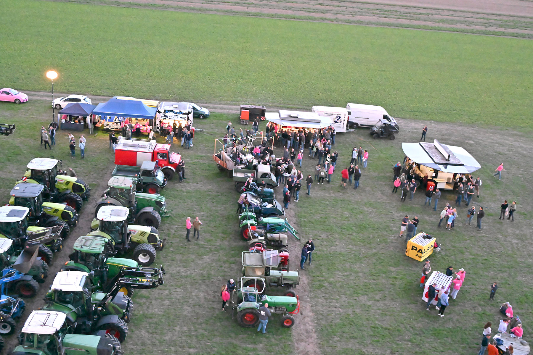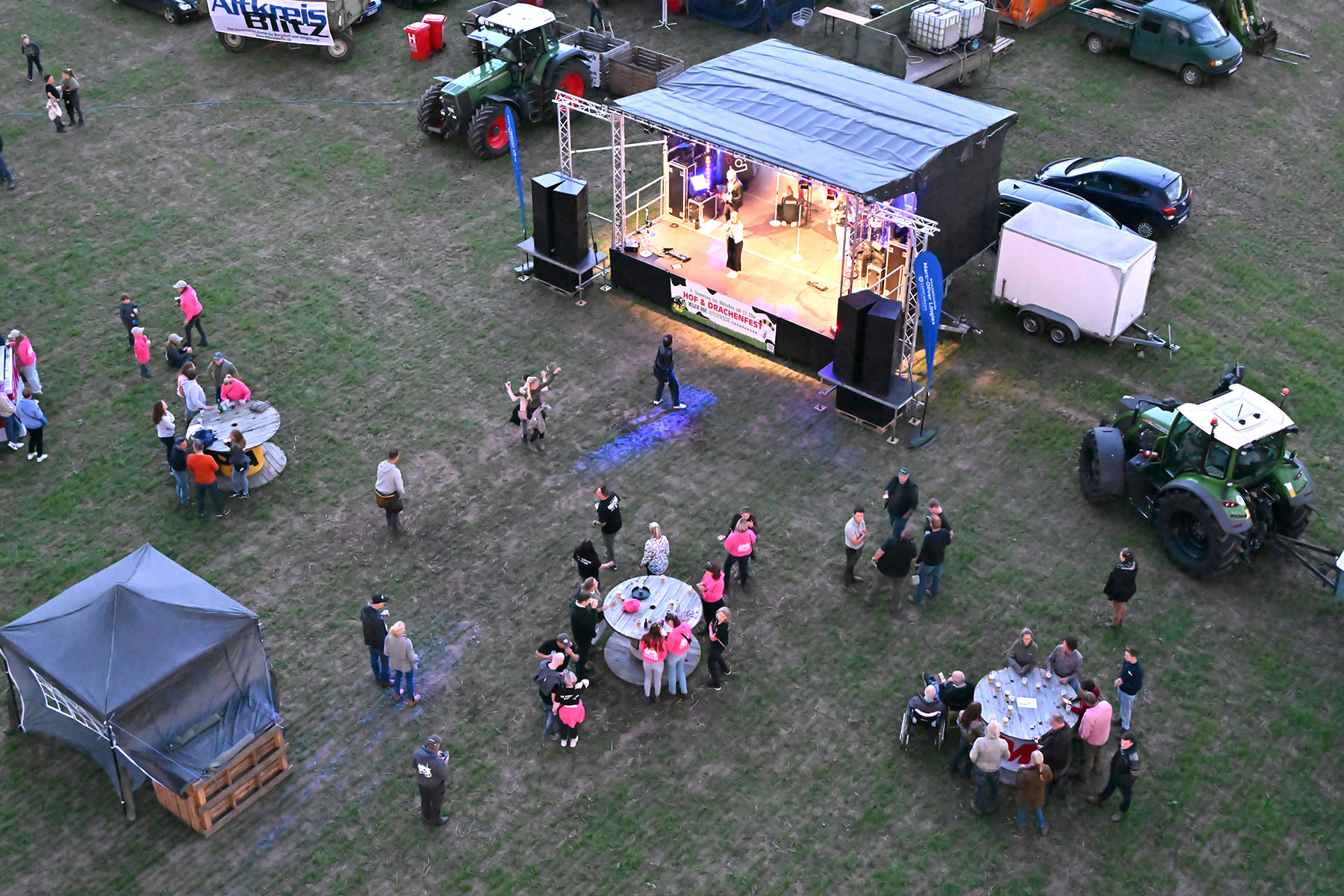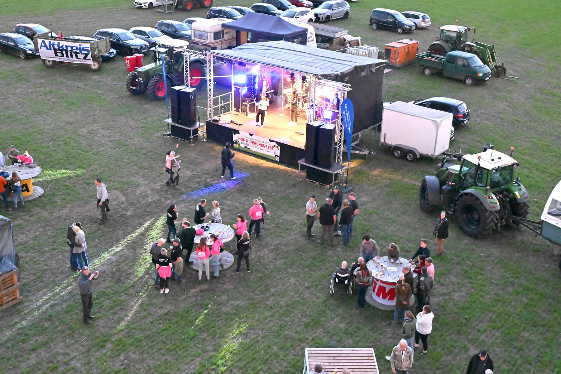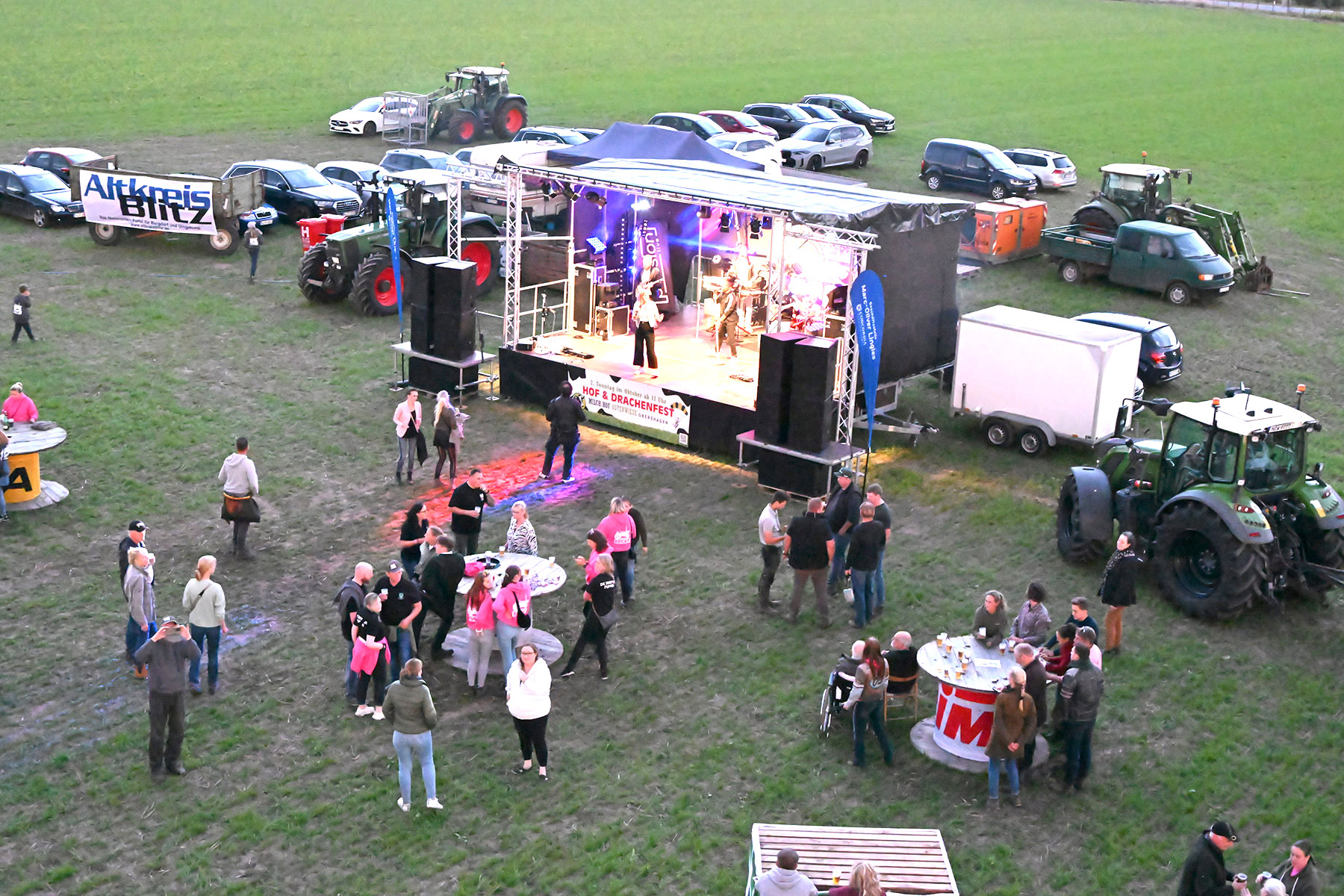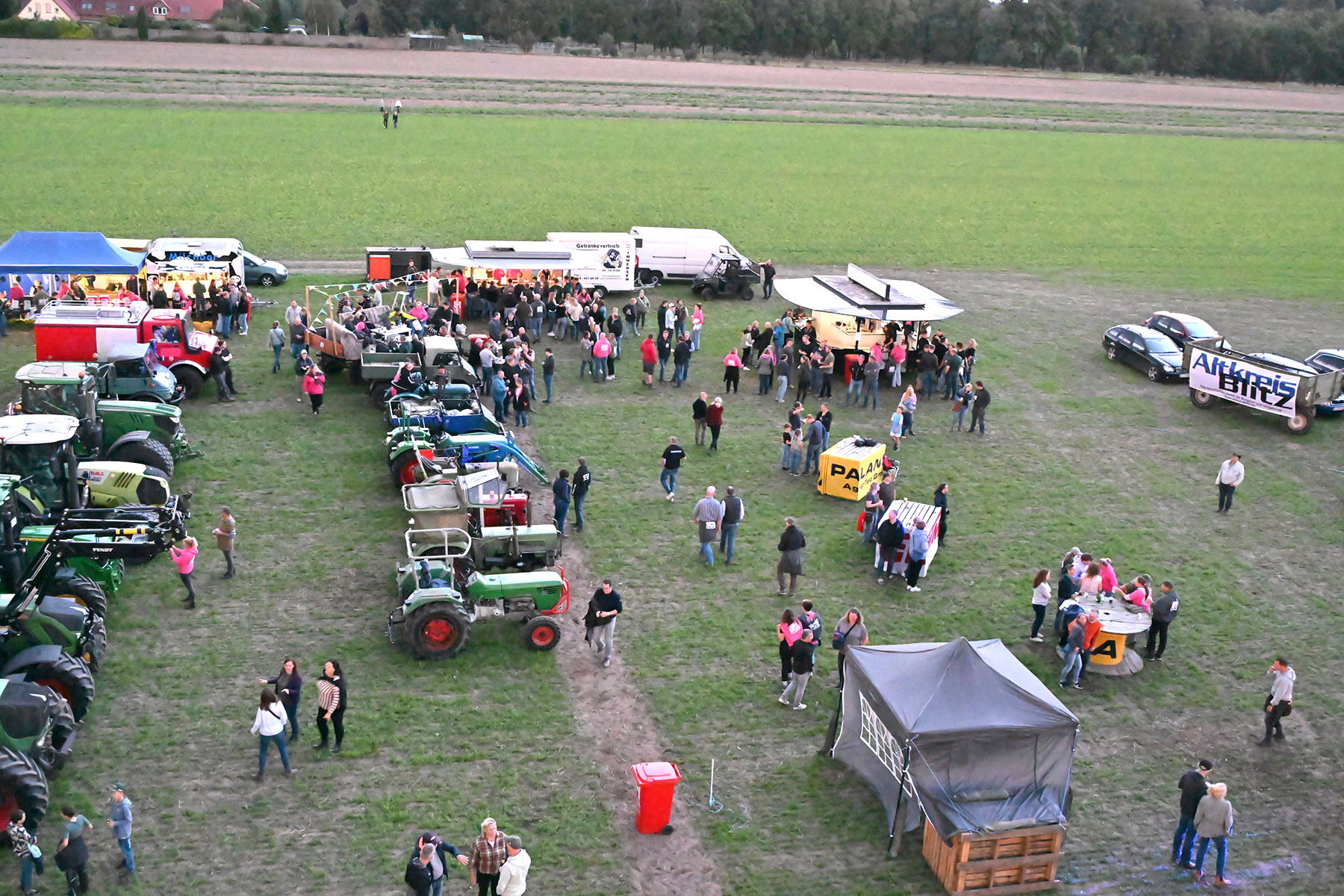 Mit Treckern und Gespannen kamen sie auf das weitläufige Gelände, verwandelten Anhänger in mobile Partylounges, bauten Sofas auf oder tanzten einfach im Freien – der Kreativität waren wie immer keine Grenzen gesetzt. Im Laufe des Abends wurden sogar noch zahlreiche Karten verkauft, sodass sich das Gelände bis zum Einbruch der Dunkelheit gut füllte.