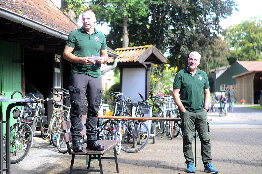 Etwa 60 Frauen, Männer und Kinder haben sich gestern auf dem Hof von Karin und Andreas Buchholz im Akazienweg 4a eingefunden, um diese Vorbereitungen zu treffen. Veranstalter des Erntefestes ist wie seit 58 Jahren die Dorfgemeinschaft Ramlingen. Aus dem 500-Seelen-Dorf Ramlingen gehören acht Mitglieder der Dorfgemeinschaft an, ihr Vorsitzender ist nach wie vor Timo Wöhler. Er teilte gestern die Gruppen für die anstehenden Arbeiten ein. Zu den acht Mitgliedern gehört Frank „Kuddel“ Berg. Er zeigte dem AltkreisBlitz auf, dass seit 1988 das Gästebuch geführt wird, in das sich alle eintragen, die an der Vorbereitung beteiligt sind. Zudem betonte er, dass seit einiger Zeit eine Fülle von Festwagen dekoriert und Kostüme geschneidert werden.