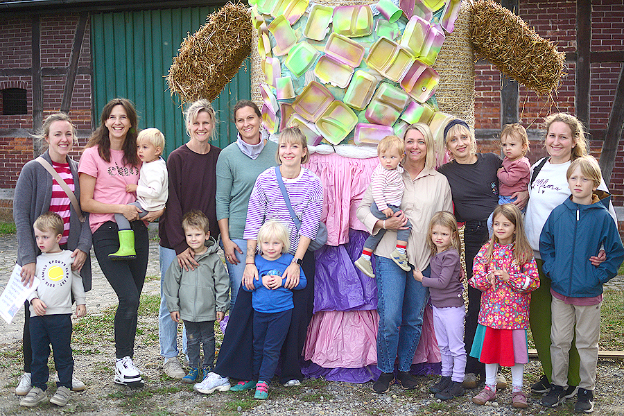 Das Besondere an der Strohpuppe an der Kreuzung am Messenberg: Sie ist von jungen Müttern mit Recycling-Kleidung dekoriert worden. Der Hintergrund: Vor einem Jahr waren diese Frauen aus Ramlingen und Ehlershausen beim Festumzug mit derartigen Kleidern aufgetreten und ganz besonders aufgefallen. Eine dieser jungen Mütter, Alexandra Lipus aus Ehlershausen, erklärte auf Anfrage gegenüber dem AltkreisBlitz, wieso und weshalb sie diese Aktion gestartet haben. „Wir wollen damit darauf hinweisen, dass zum Beispiel, Plastikmüll nicht nur entsorgt, sondern weiterverwendet werden kann.“