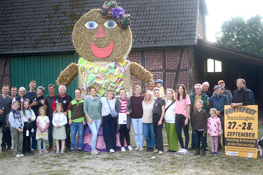 Die Vorbereitungen auf das Ramlinger Erntefest am Sonnabend, 27. September, und Sonntag, 28. September 2025, laufen auf Hochtouren. Am gestrigen Sonnabend, 13. September, sind die drei Erntekronen sowie die Königskrone gebunden und drei Strohpuppen im Ort aufgestellt worden.