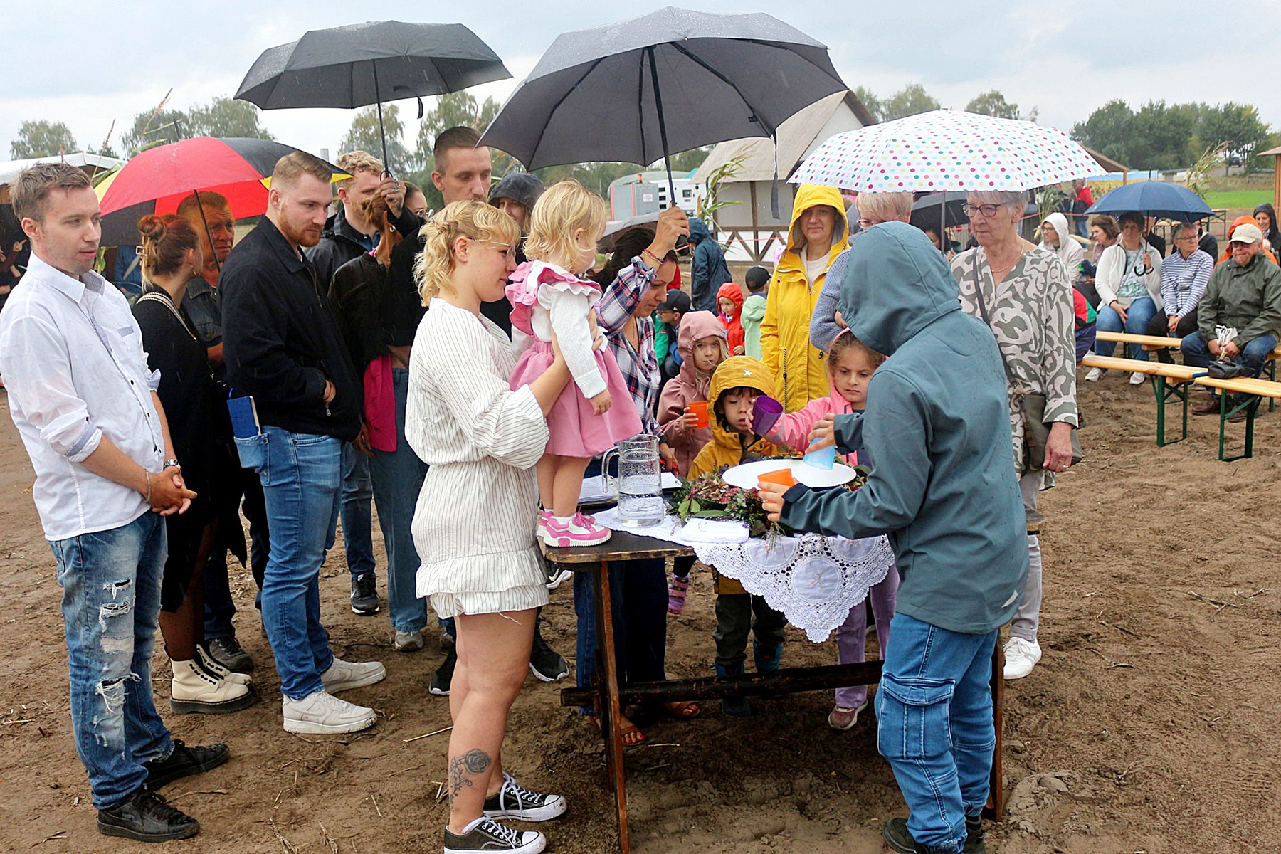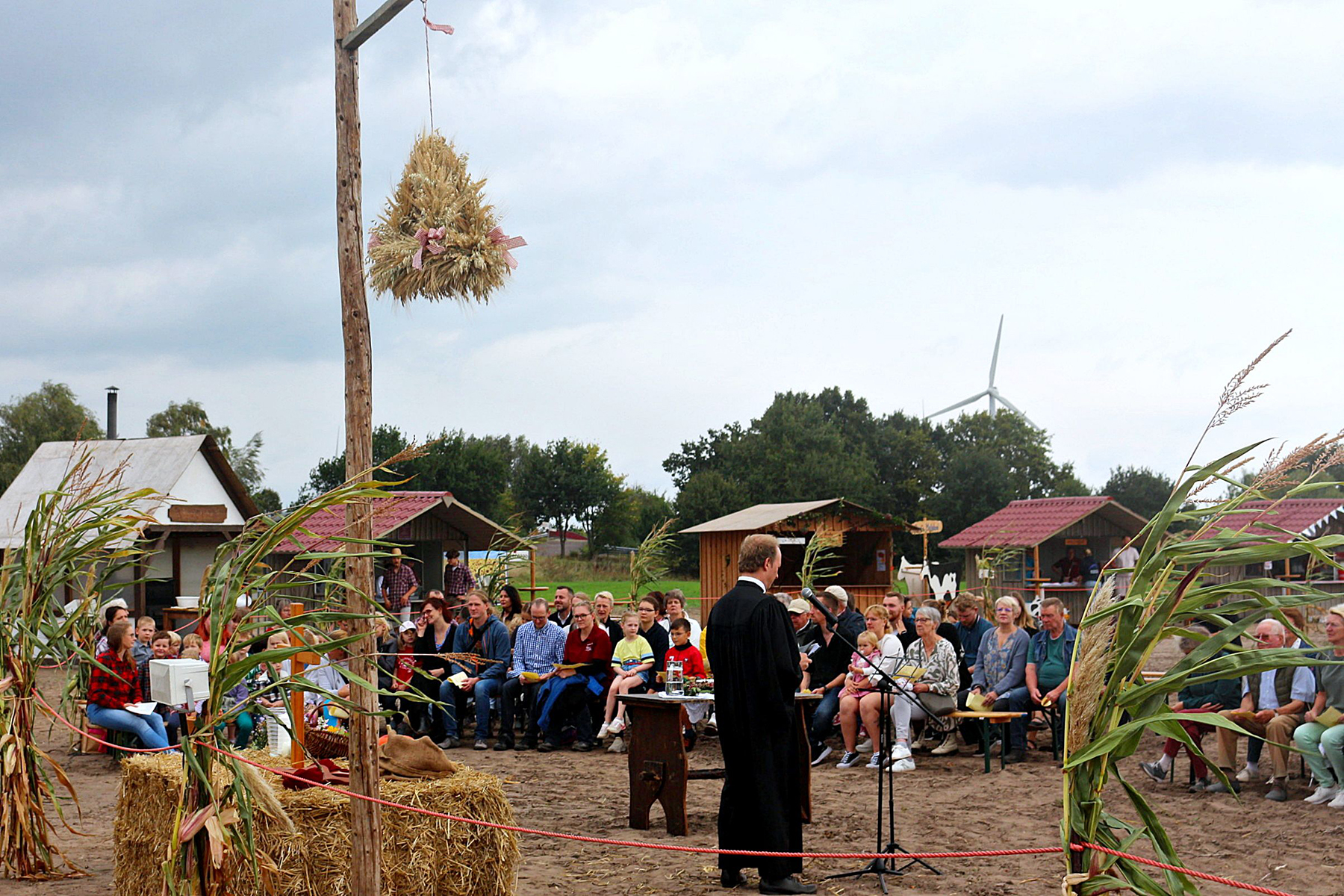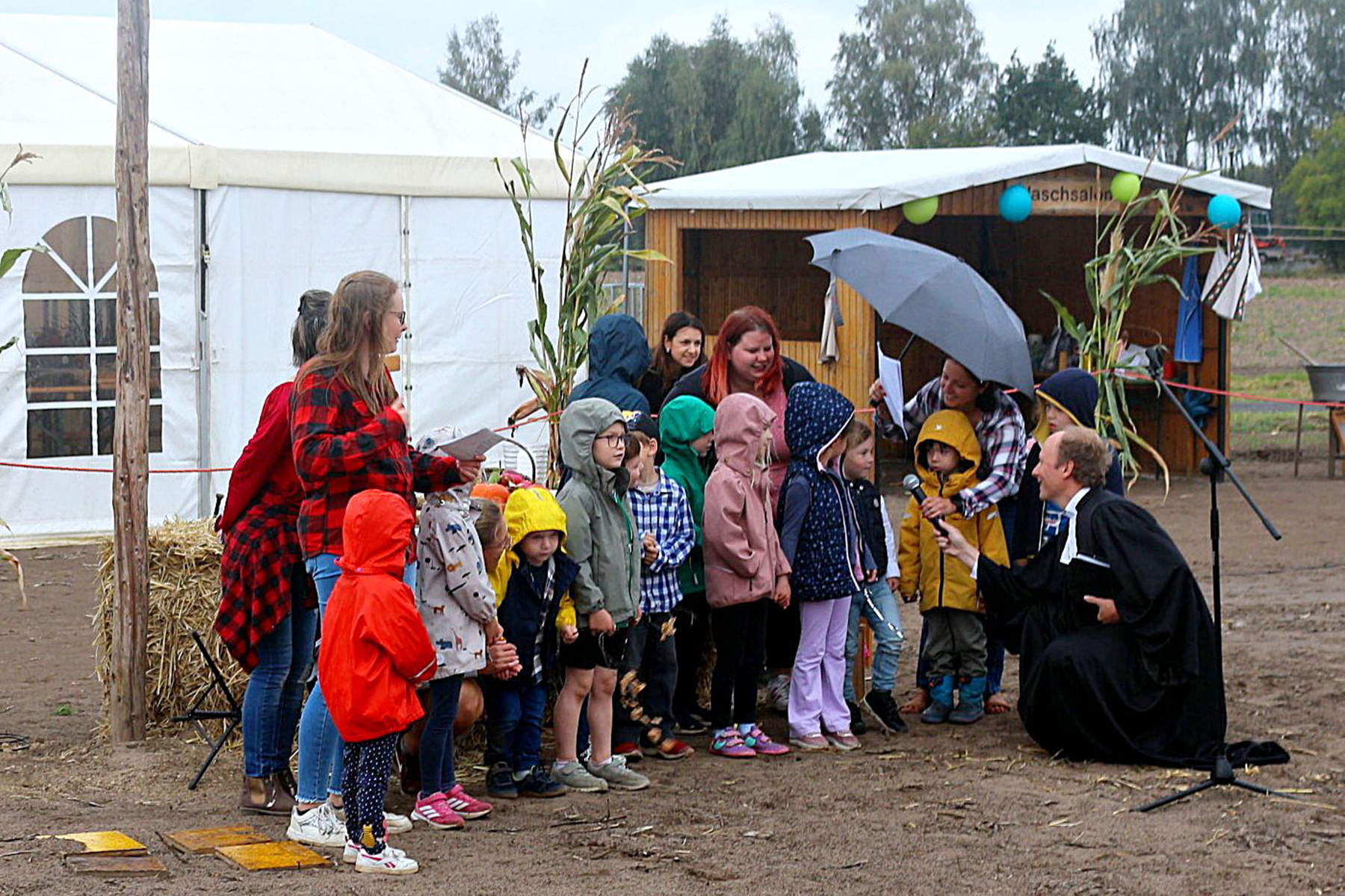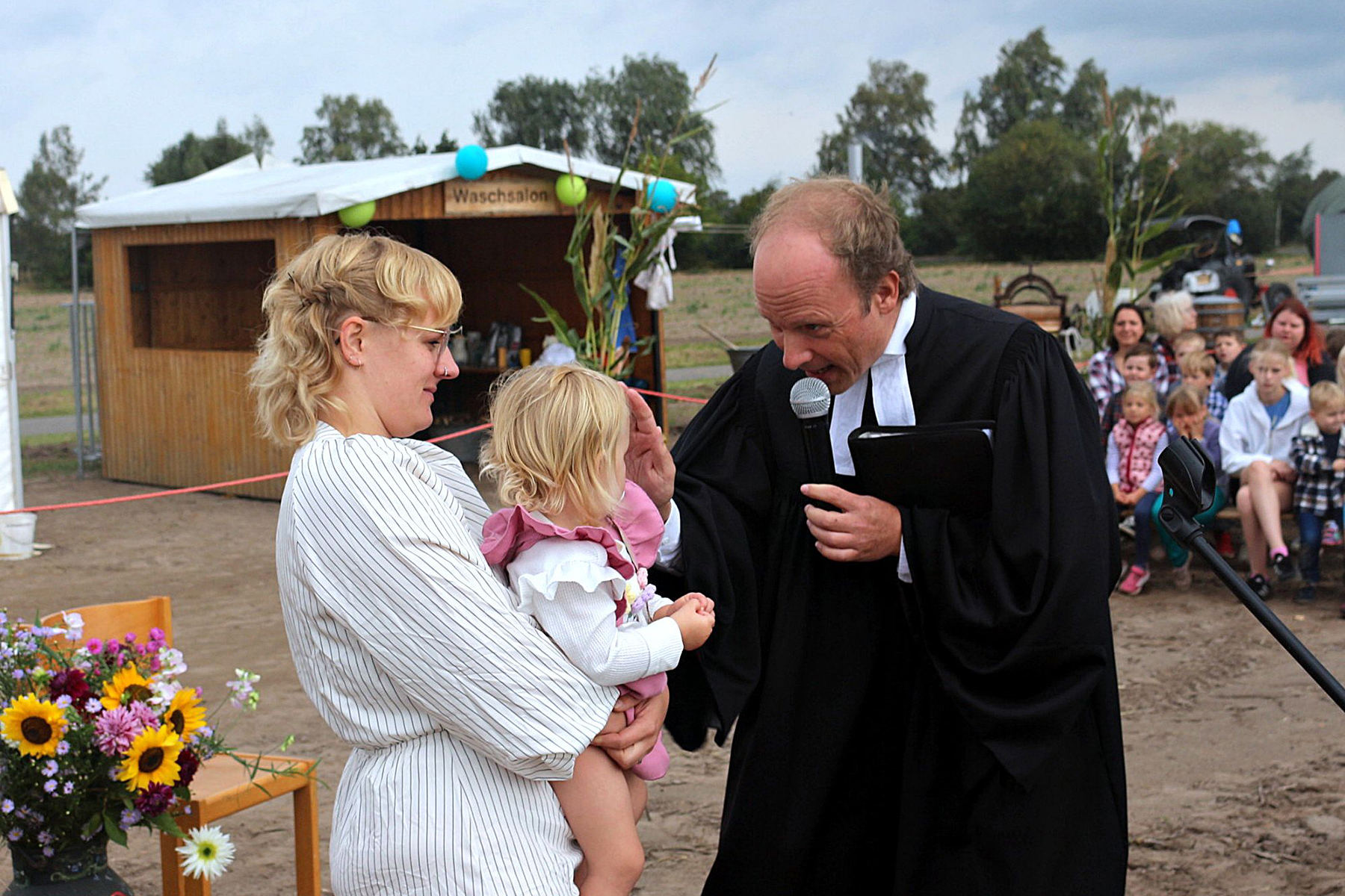 Ein Gottesdienst unter freiem Himmel mit Pankratius-Pastor Valentin Winnen machte den Anfang. Im Rahmen der Andacht trugen die Lüttjen der KiTa Schillerslage mit ihren drei Erzieherinnen das Lied „Ich und mein Holz“ vor, dem sich das gemeinsame Glaubensbekenntnis anschloss. Als Nächstes wurden die zahlreich versammelten Gottesdienstbesucher Zeugen der Taufe von der eineinhalbjährigen Liana Stellmacher.