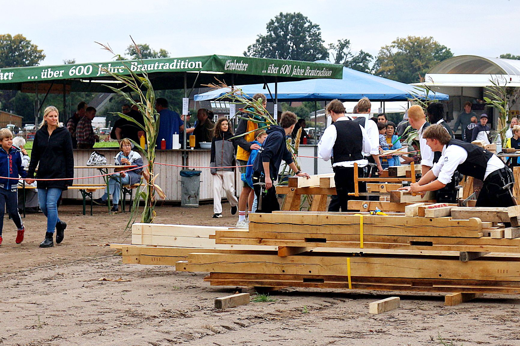 Bäume fällen, das Holzrücken, das Verladen und der folgende Transport – rund 250 Ehrenamtliche aus und um Schillerslage hatten mit Unterstützung von Mitarbeitern der Ahnsbecker Zimmerei in Zunftkleidung ein Szenario ins Bild gesetzt, das den vielen Besuchern aus nah und fern die verschiedenen und spezialisierten Tätigkeiten mit dem Rohstoff „Holz“ vor Augen führten und damit eine Zeitreise ermöglichten.